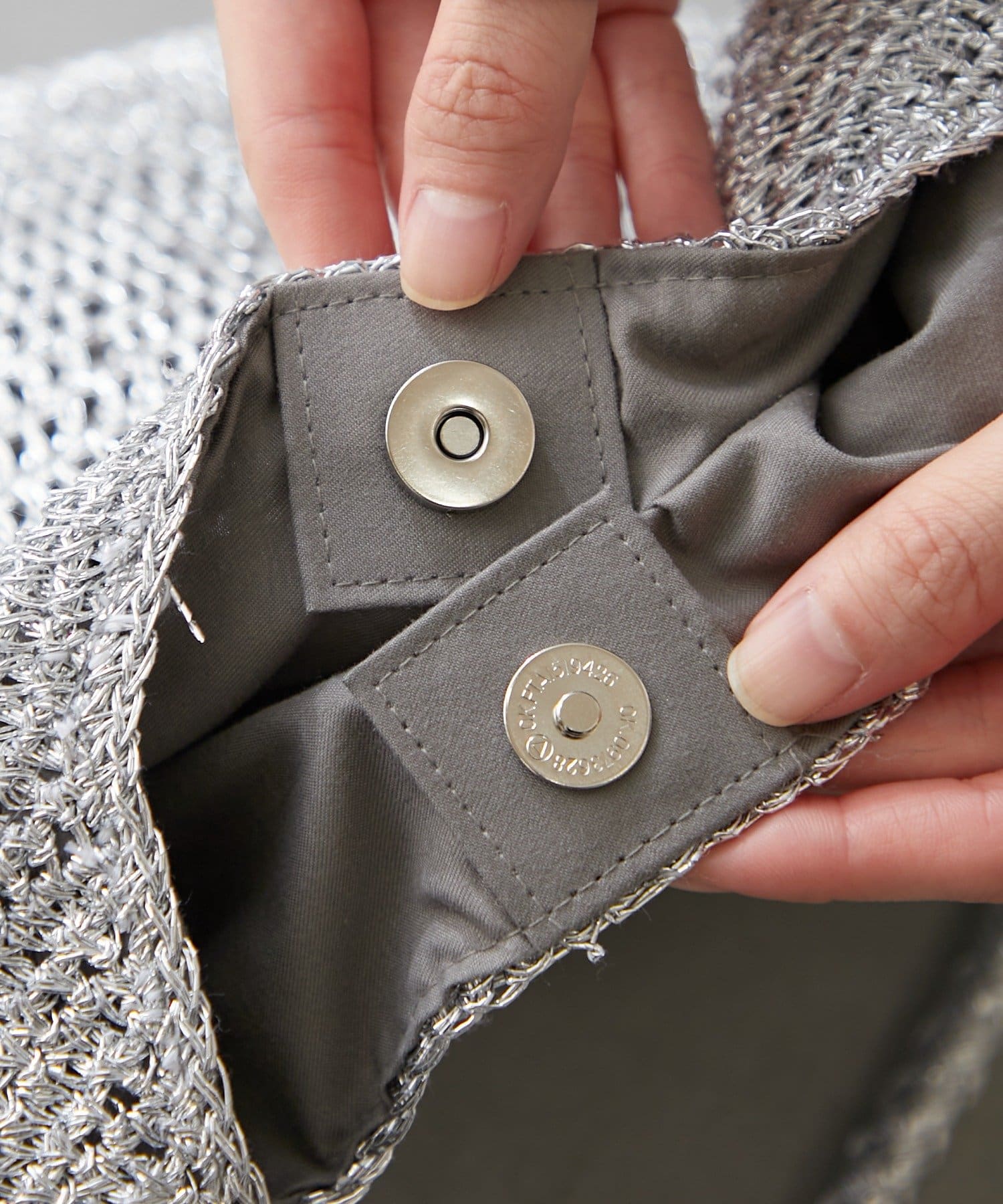内側にはしっかりと裏地が付いているため、中の荷物が見えたり、鍵などの小物が編み目から落ちたりする心配もありません。