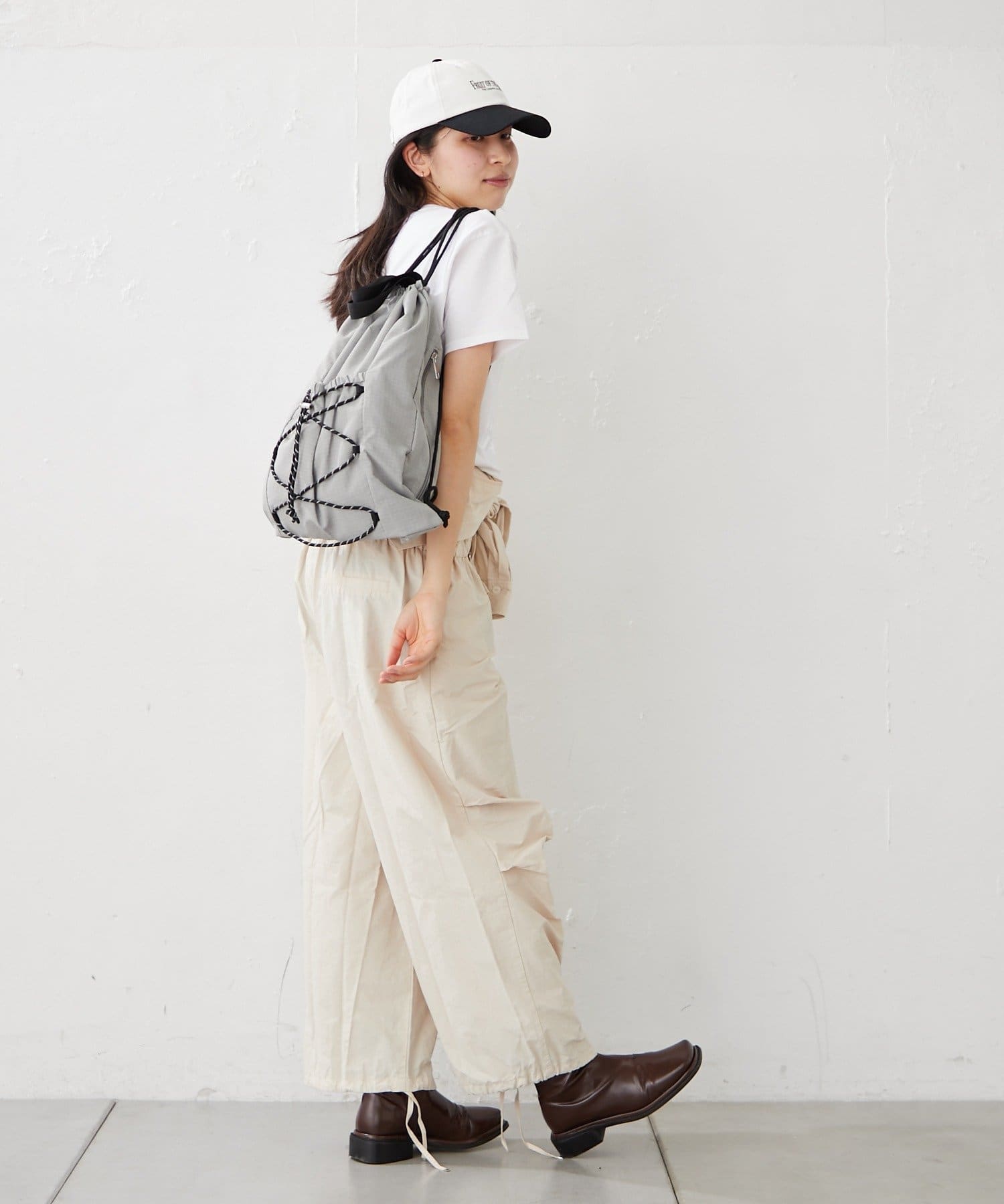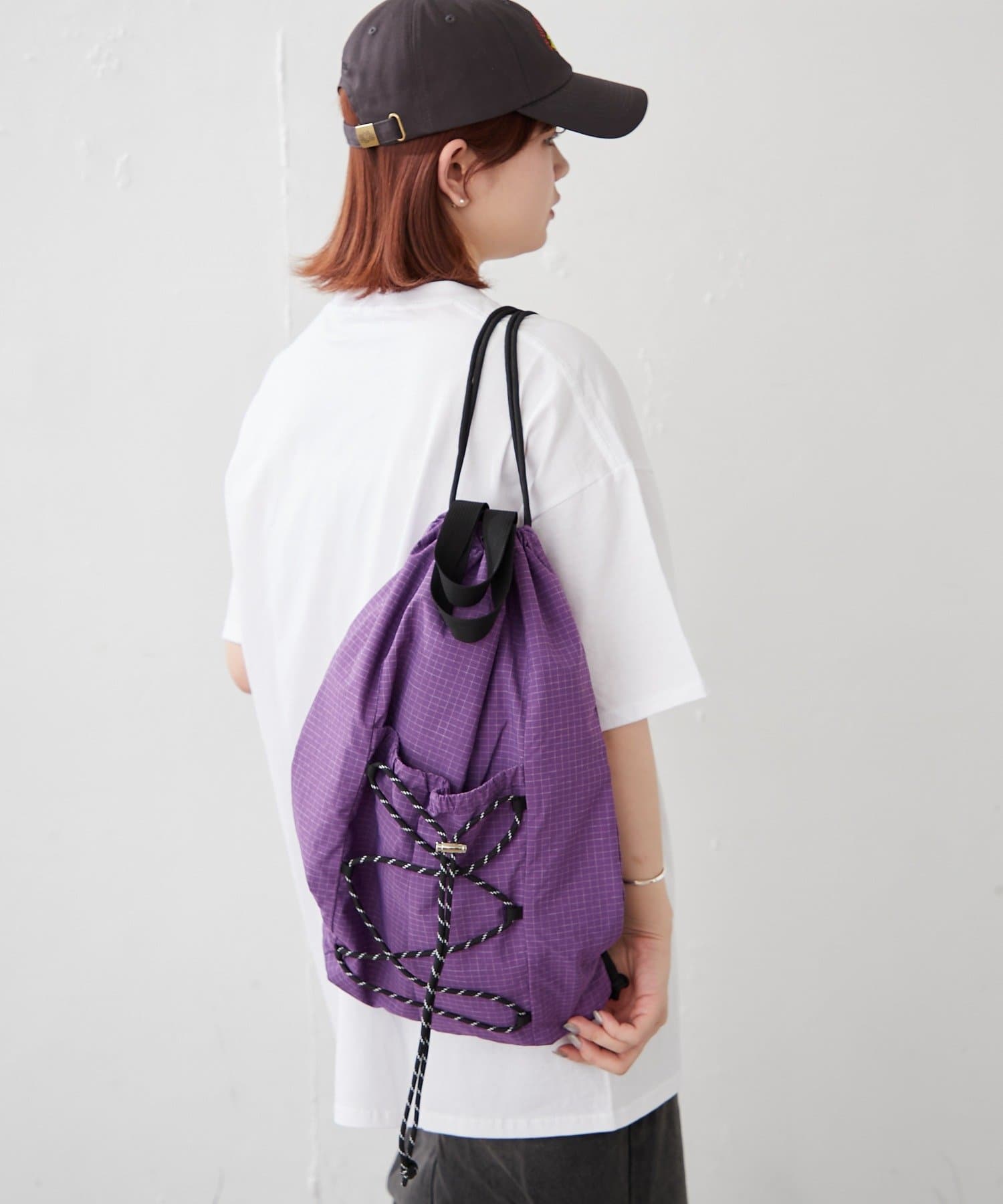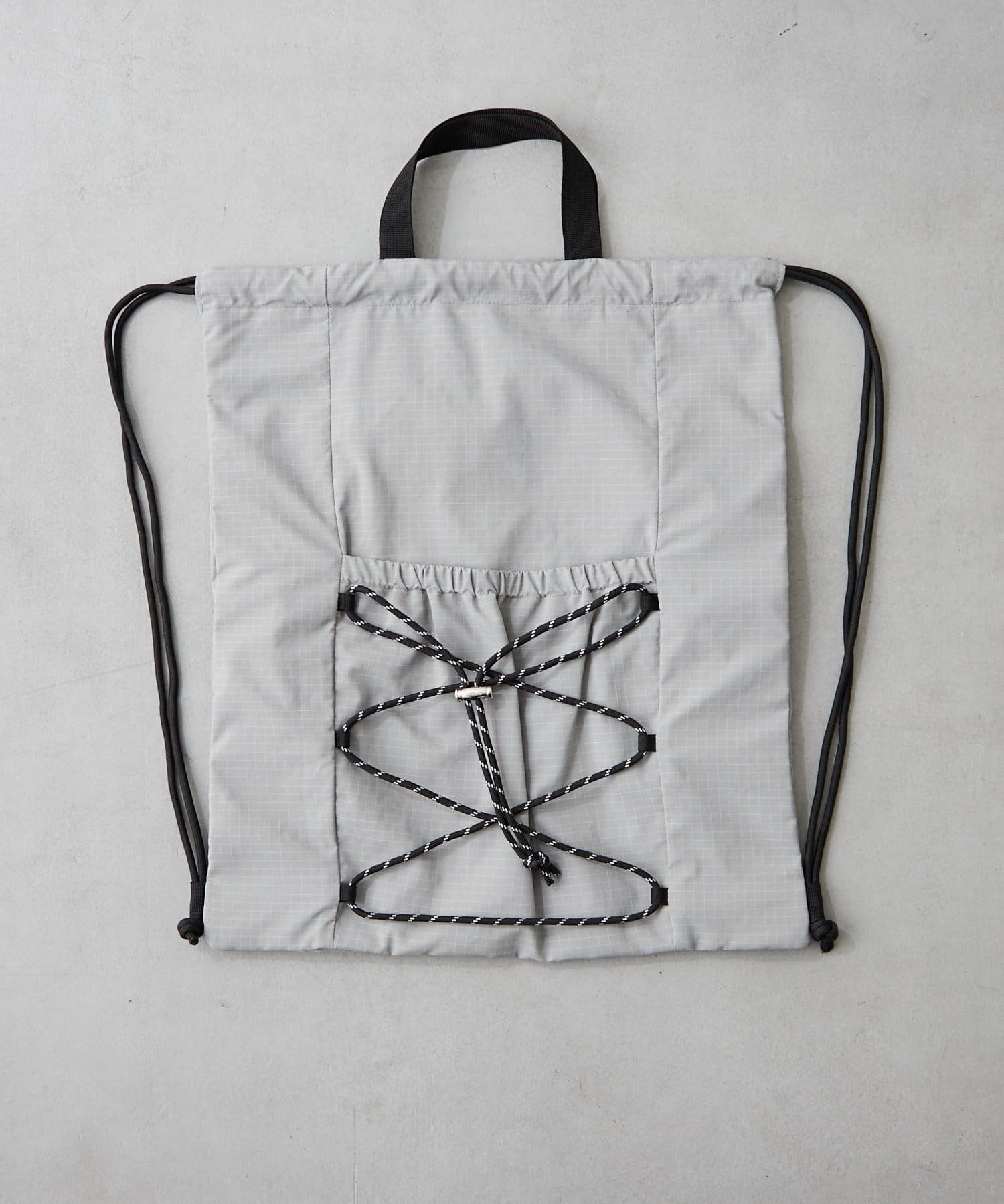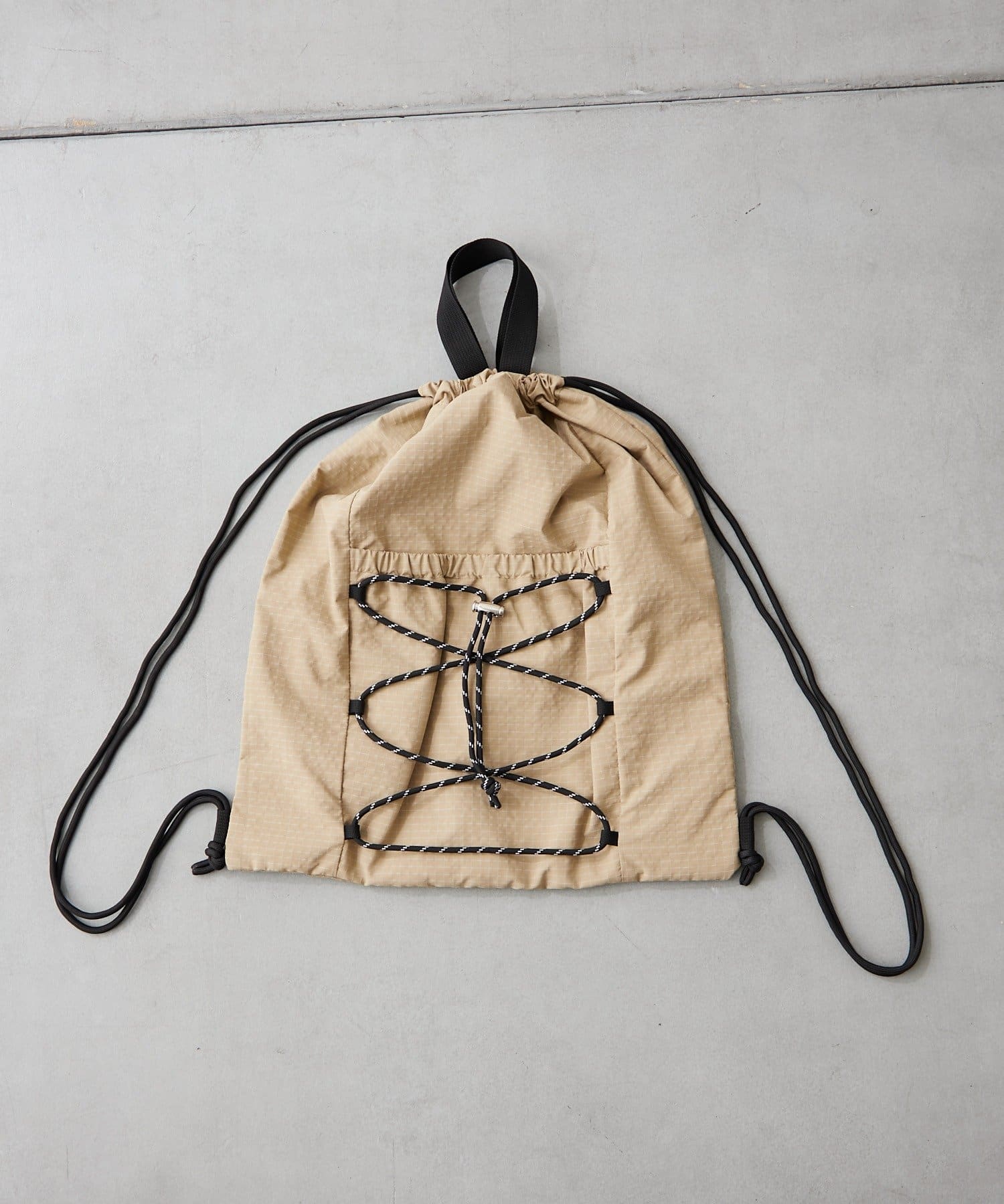 トレンドのアウトドアテイストを日常のスタイルに落とし込む、機能美あふれるドローコードナップサック