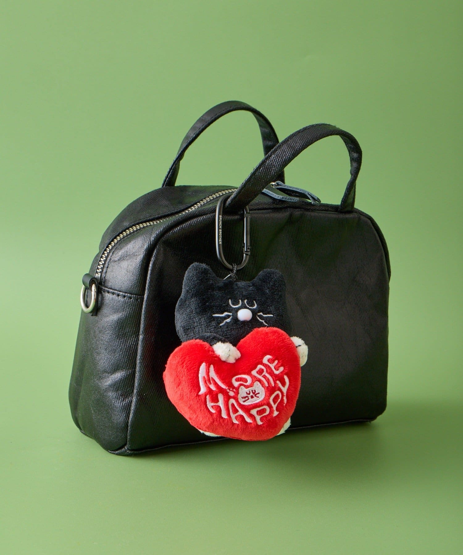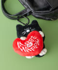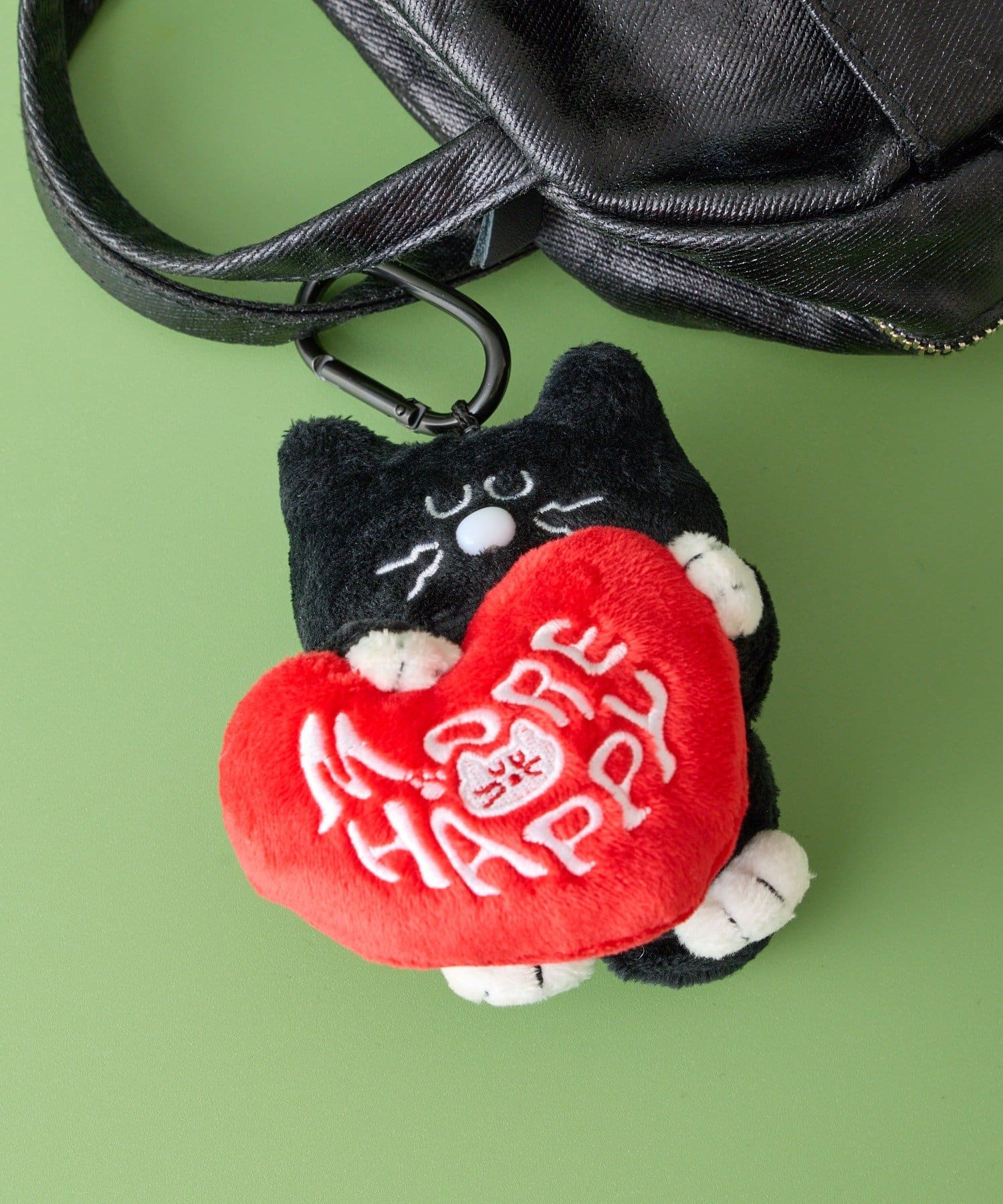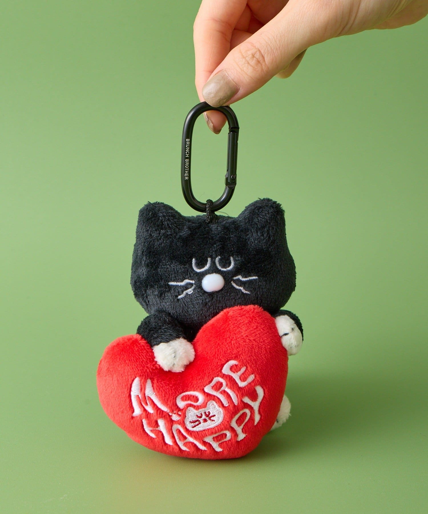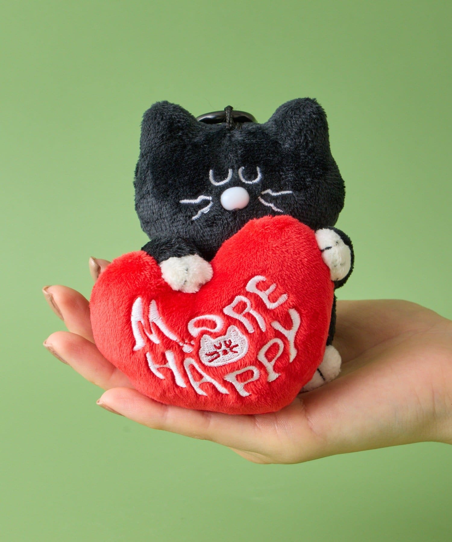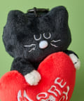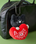 愛嬌たっぷり!ハートを抱きしめる黒猫のぬいぐるみキーホルダー