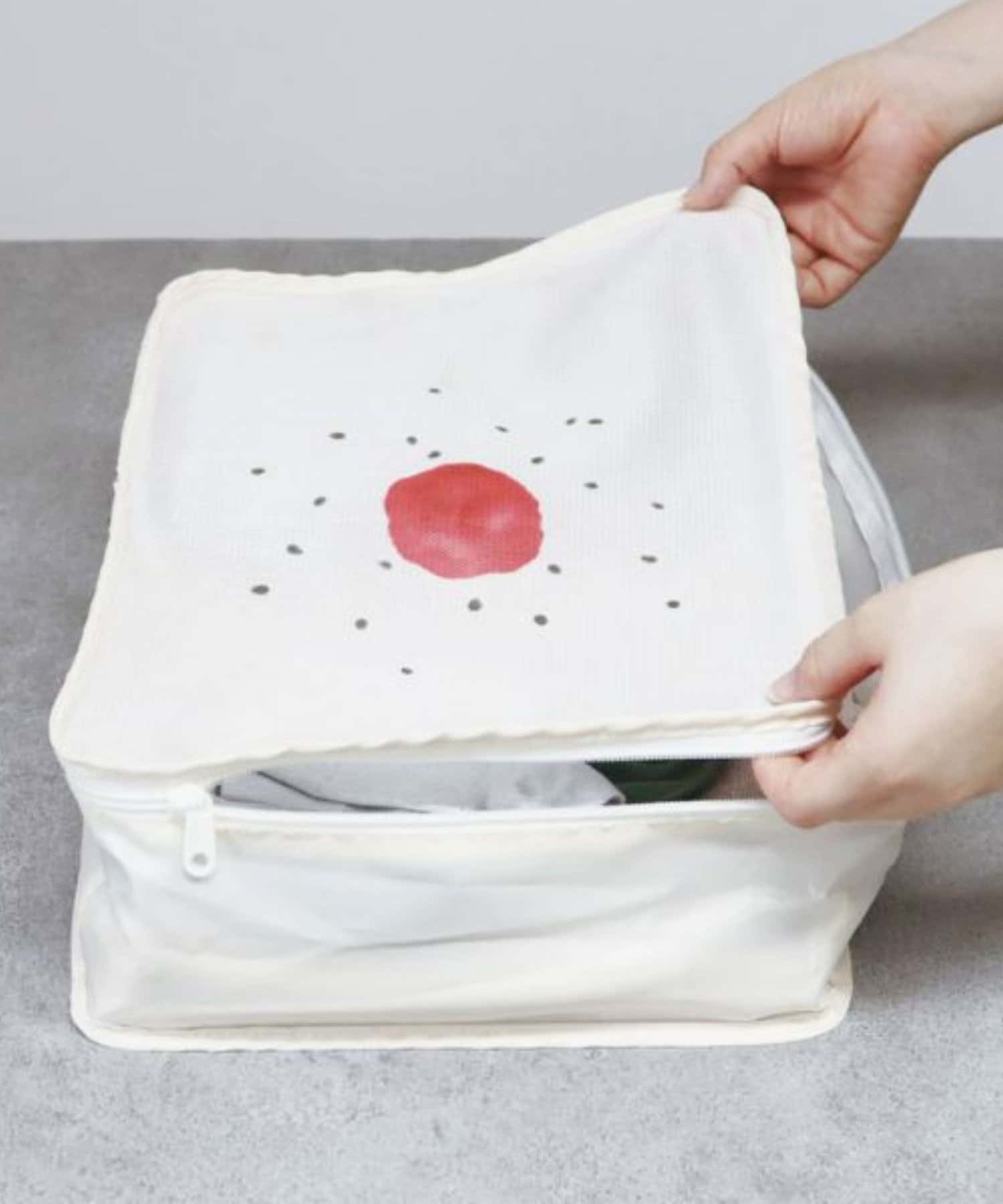 スーツケースを開けた瞬間「お弁当!?」と二度見されるようなインパクト抜群のトラベルポーチ。