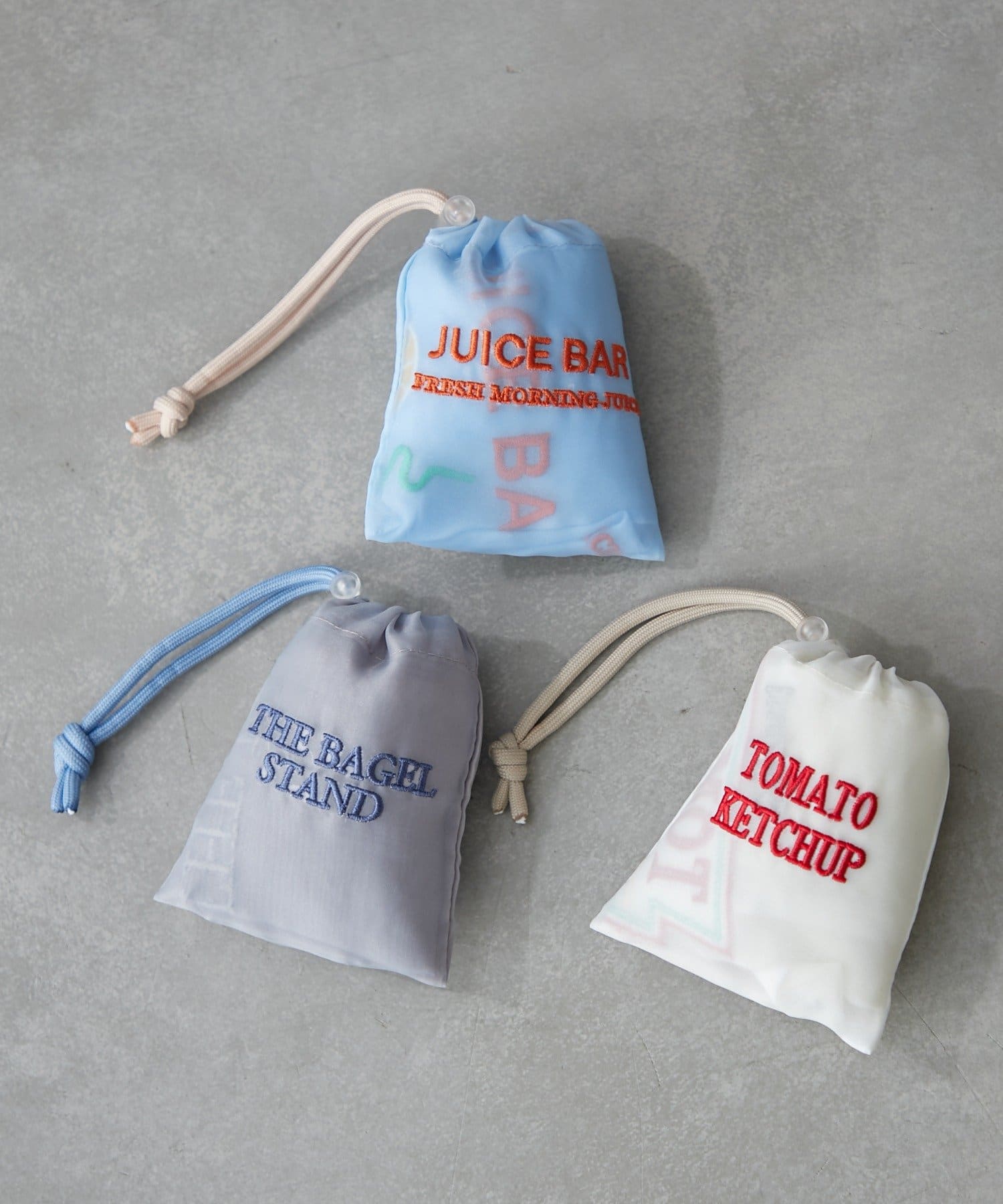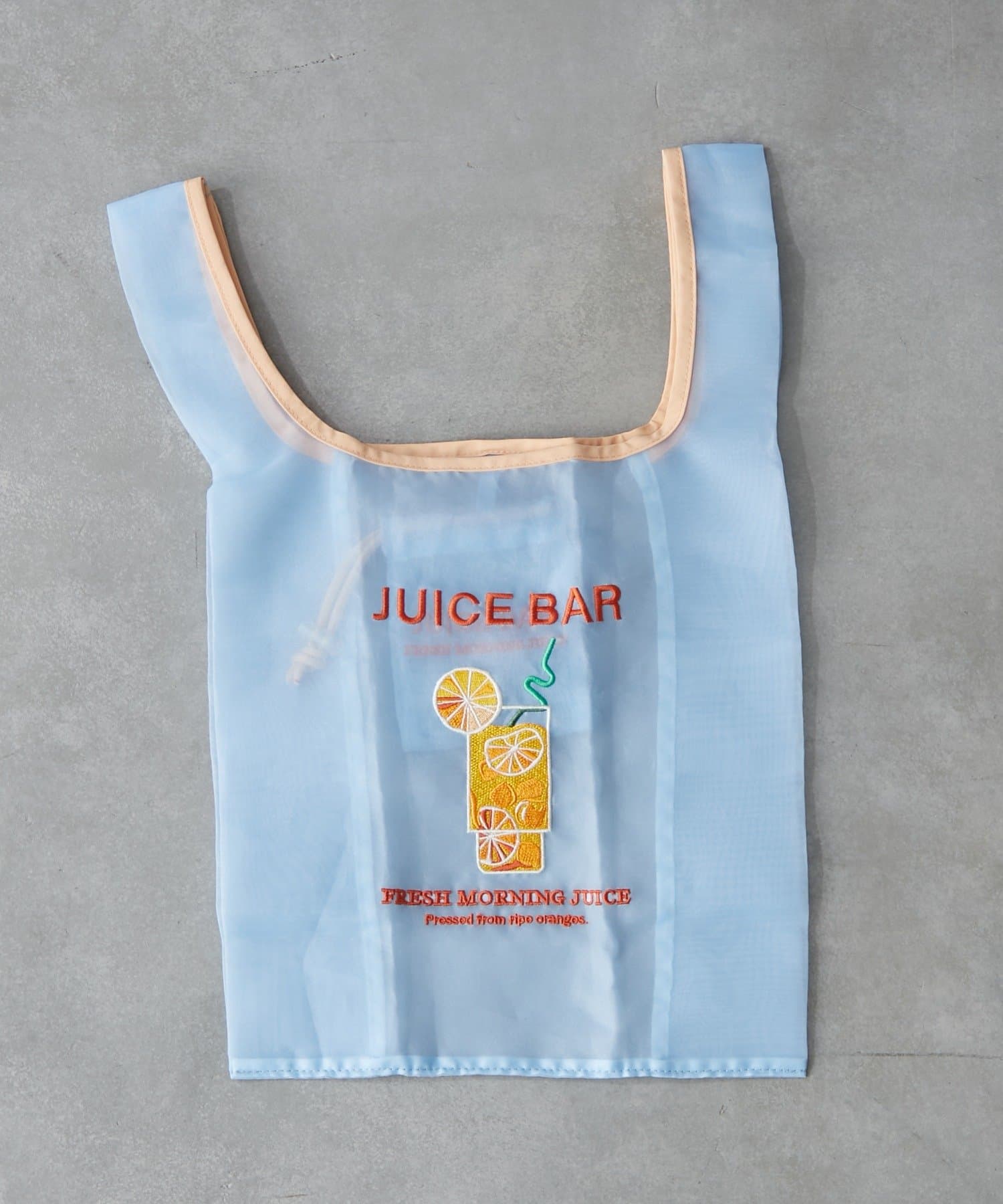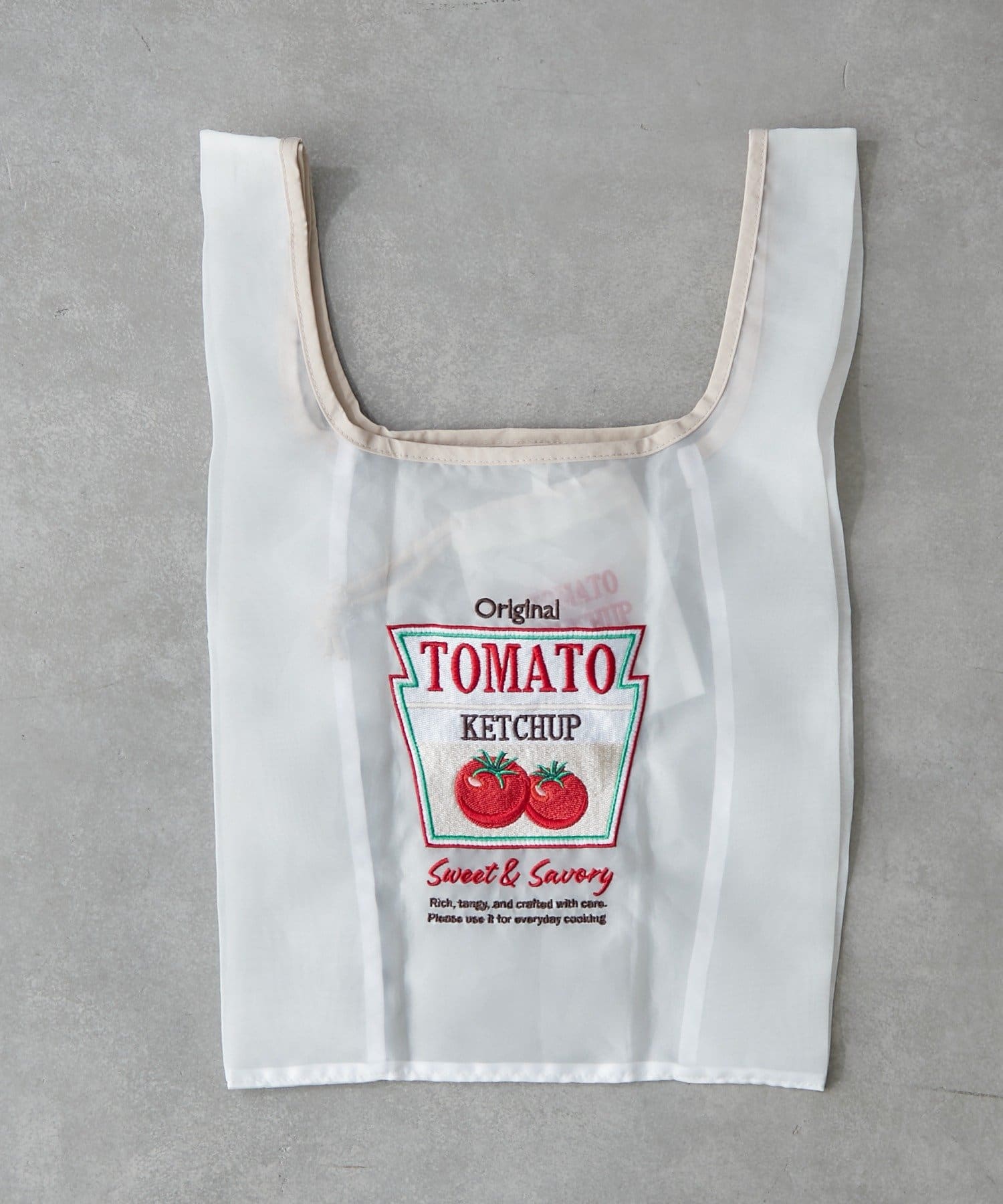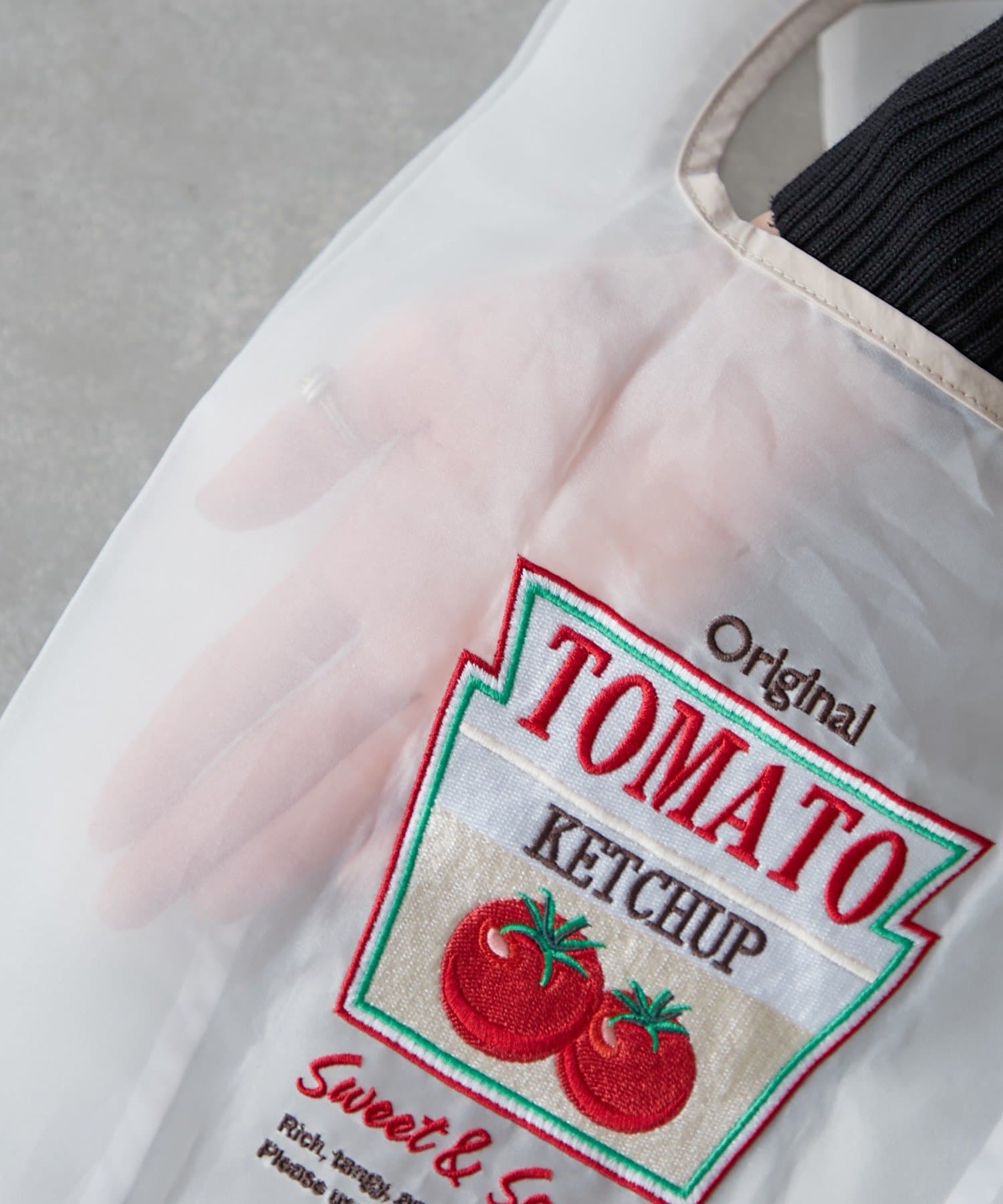 遊び心あふれる透け感×モチーフの刺繍が可愛いミニマルシェバッグ。カフェメニューをモチーフにしています。
