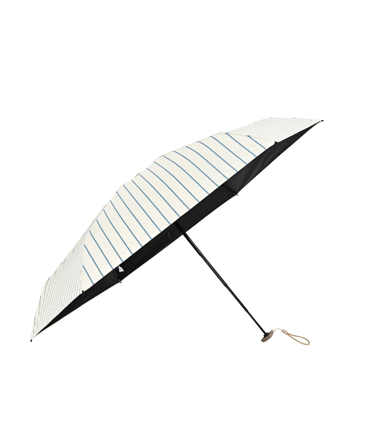 〈遮光・UVカット率100%〉ストライプ 晴雨兼用 折りたたみ傘 ポーチ付き