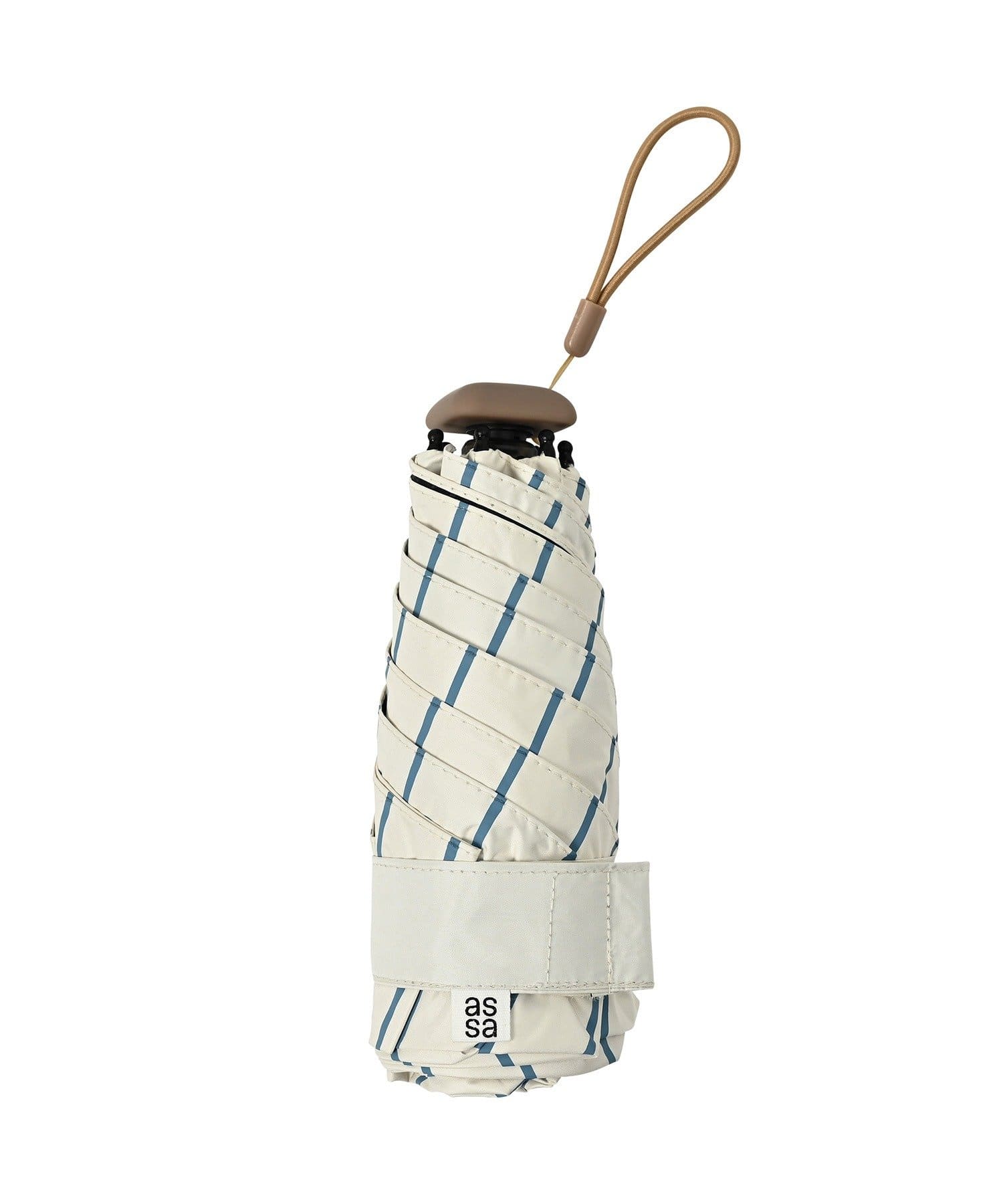高密度軽量生地と5段階に折りたためるコンパクトサイズの傘骨仕様で、軽くてコンパクトサイズ感。