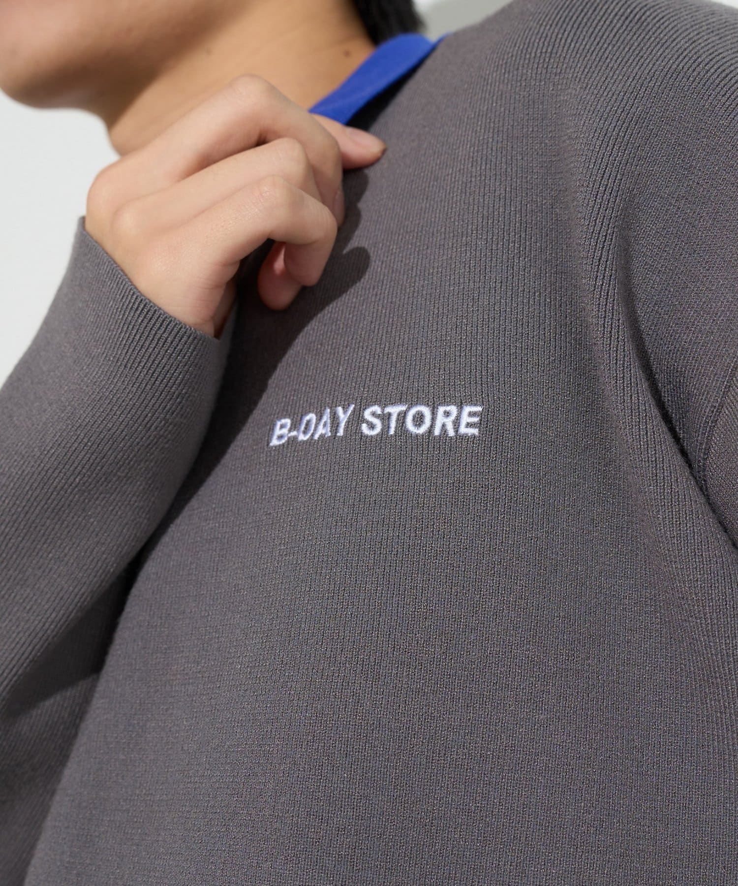 胸元には「B-DAY STORE」の刺繍入り。控えめながらも程よい存在感で、シンプルな装いにさりげなく映えるアイテムです。
