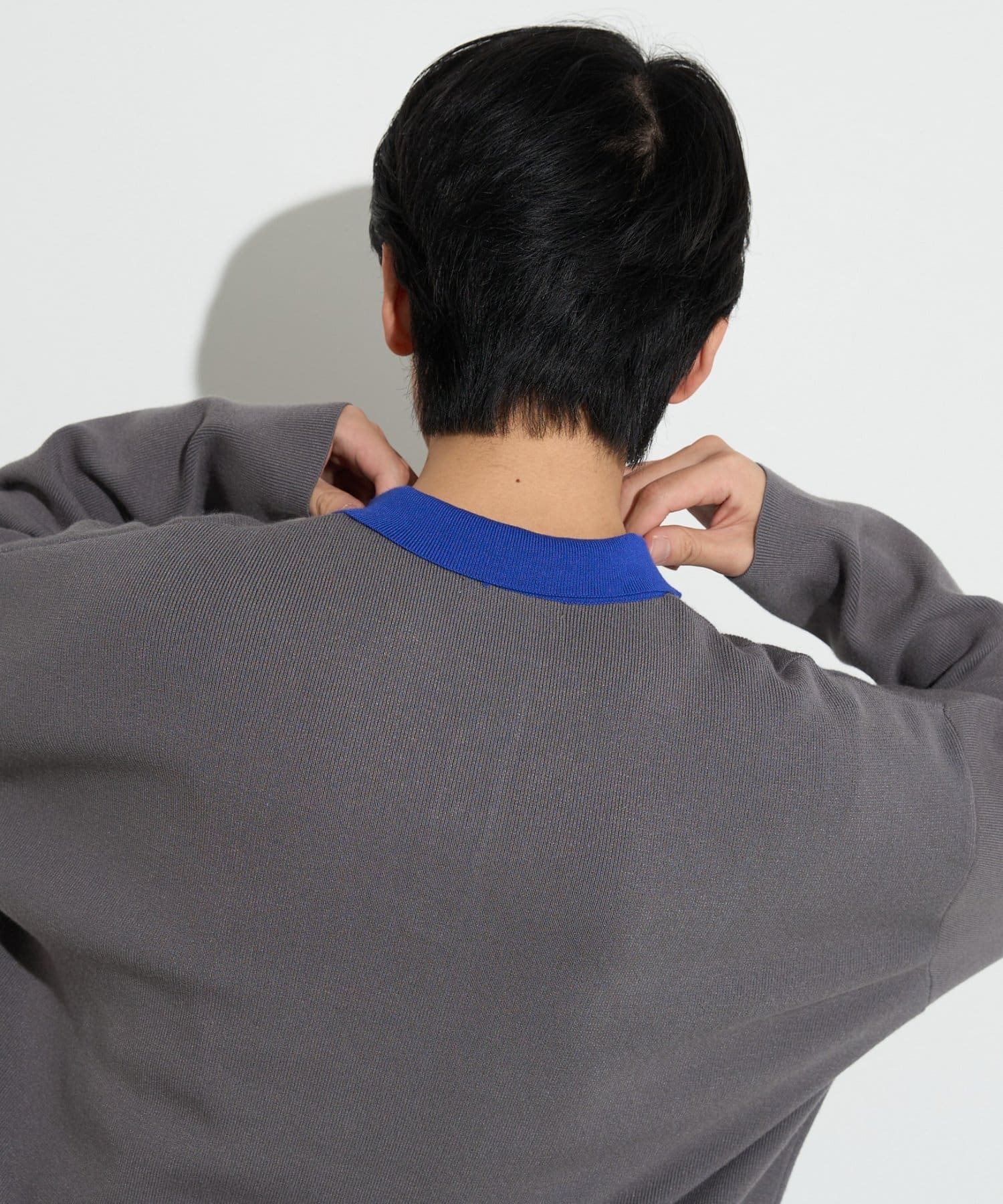 スウェットライクなニット素材を使用した、リラックス感のある一着です。