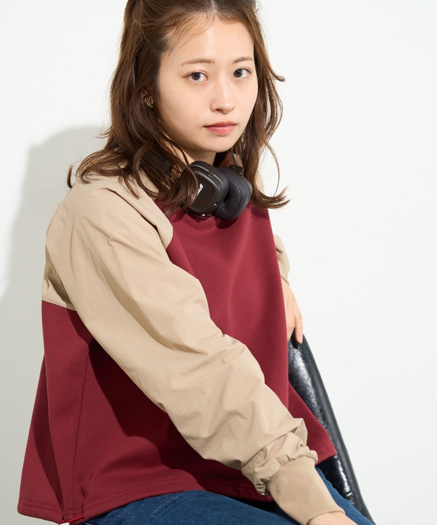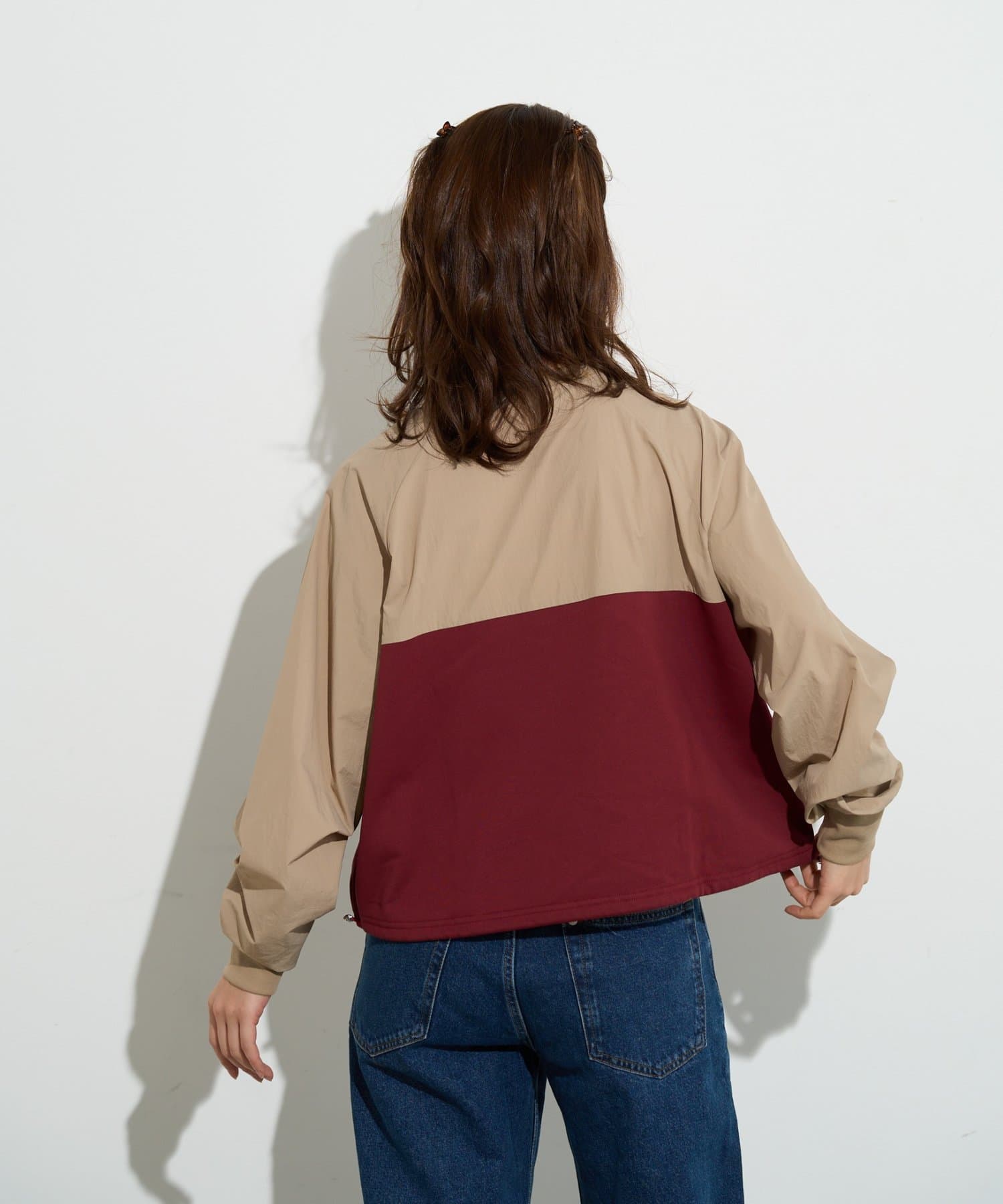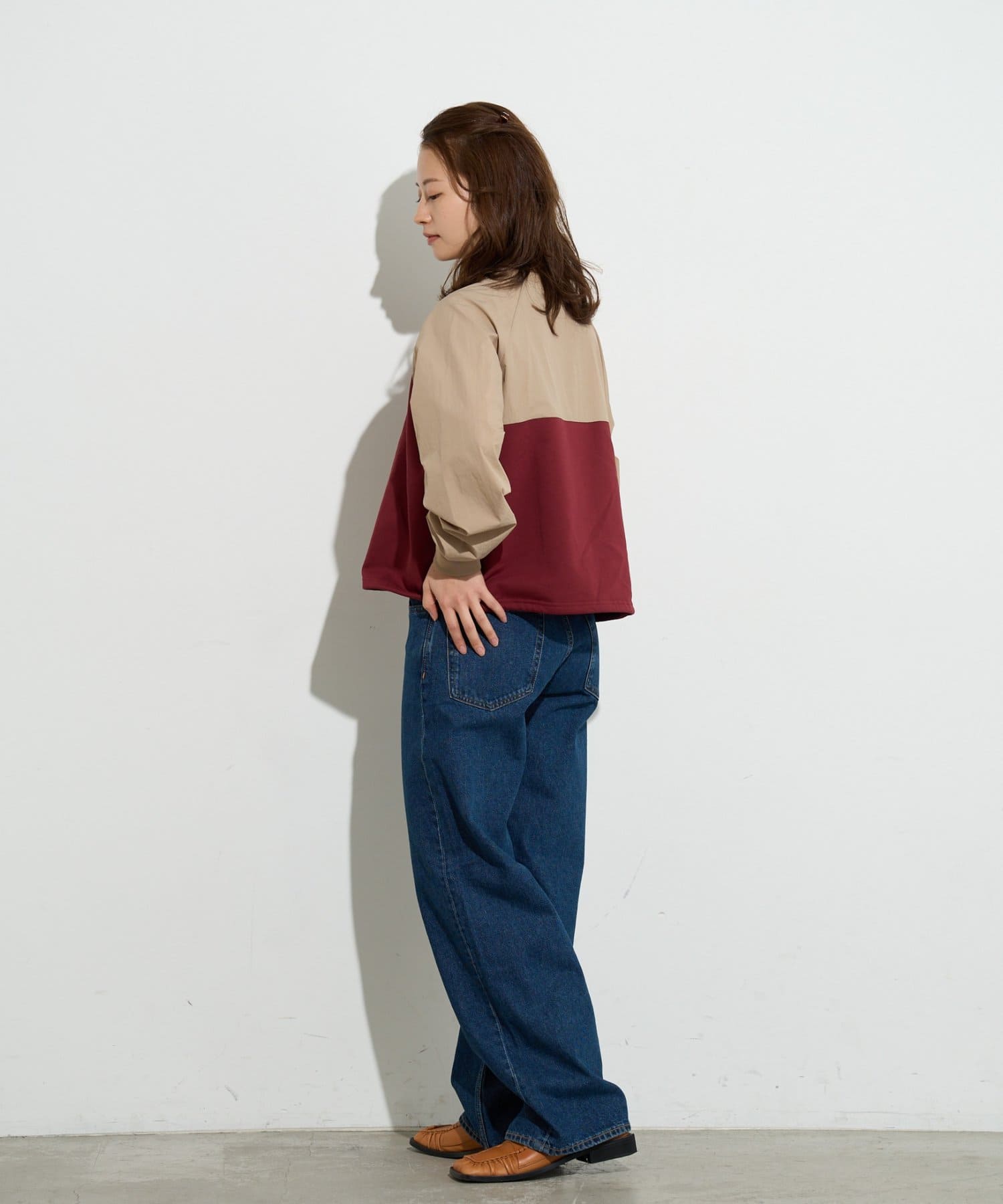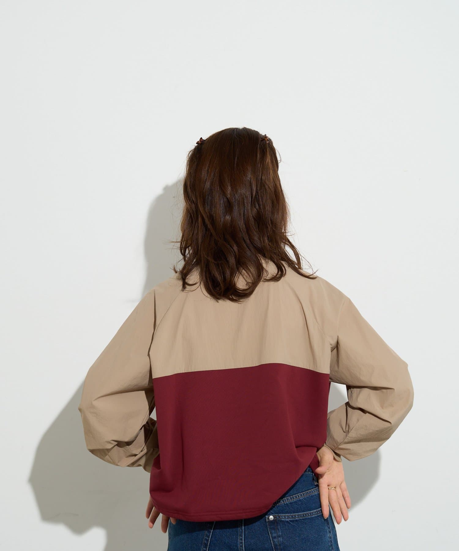 袖を微配色しているので、合わせると1枚のアウターのように見せることができます。