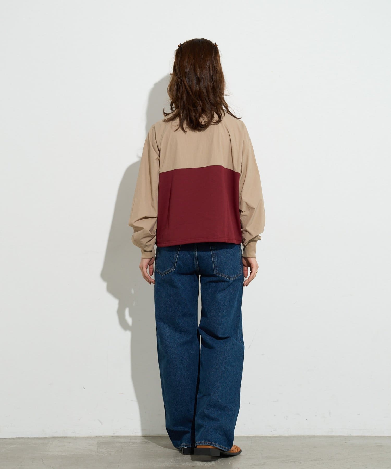 裏毛とナイロン生地のドッキングカットソー