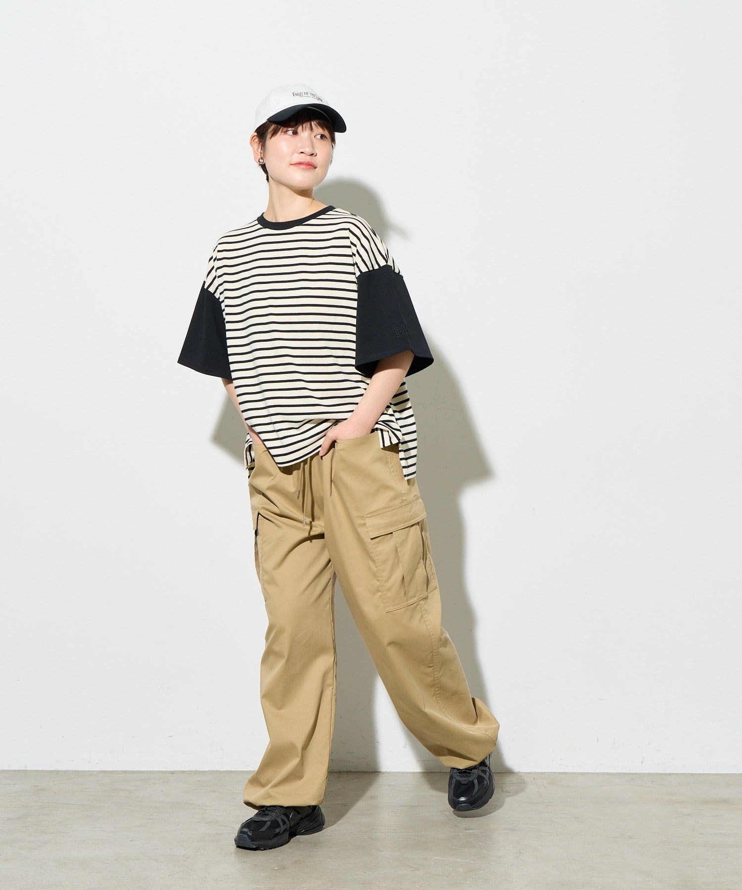 裾はドロストできるので、ジョガーパンツ風にもアレンジ可能。