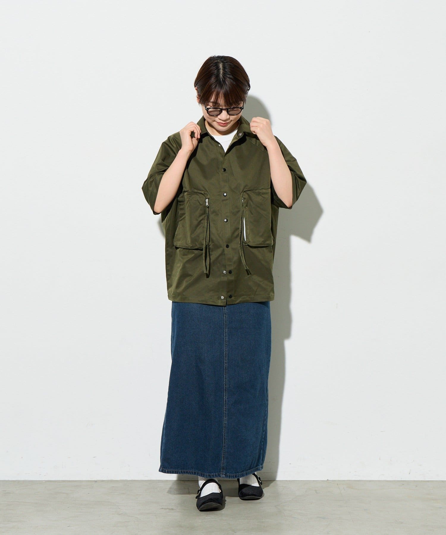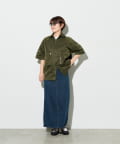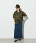ボタンを全て留めてシャツとして着用する際は、タイトなリブスカートやスキニーパンツを合わせると、トップスのボリュームとの対比でメリハリのある着こなしに。