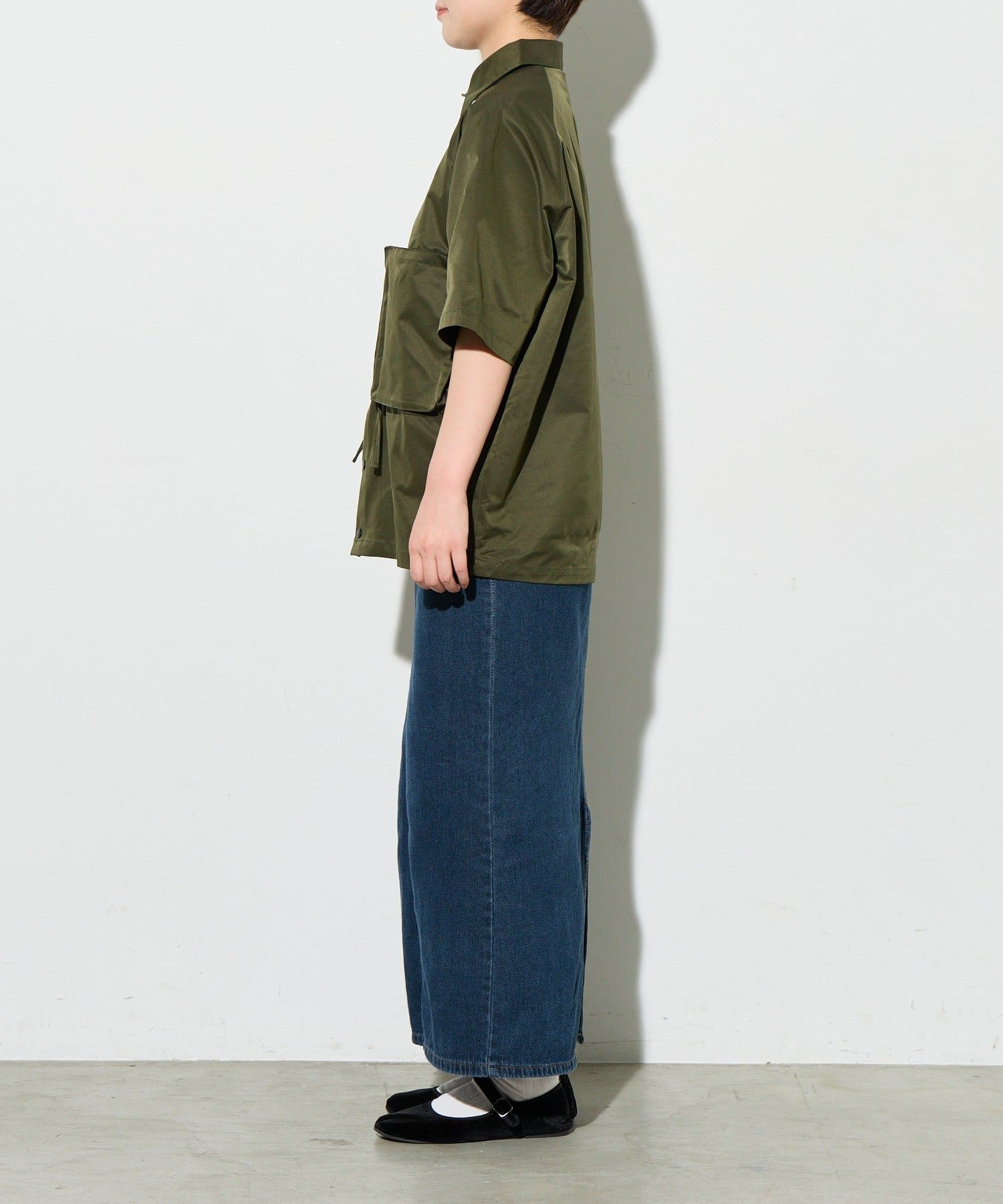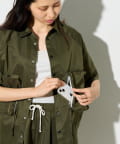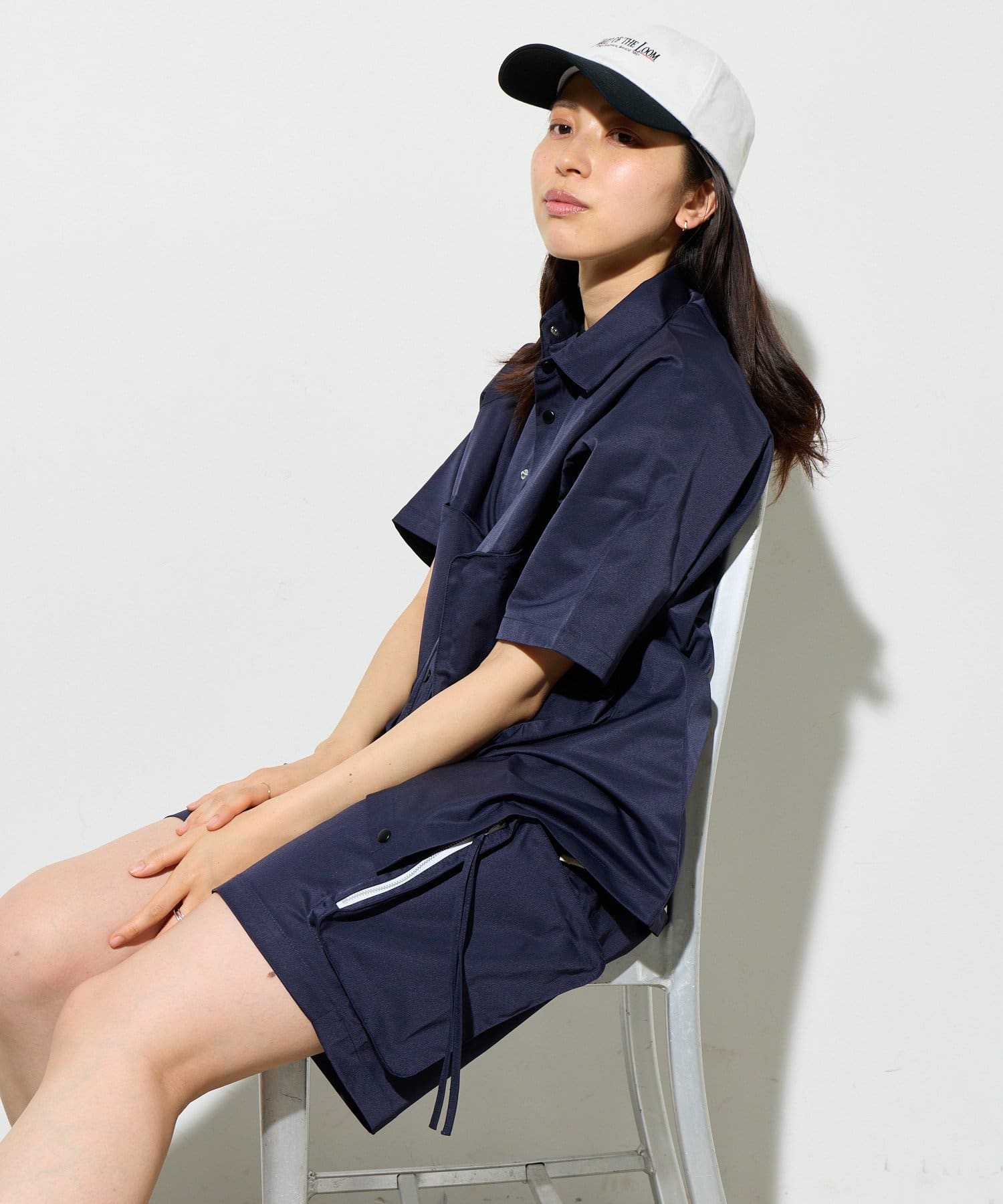 そのまま着ればストンとしたボックスシルエット、絞れば裾が内側に入り込み、丸みのある柔らかなバルーンシルエットへと変化します。
