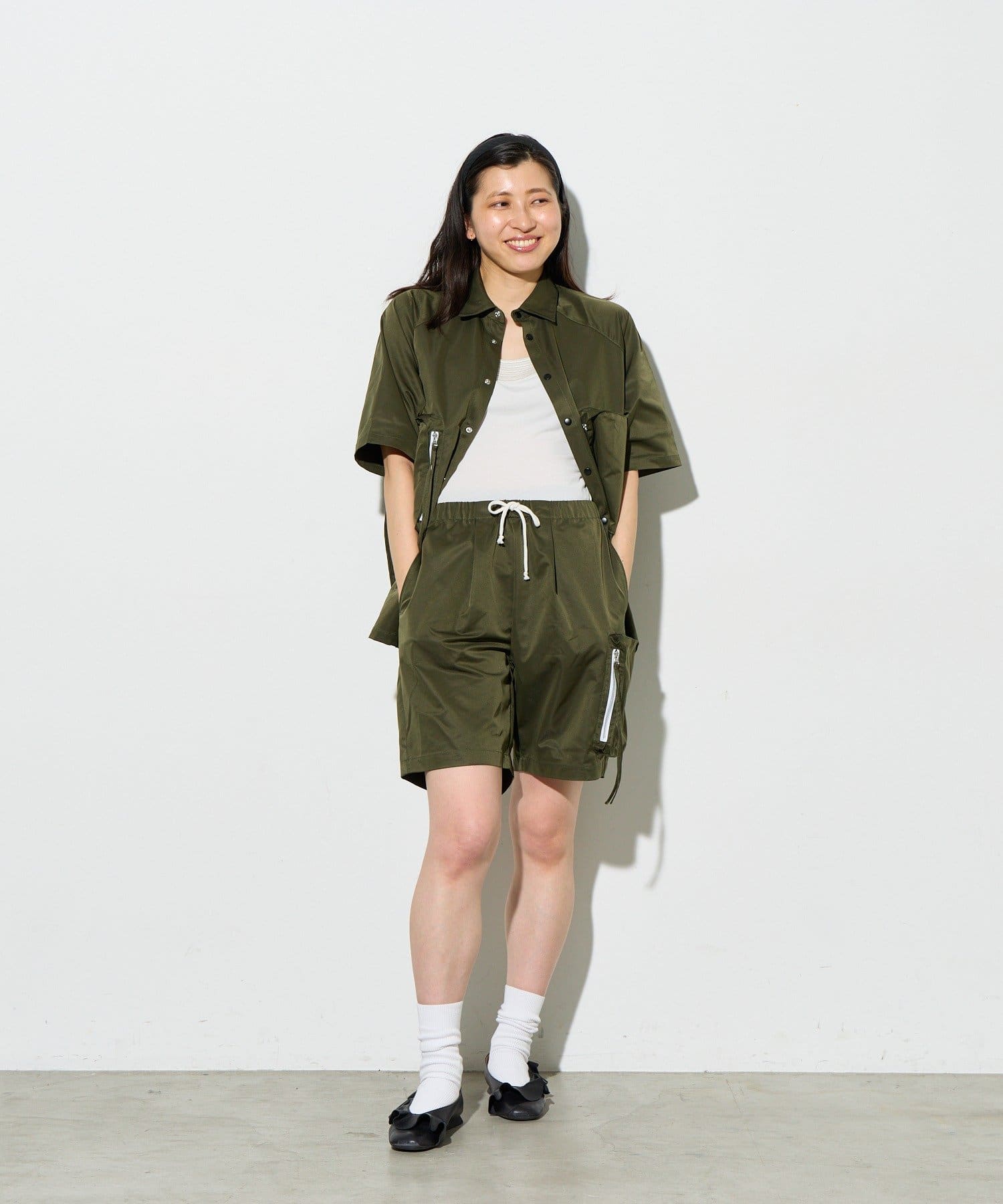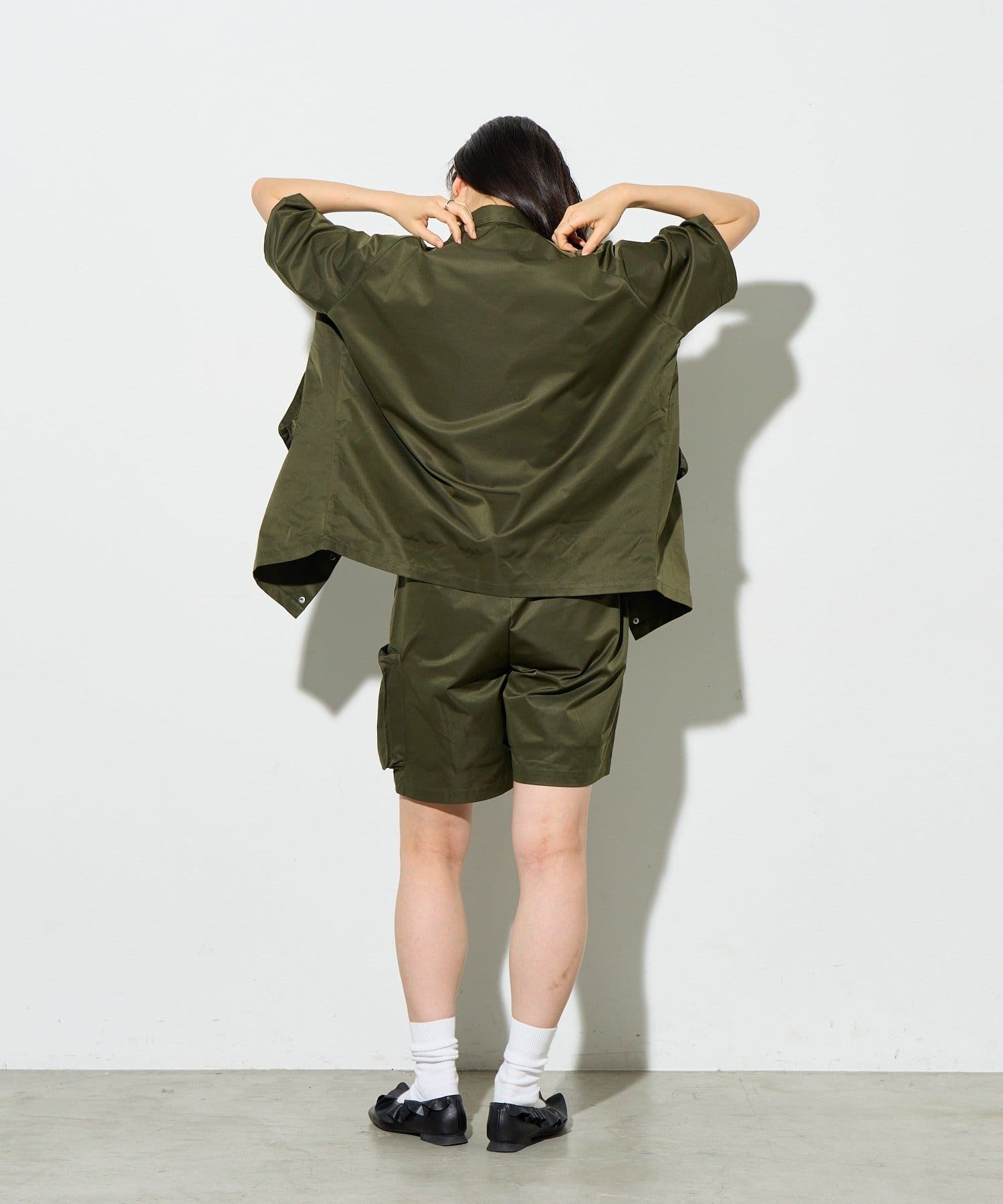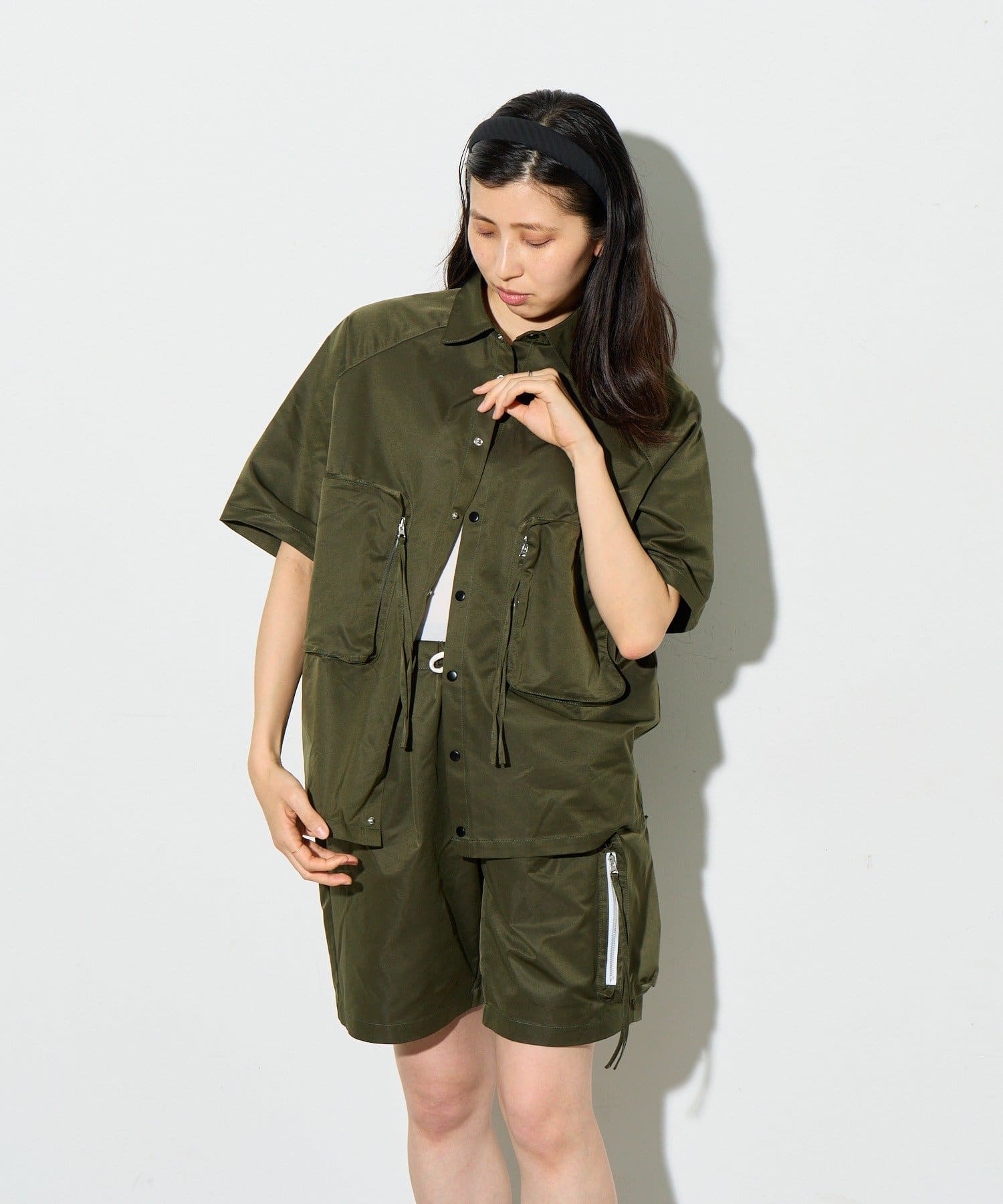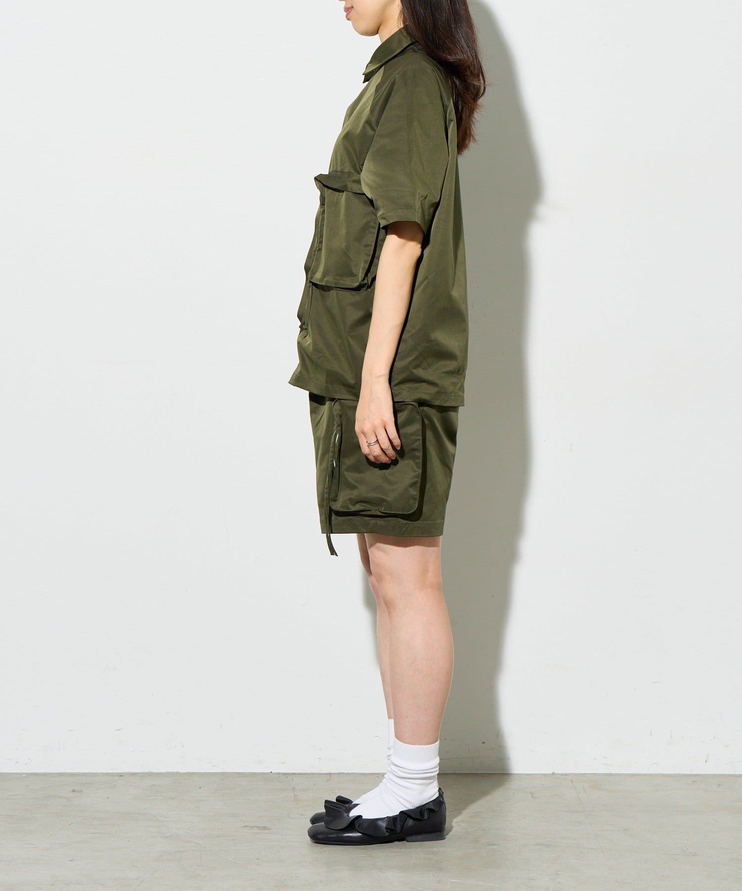 別ページで販売している「ビッグポケットショートパンツ」とセットアップで着用していただけ、
