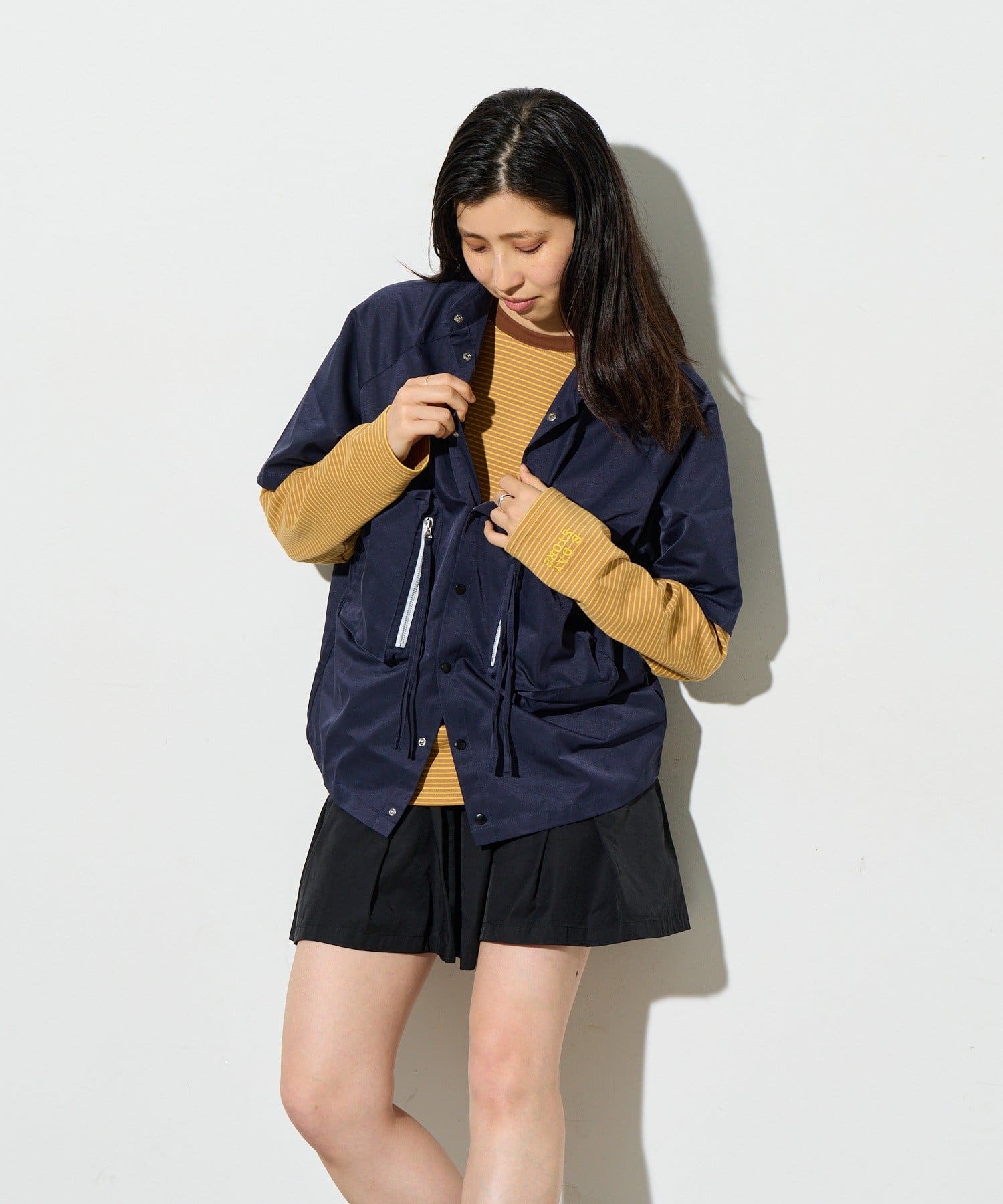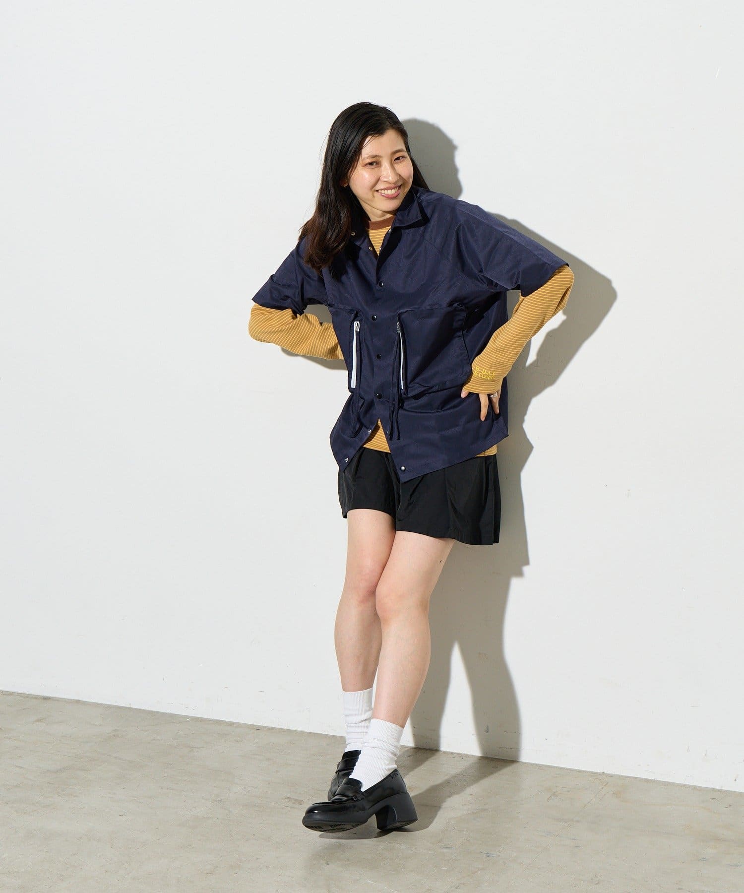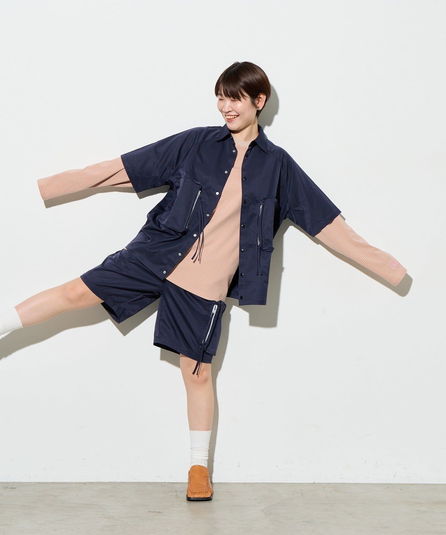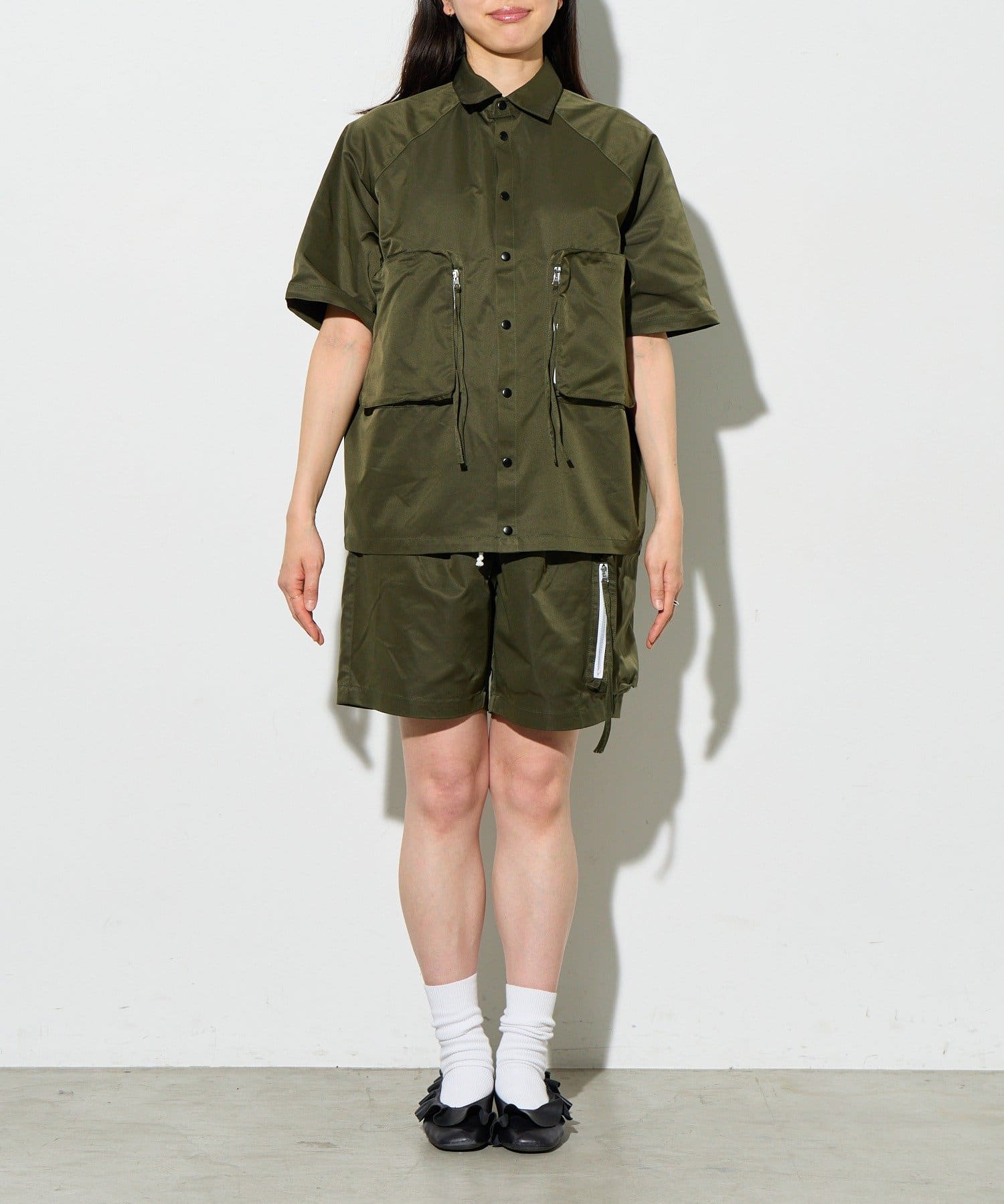 別ページで販売している「ビッグポケットショートパンツ」とセットアップで着用していただけ、