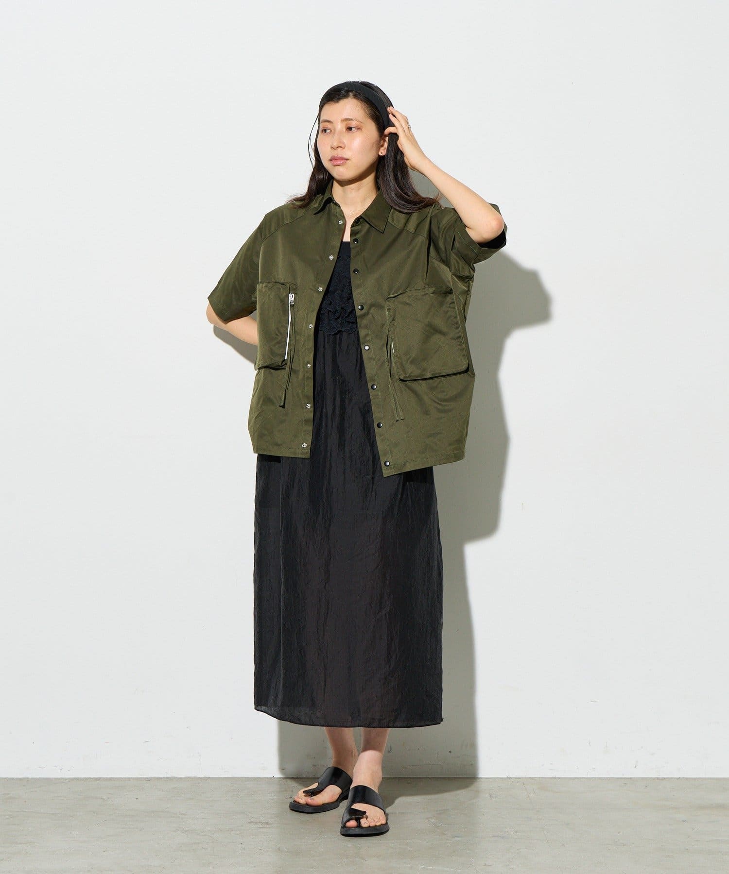 春夏シーズンには、タンクトップやキャミソールの上にラフに羽織るだけで、トレンド感のあるレイヤードスタイルが完成します。