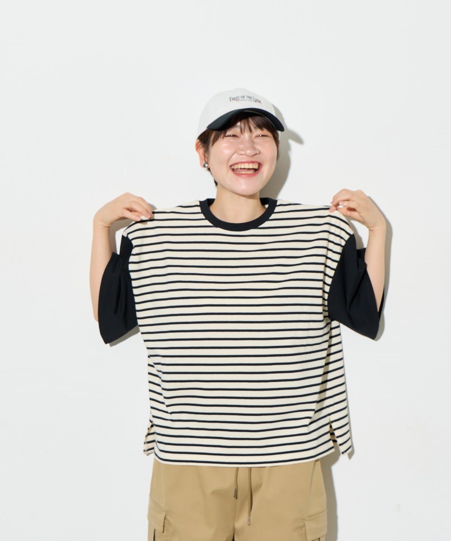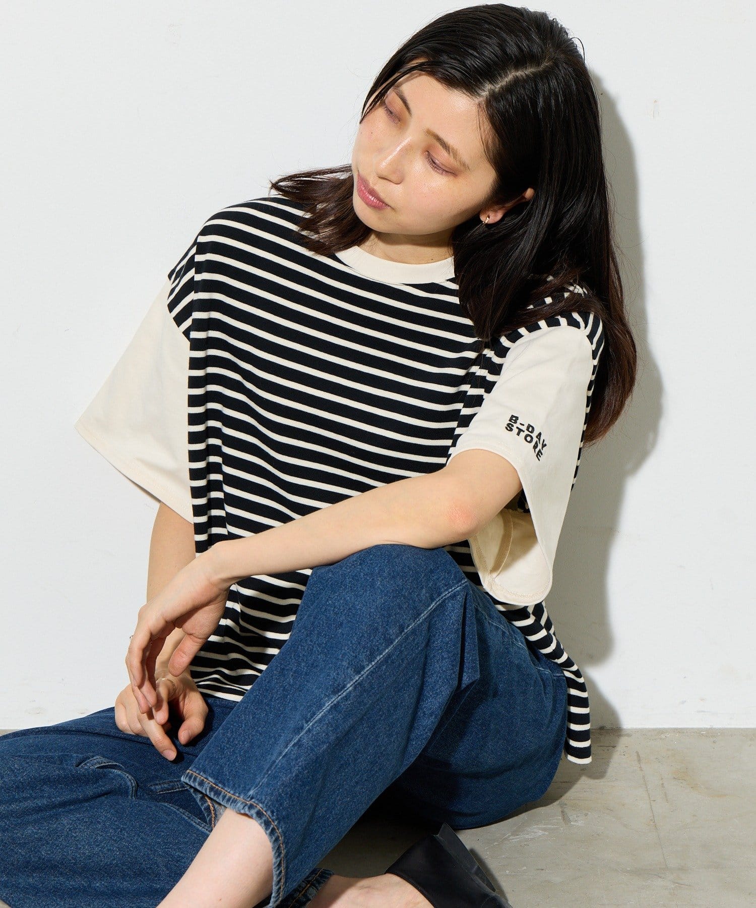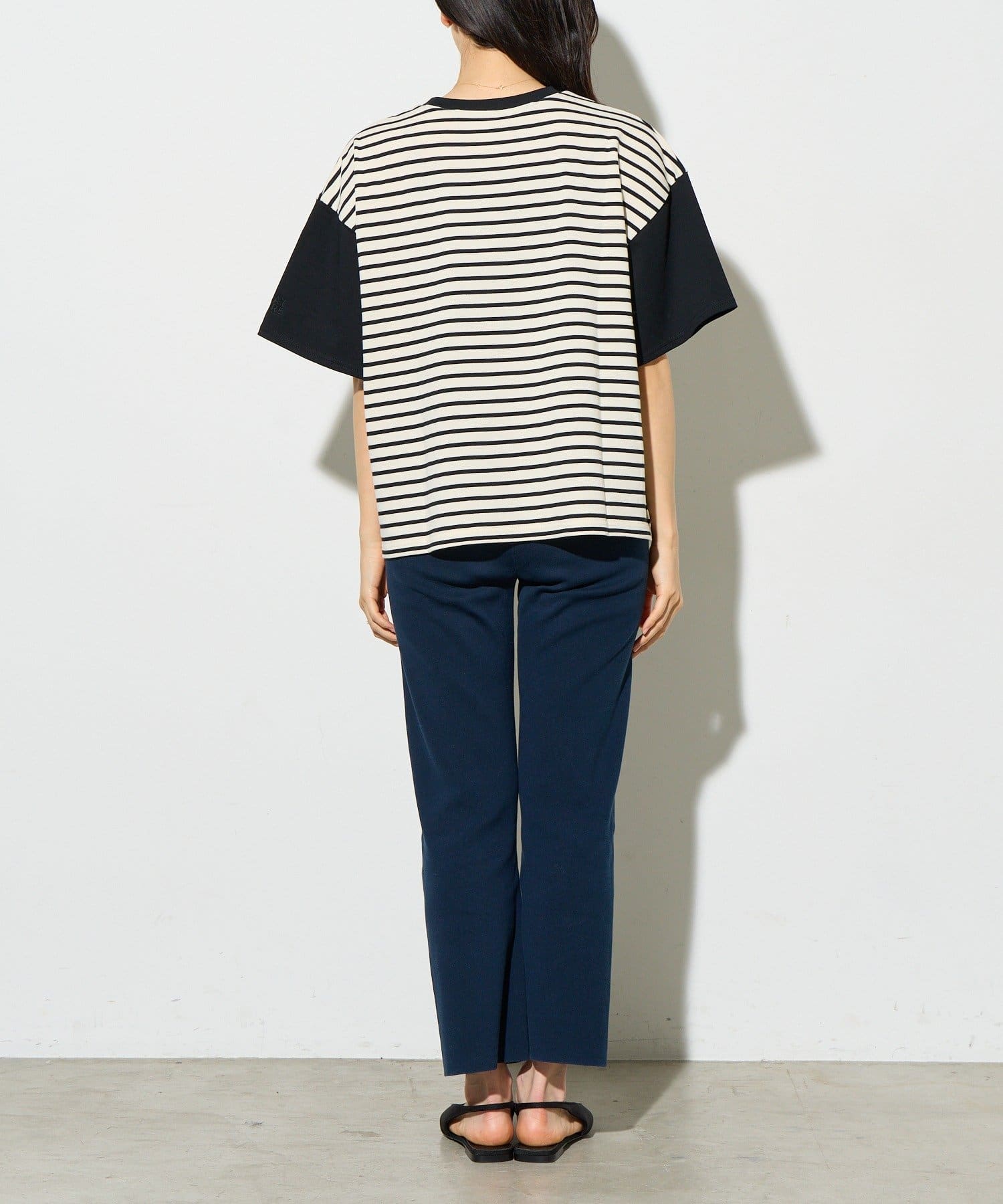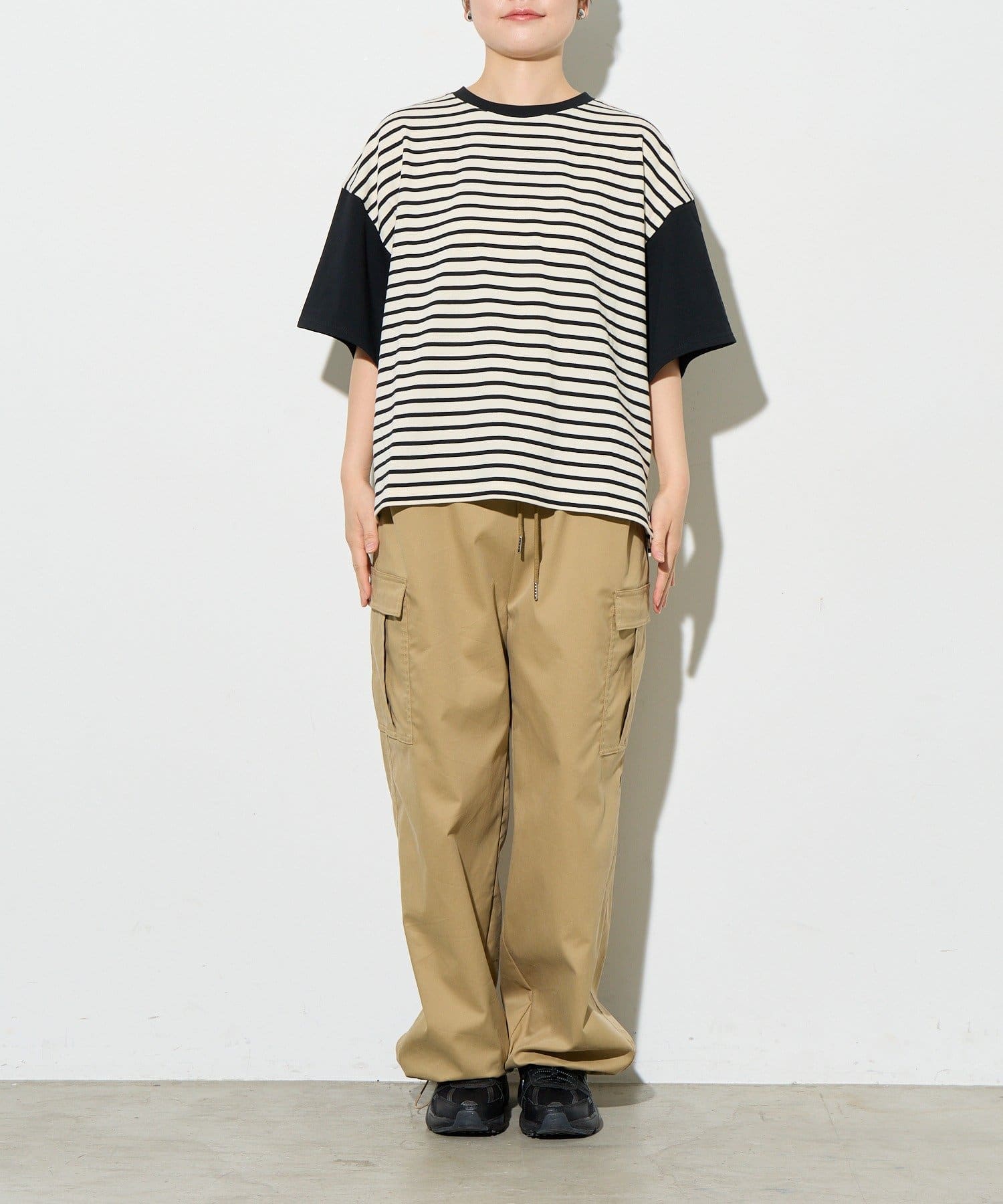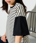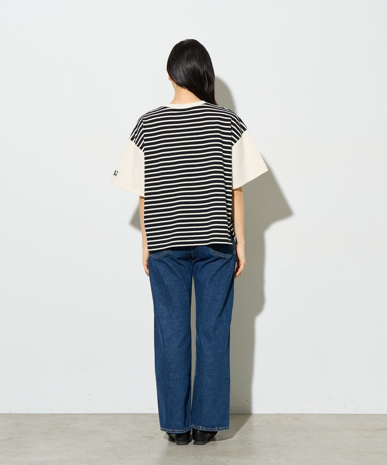 袖部分を大胆に切り替えたスリーブデザインがポイントのボーダー配色のカットソー