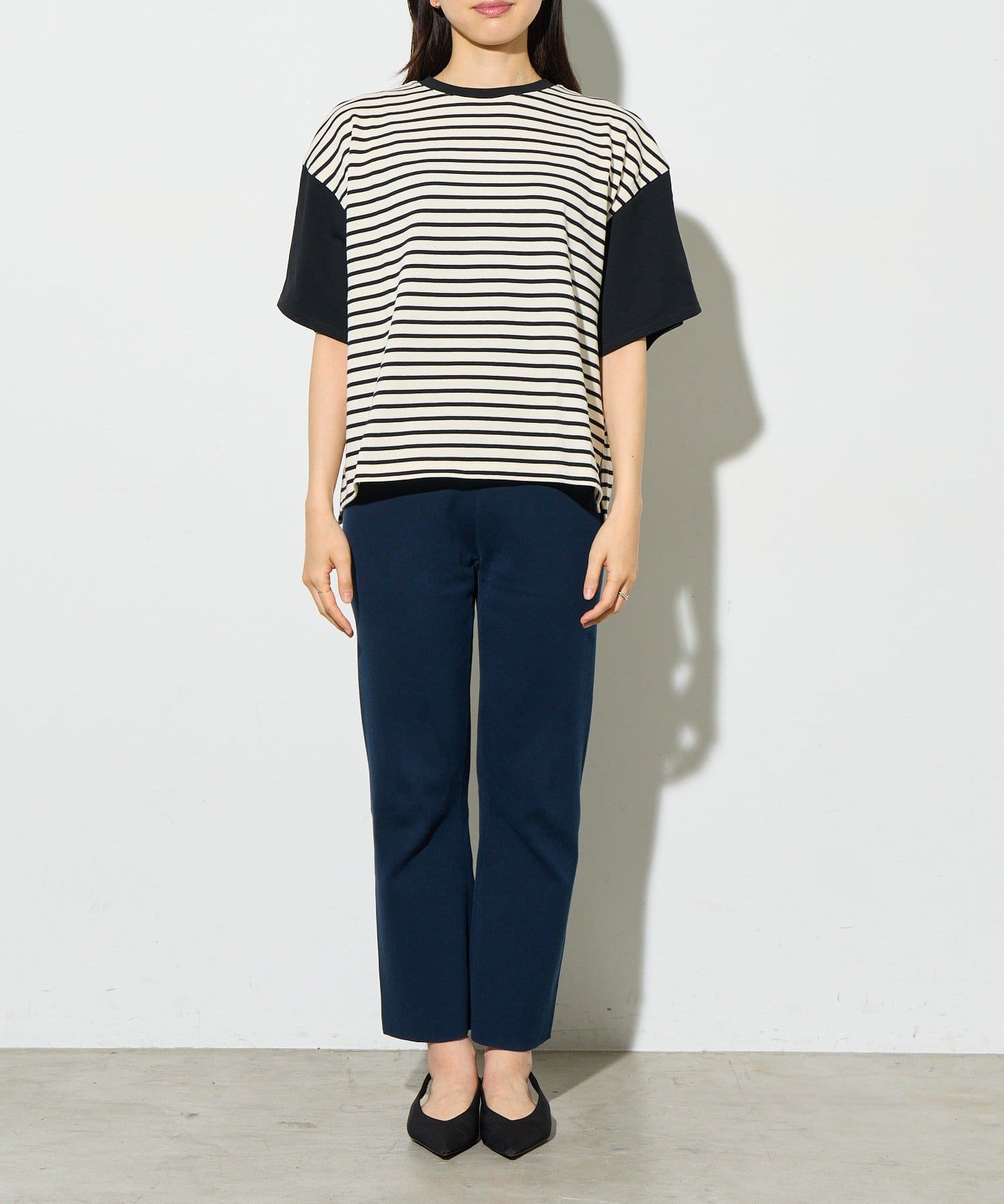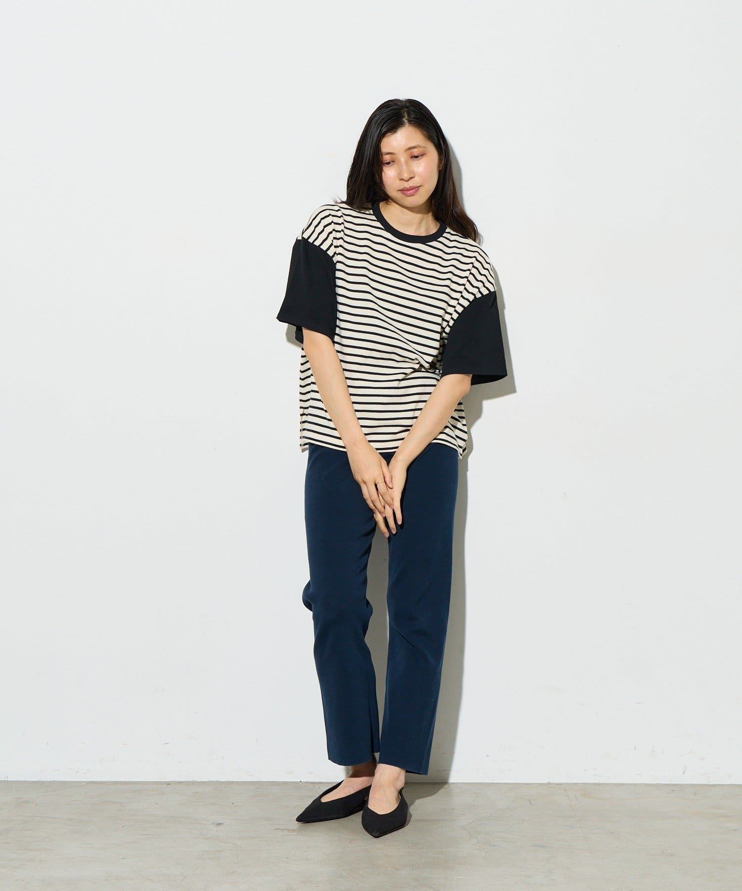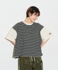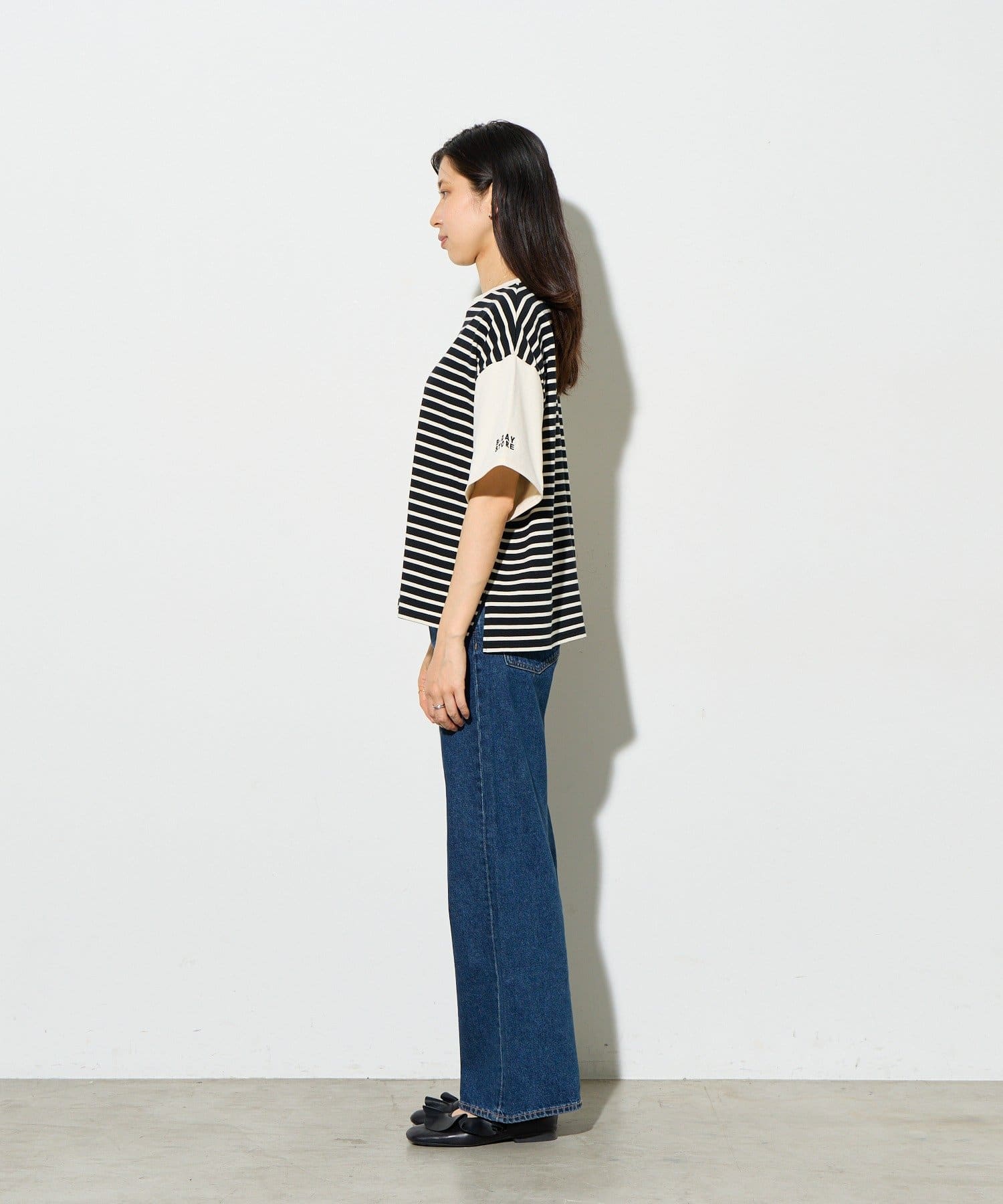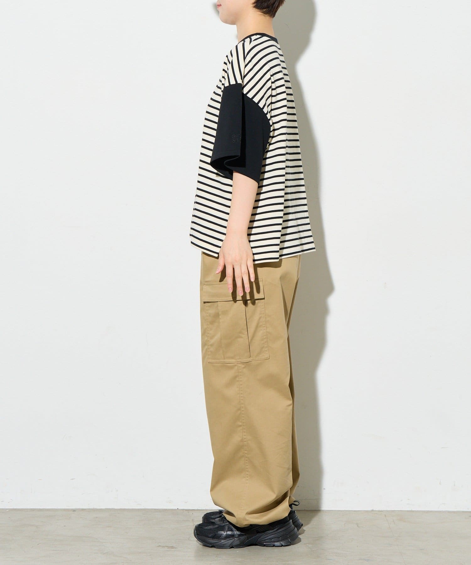 袖部分を大胆に切り替えたスリーブデザインがポイントのボーダー配色のカットソー