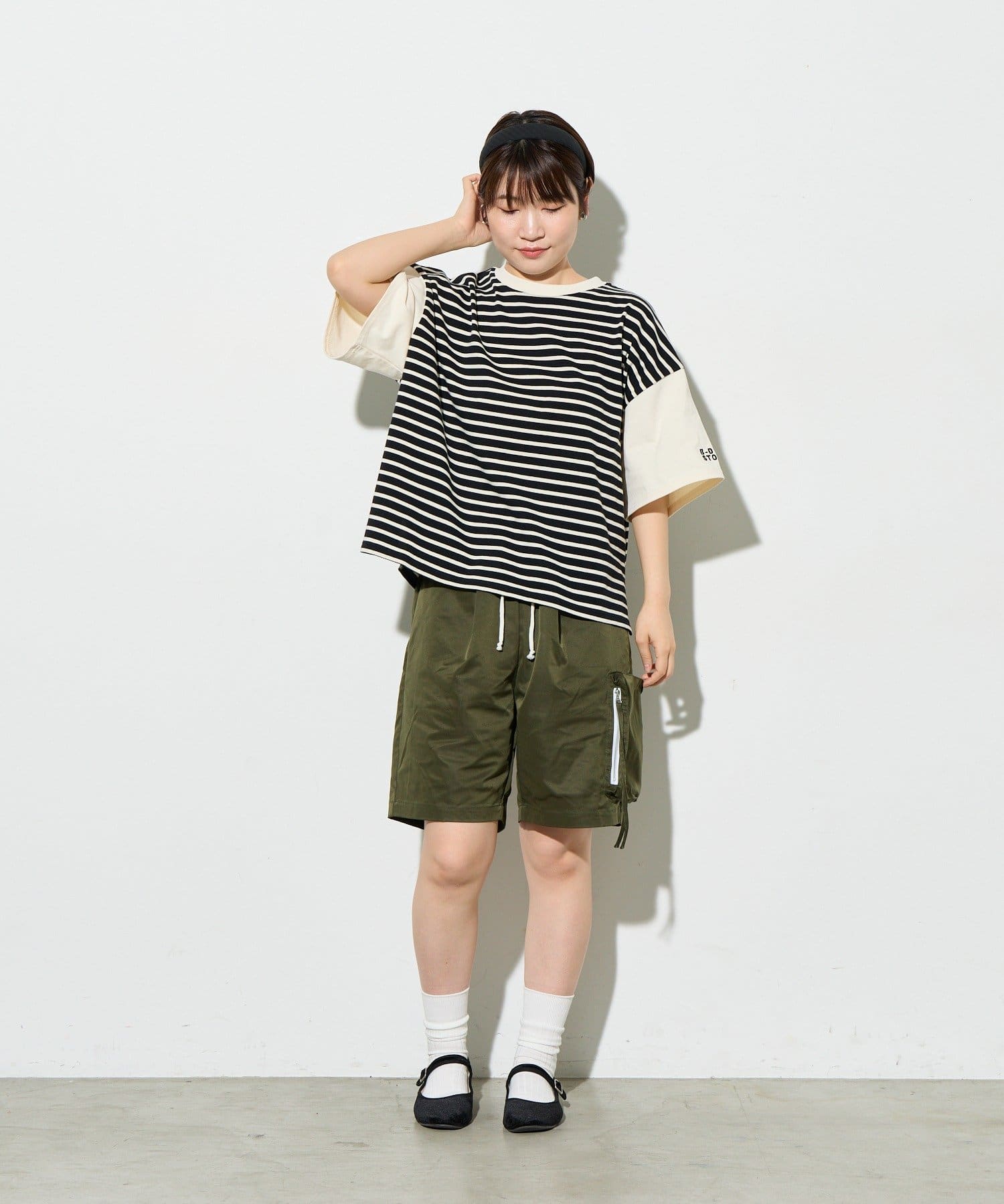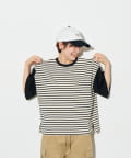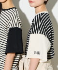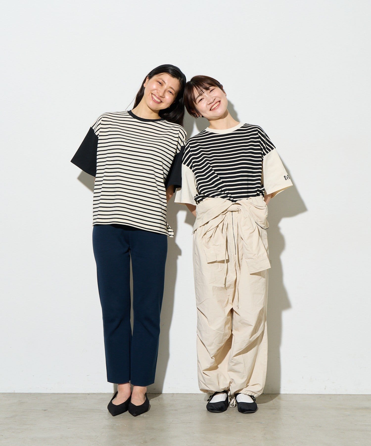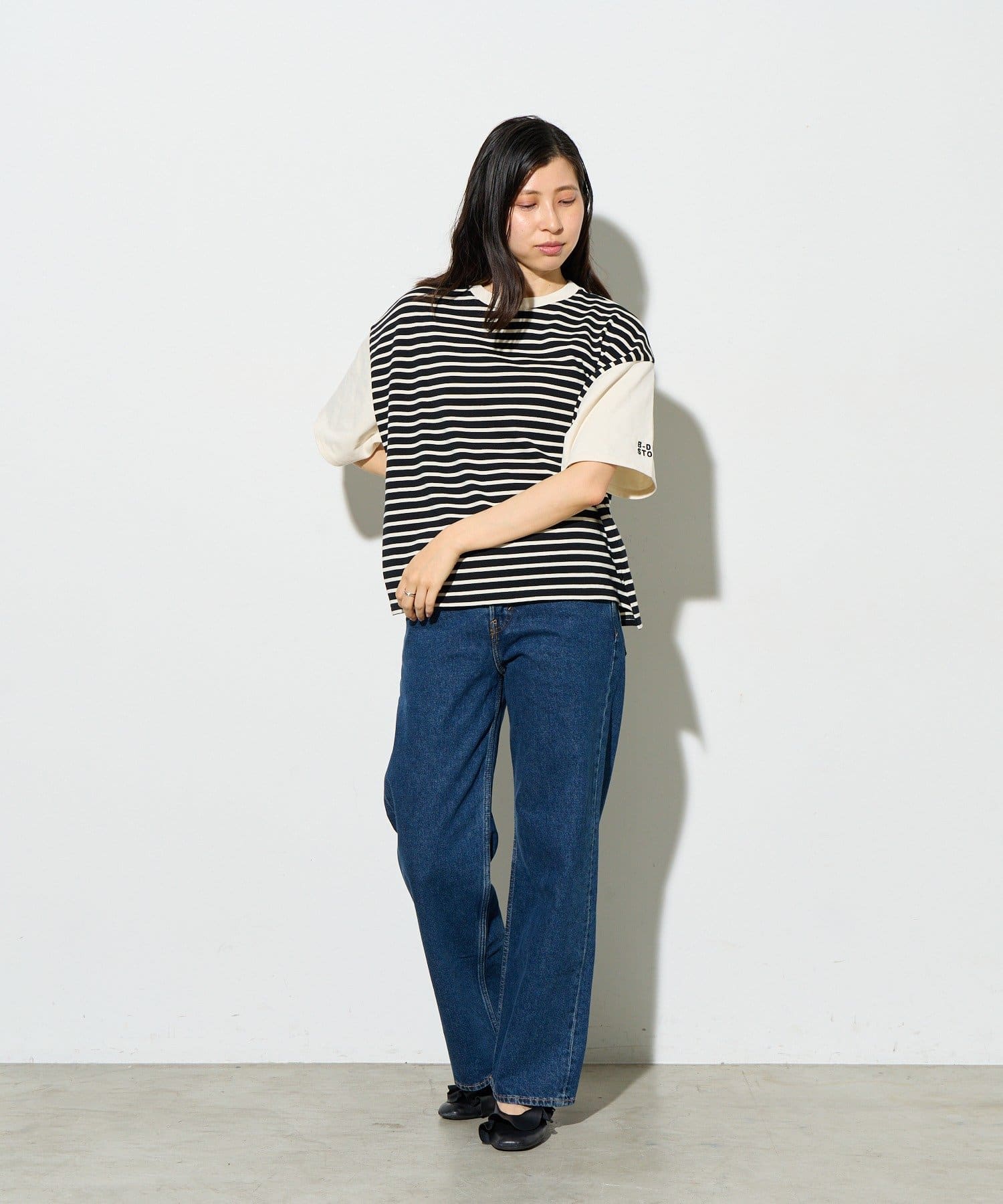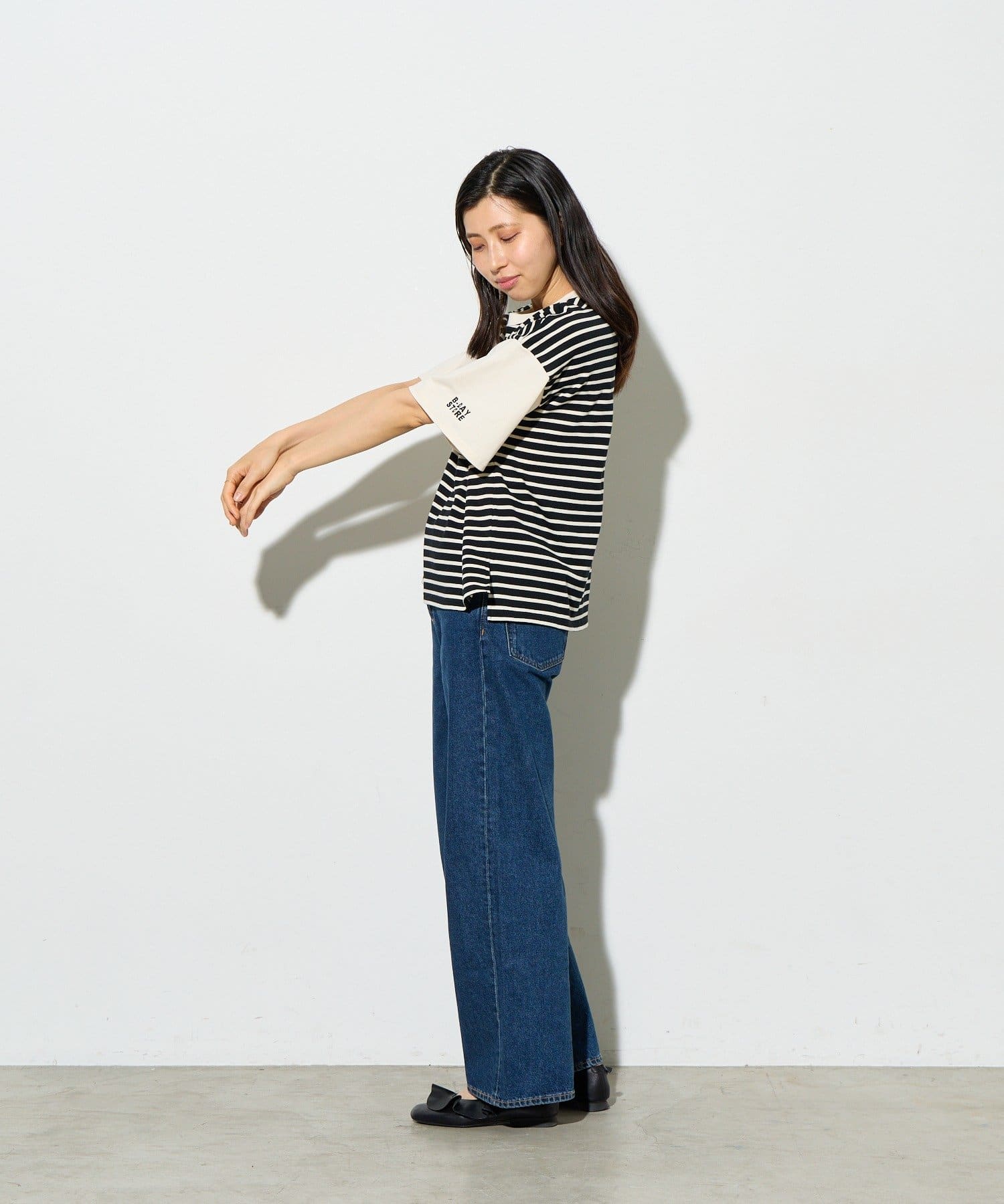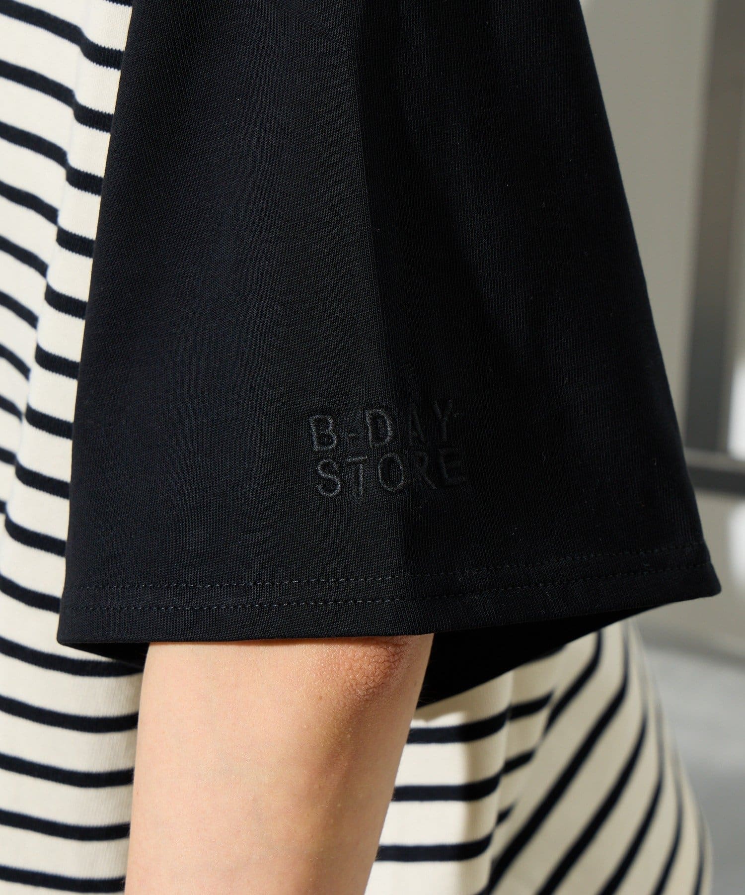袖部分を大胆に切り替えたスリーブデザインがポイントのボーダー配色のカットソー