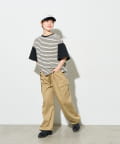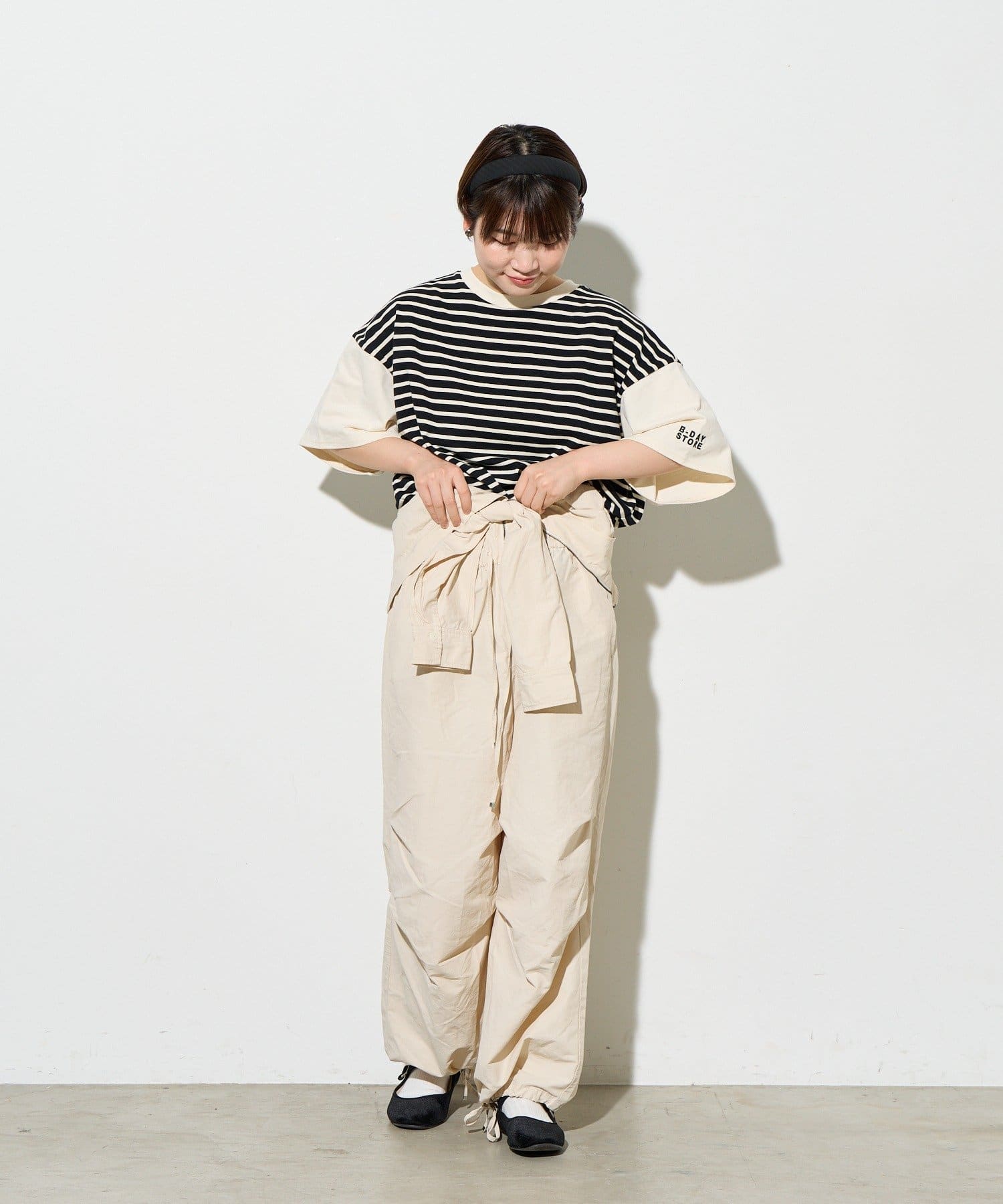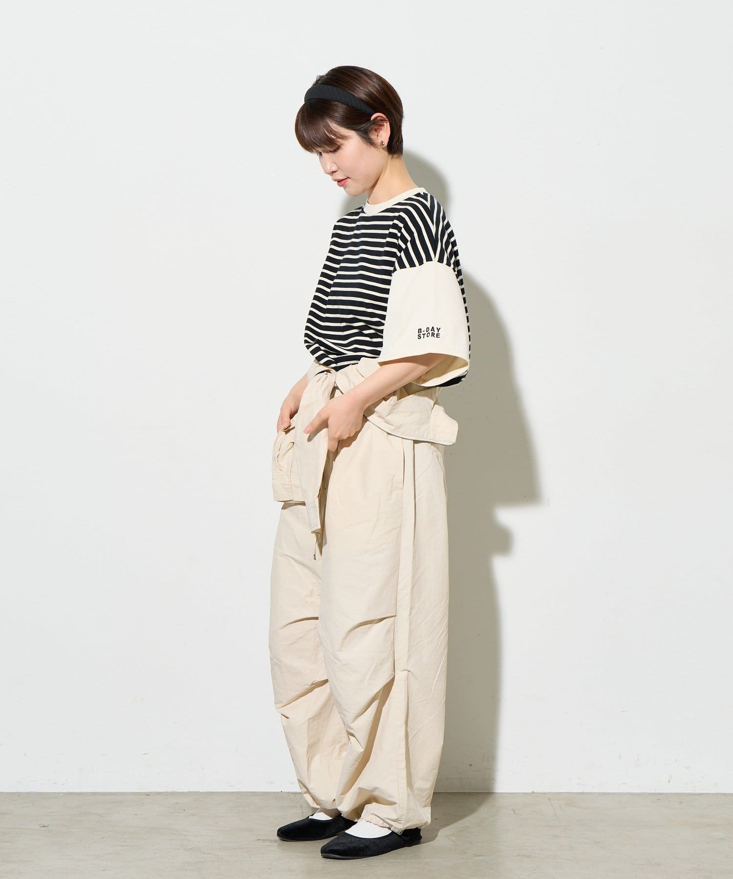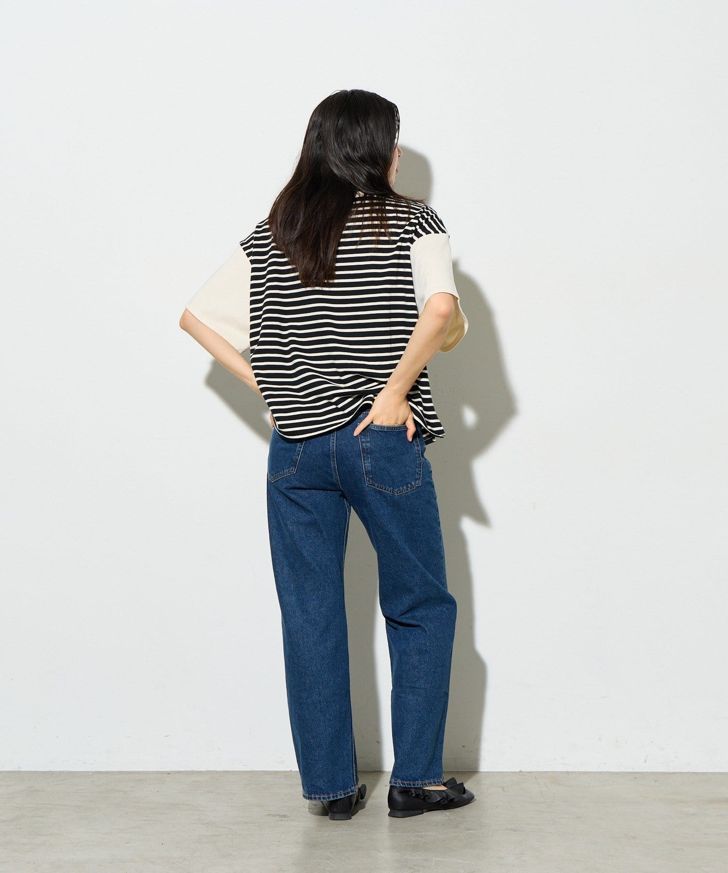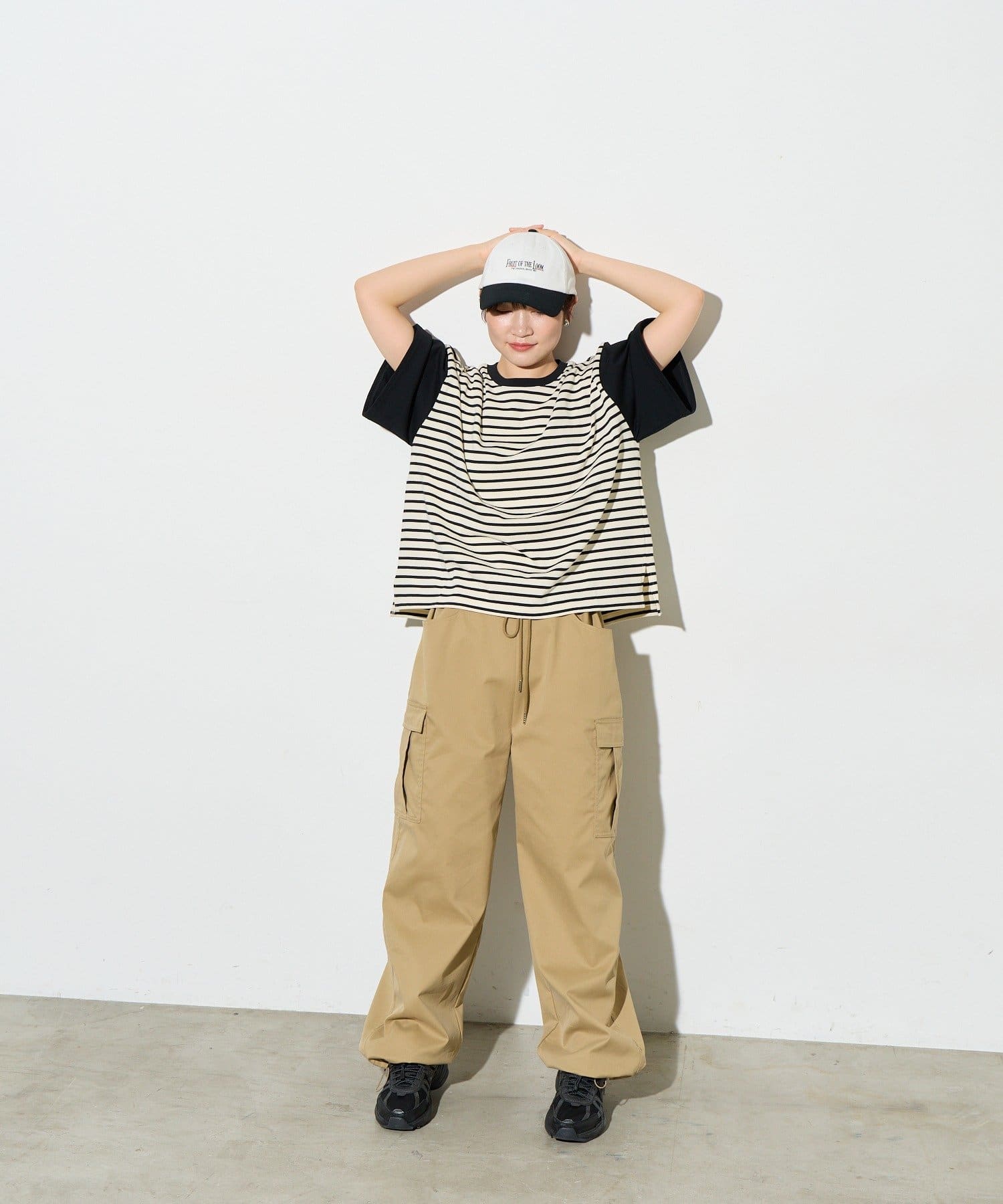 袖部分を大胆に切り替えたスリーブデザインがポイントのボーダー配色のカットソー