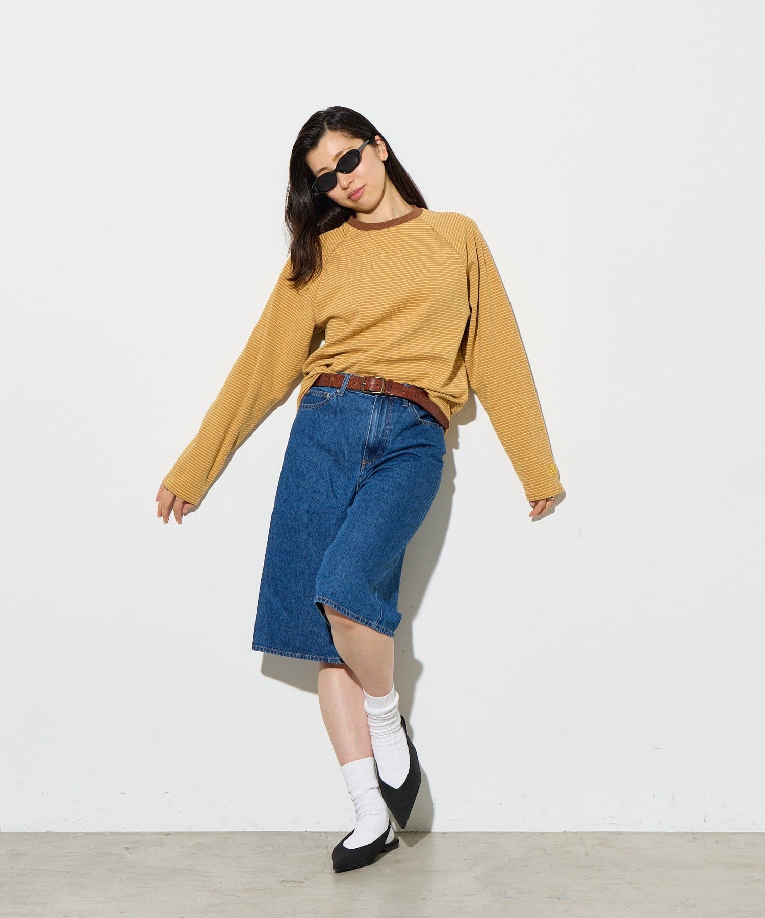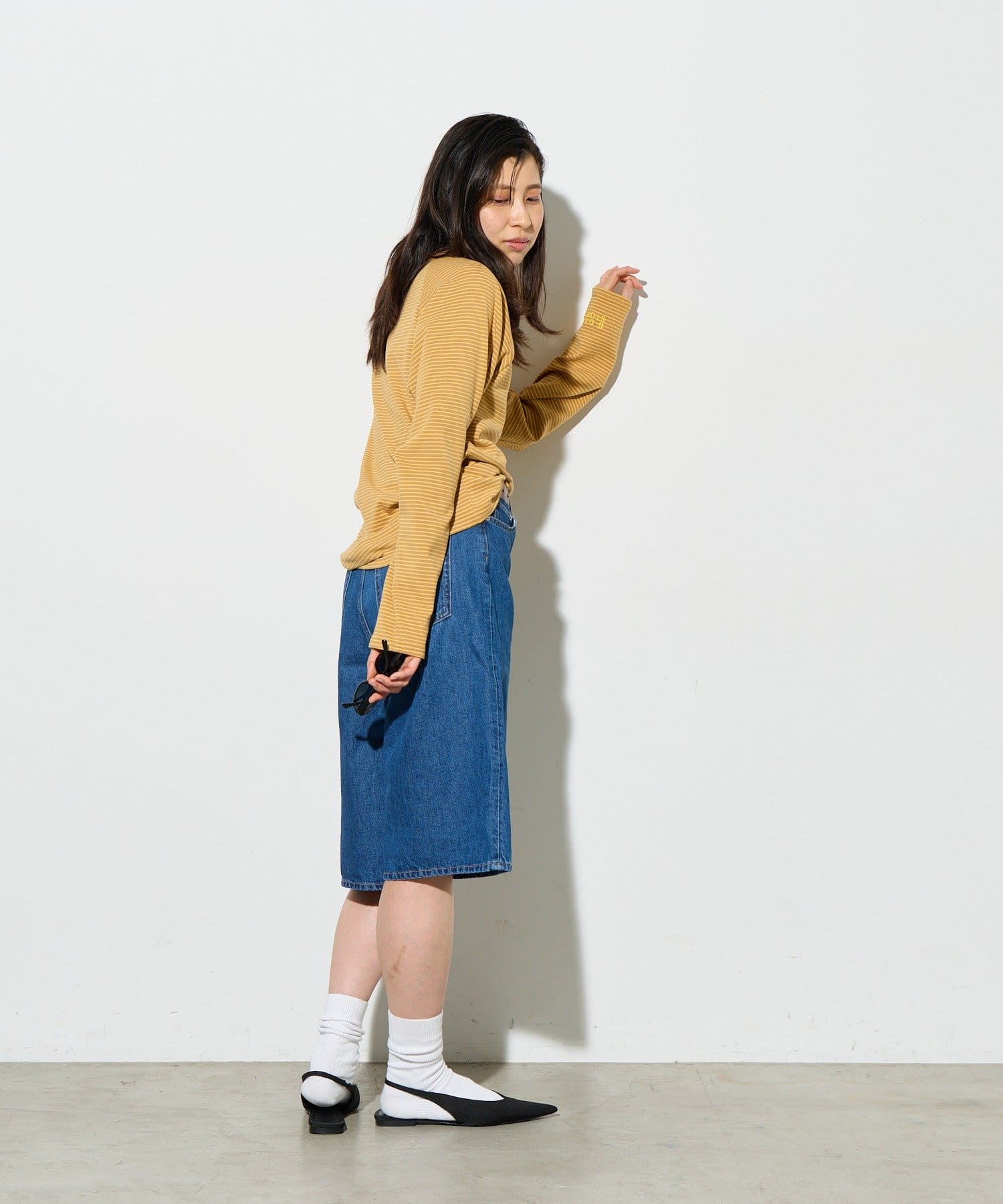 カジュアルなボーダー柄がスカートの甘さを抑え、こなれ感のあるミックススタイルに仕上がります。