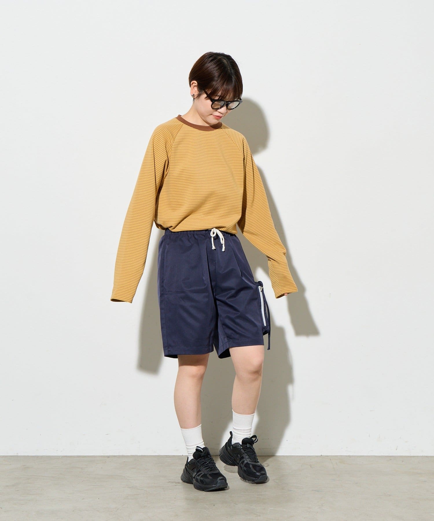 肩のラインを気にせず着用できるラグランスリーブは、自然な落ち感を生み出し、リラックスしたこなれた雰囲気を演出します。