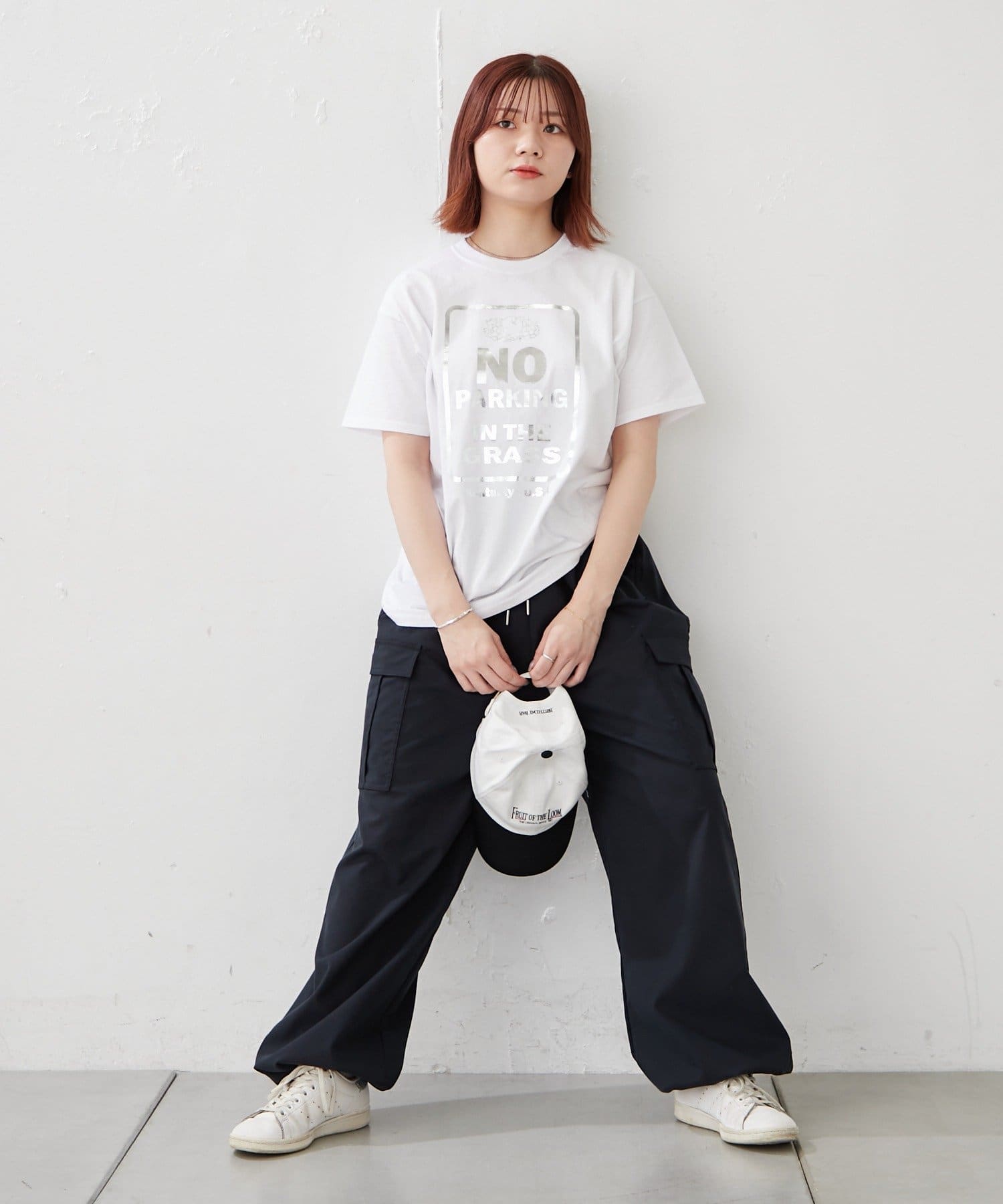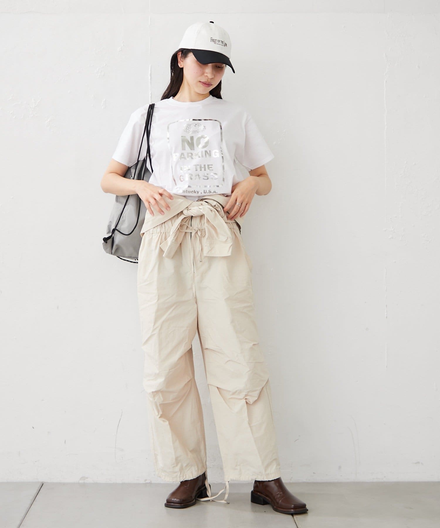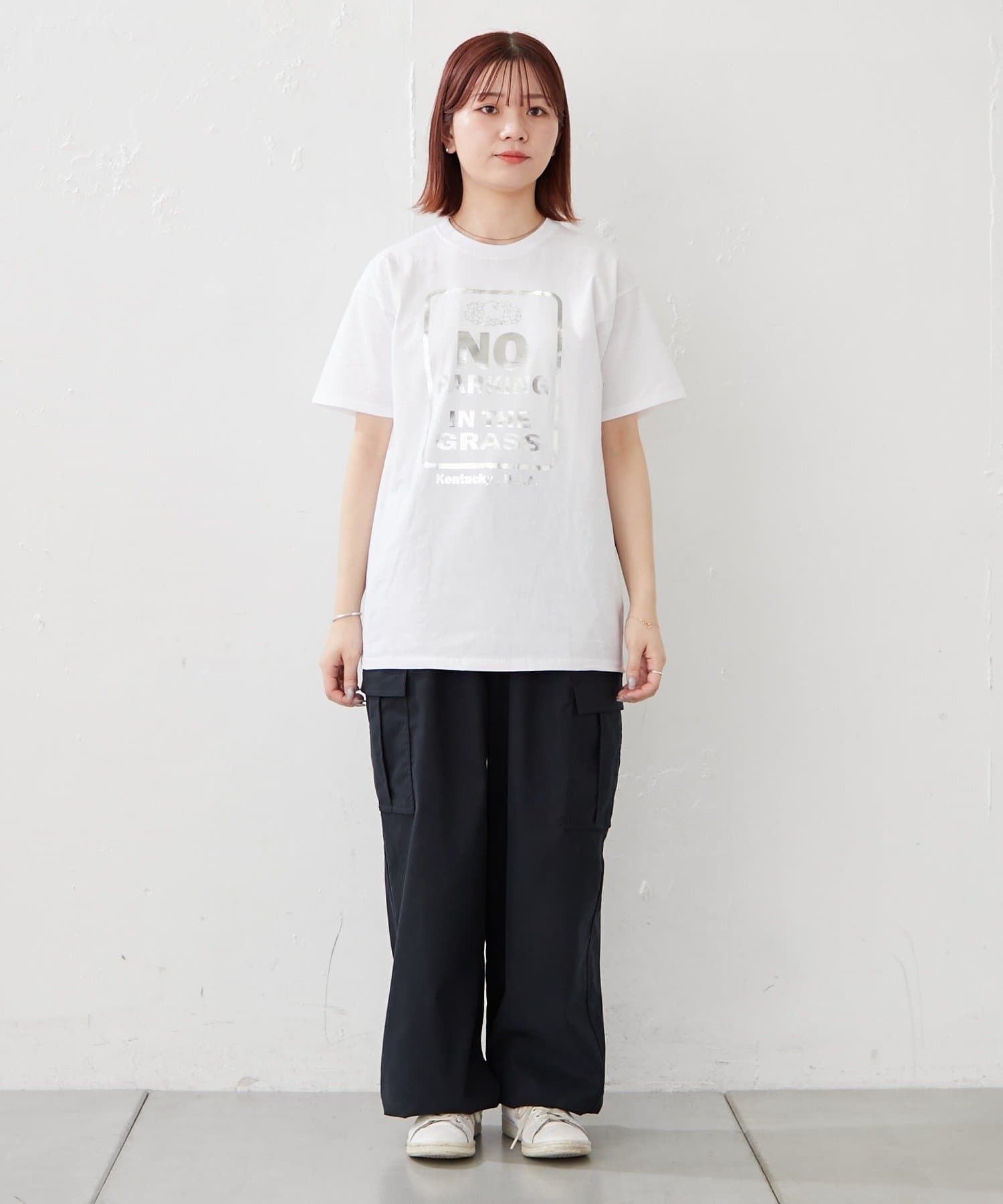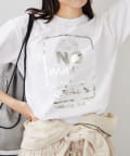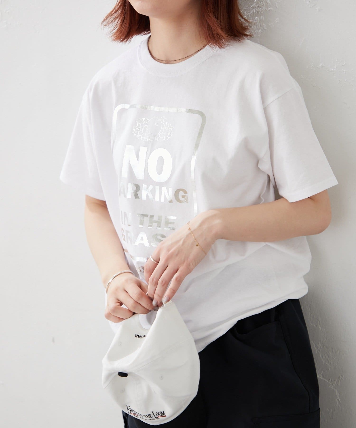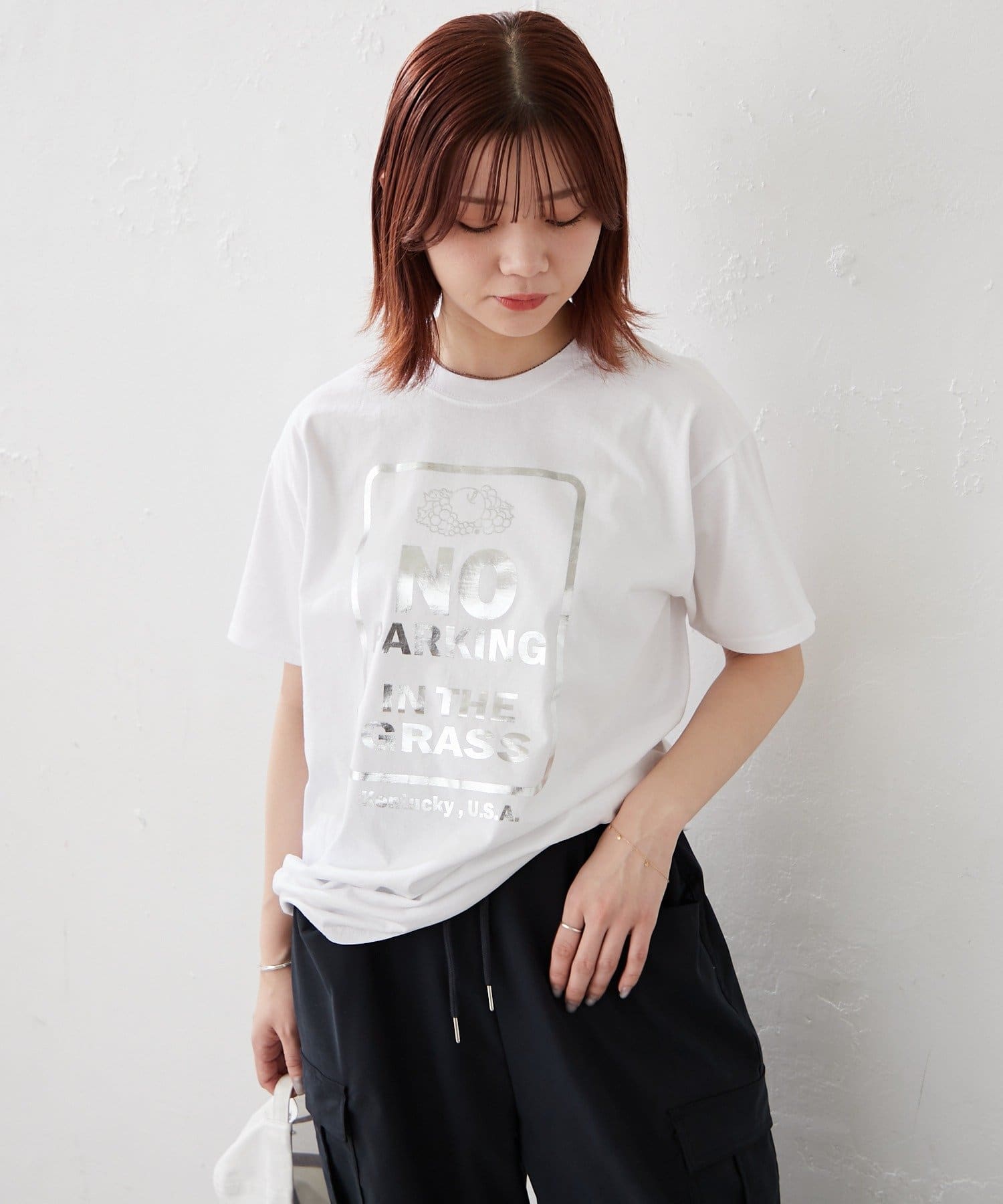 ジャケットやカーディガンのインナーとして着用すれば、胸元のシルバープリントがさりげないポイントになり、こなれ感を演出できます。