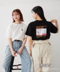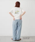コーディネートの主役になるバックプリントデザインなので、シンプルなデニムやチノパンと合わせるだけで様になります。フレアスカートやプリーツスカートと合わせて、カジュアルダウンしたフェミニンミックススタイルを楽しむのもおすすめ。シャツやカーディガンを羽織って、プリントをちらりと覗かせる着こなしもお洒落です。