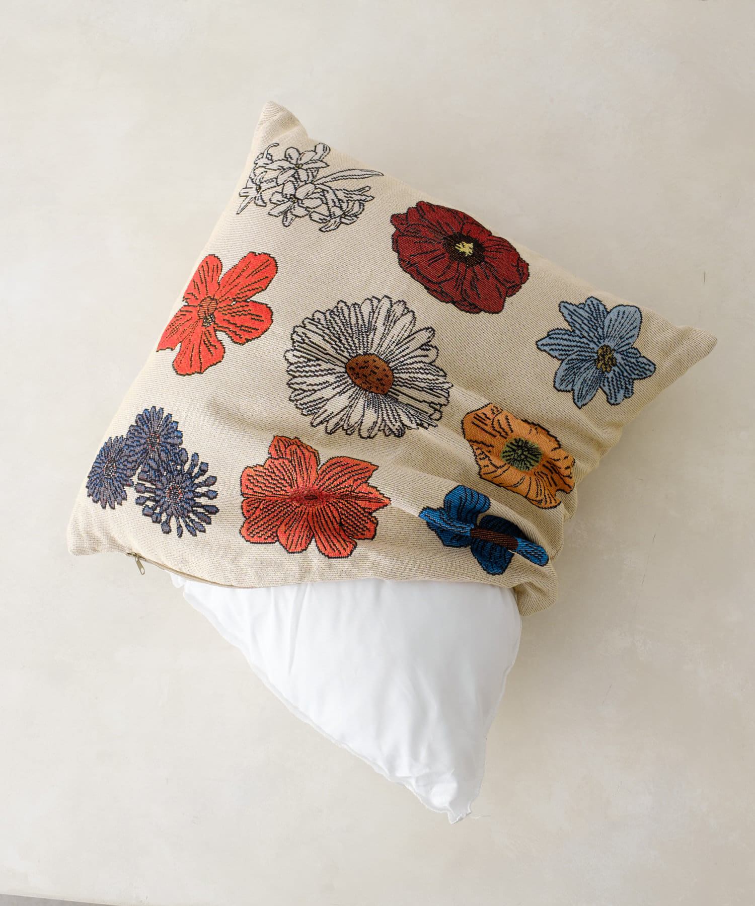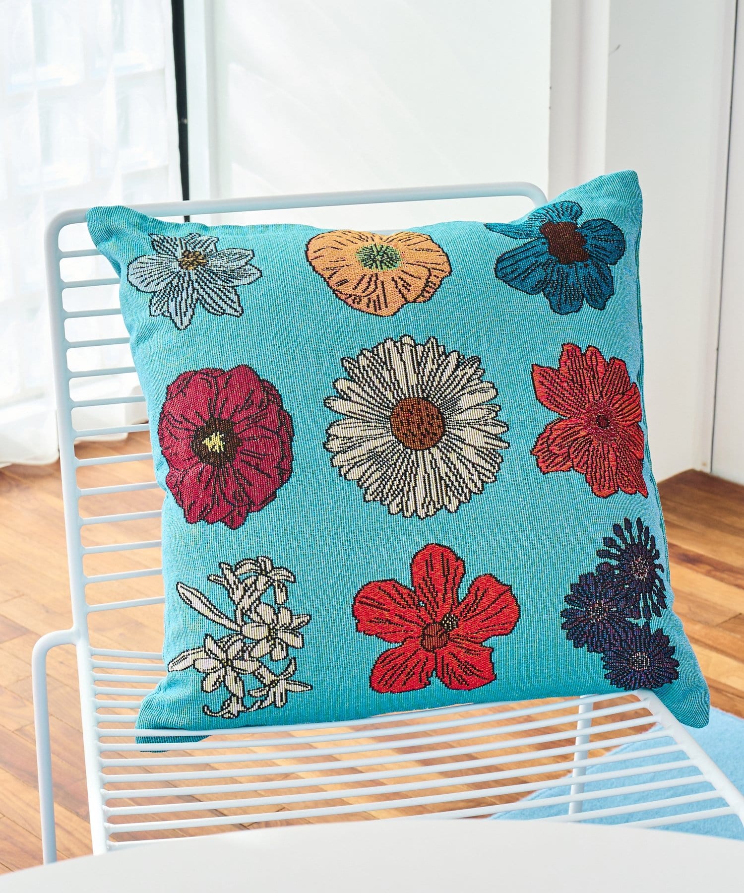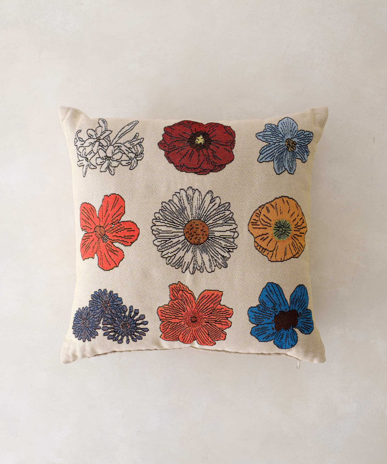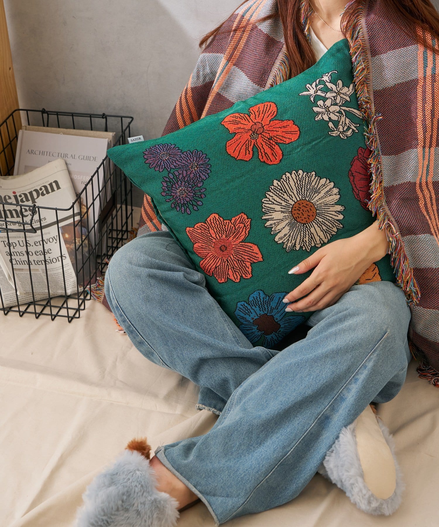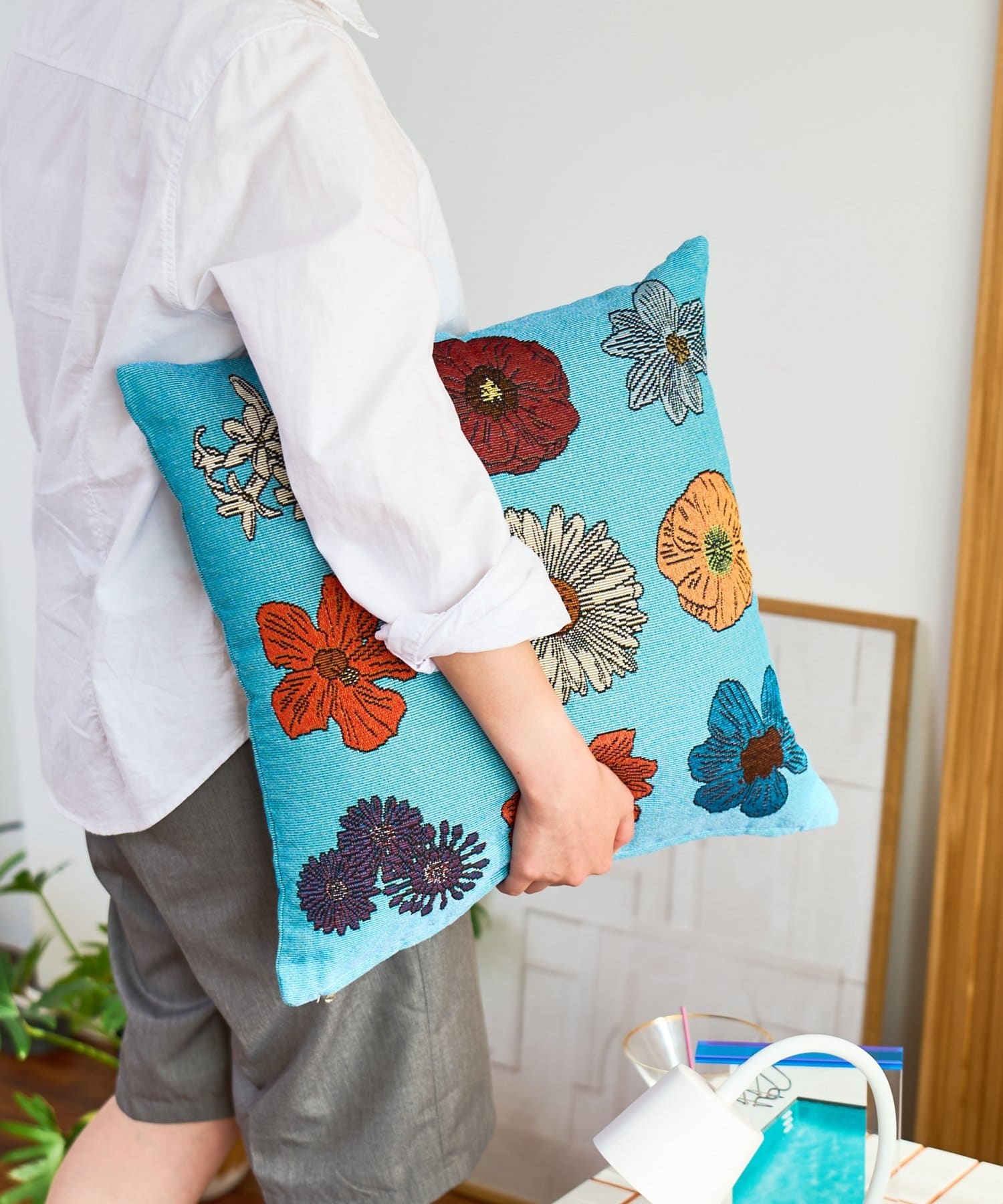 9種のお花をジャガードで表現した存在感抜群のクッションカバー。1点取り入れるだけでいつものソファやテーブル周りもたちまち華やかに。お花が好きな方、生花を飾りたいけどハードルが高いという方におすすめです。