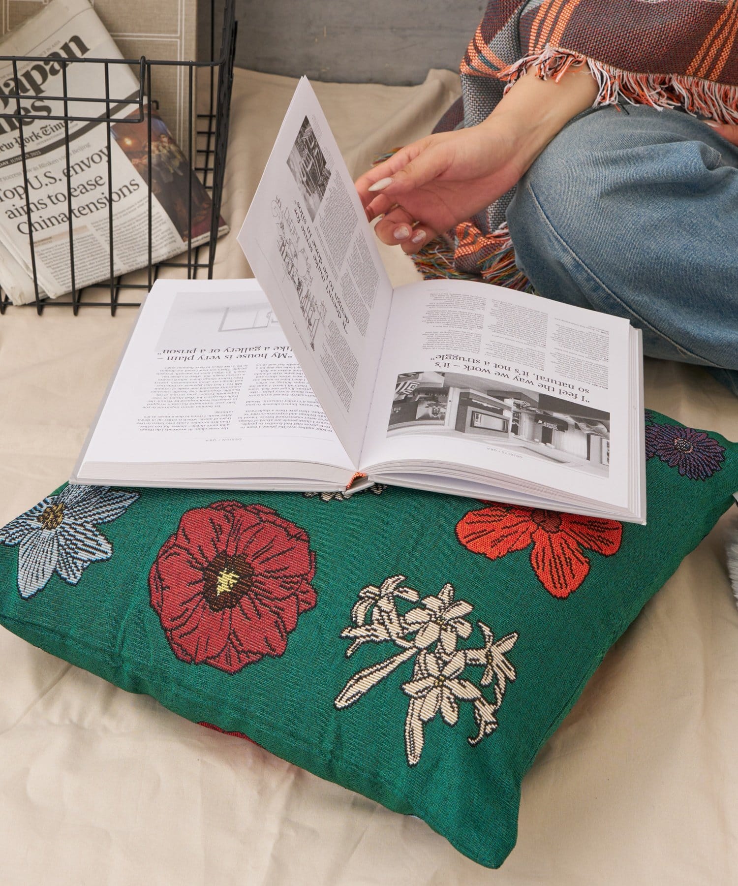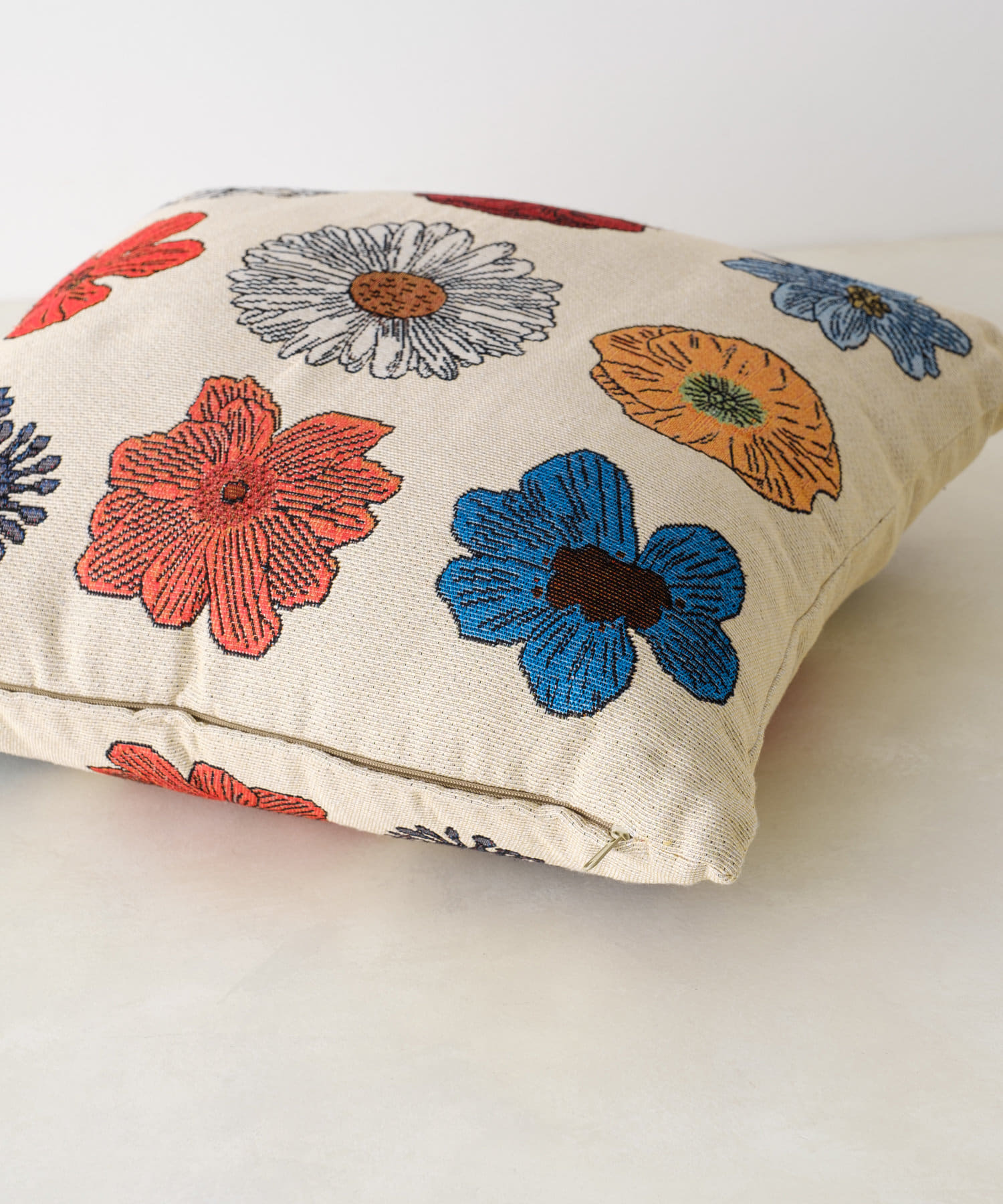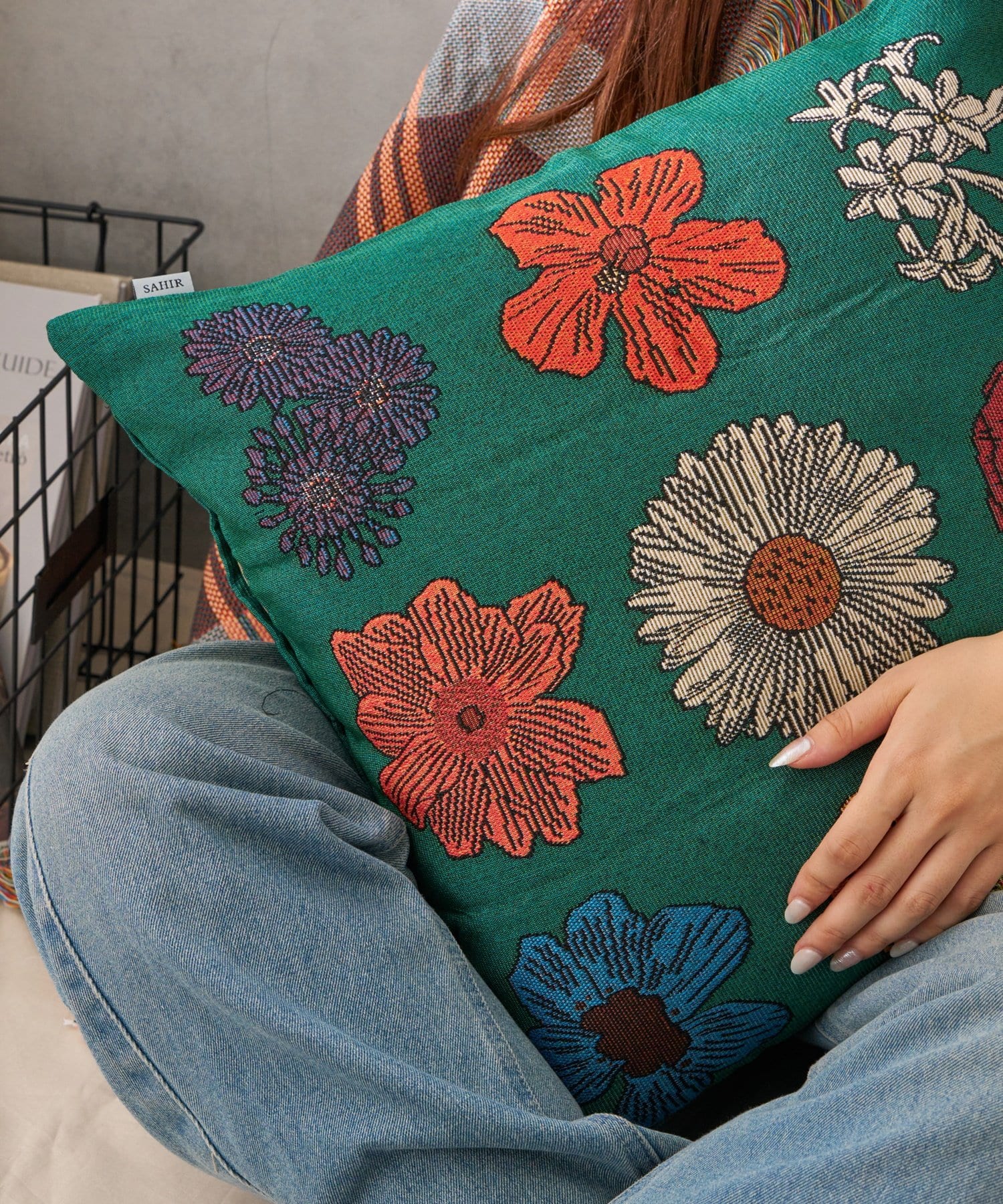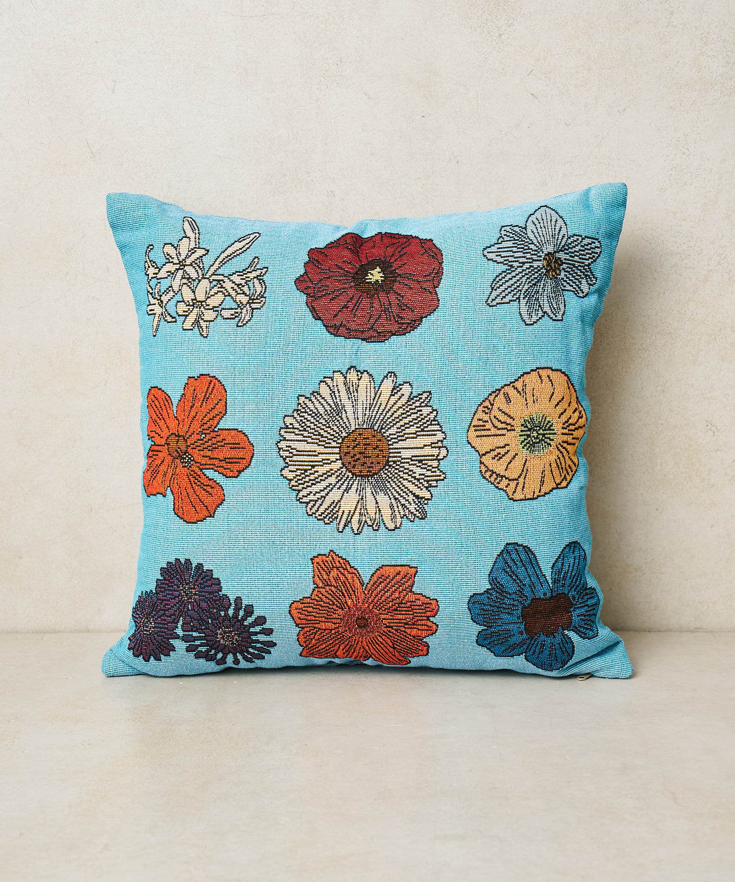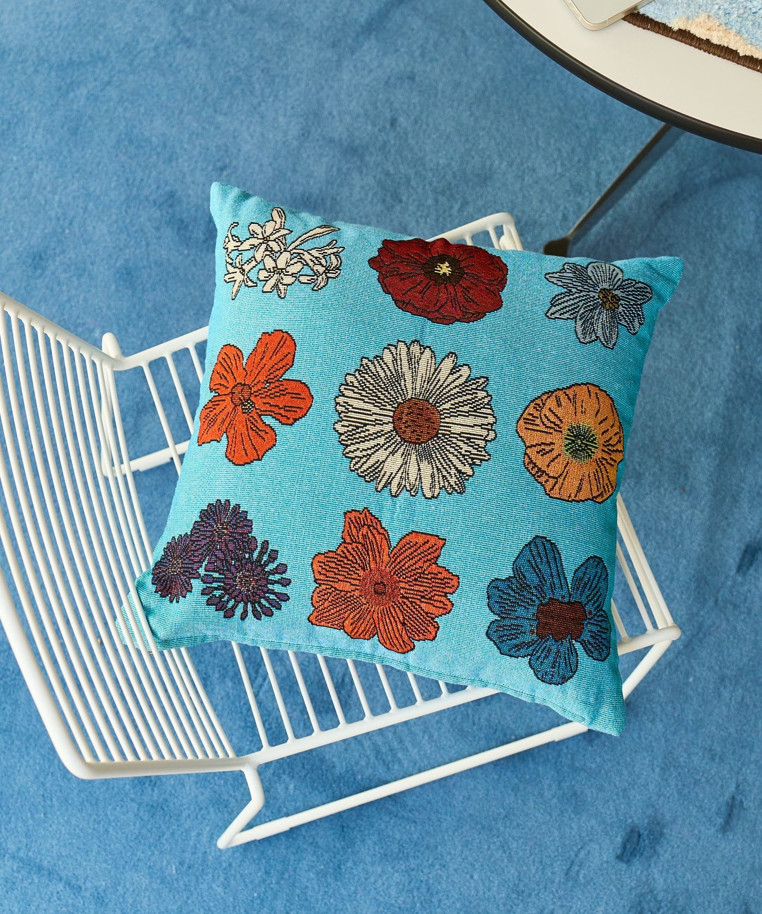 9種のお花をジャガードで表現した存在感抜群のクッションカバー。1点取り入れるだけでいつものソファやテーブル周りもたちまち華やかに。お花が好きな方、生花を飾りたいけどハードルが高いという方におすすめです。