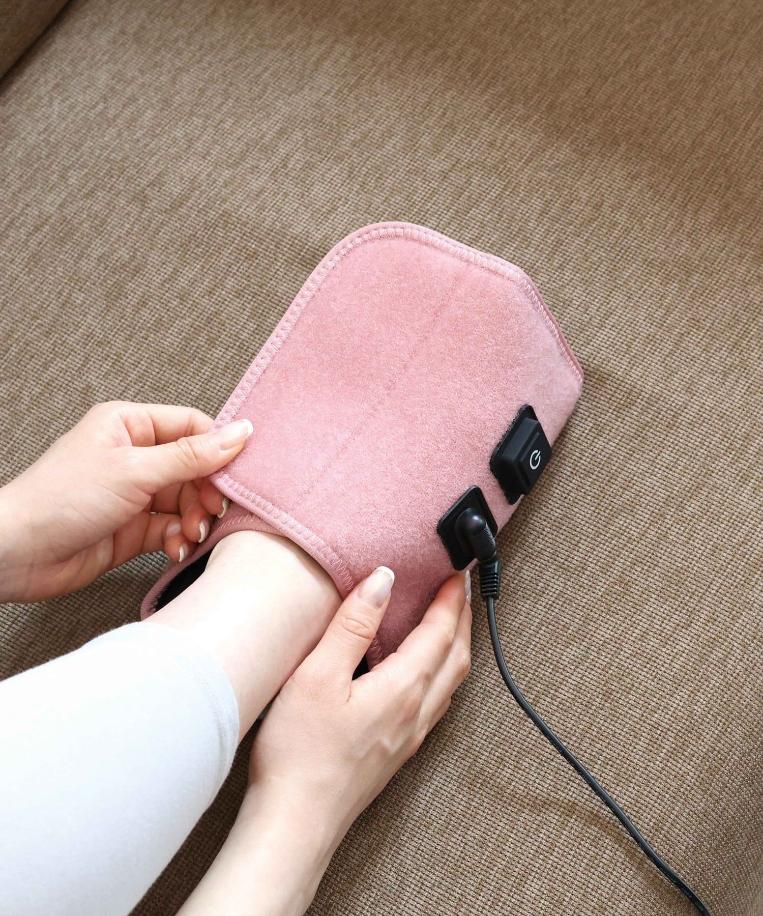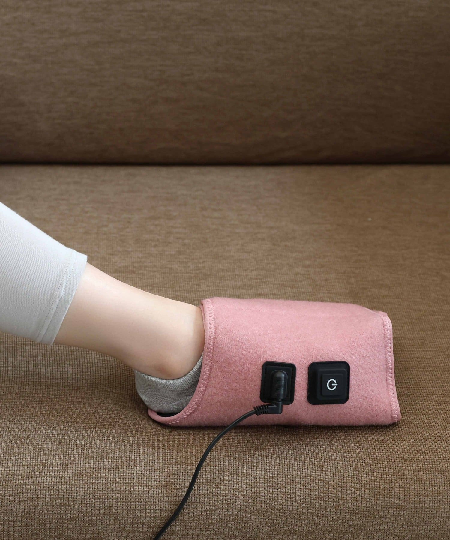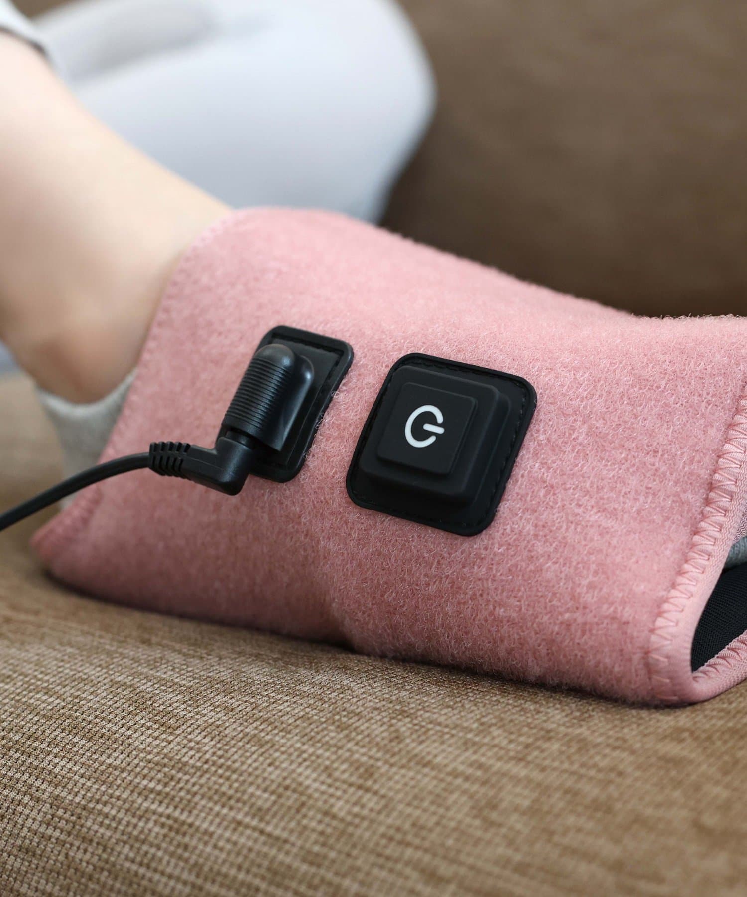 使い方も簡単、面ファスナーなので足に巻くだけの簡単装着。ボタン一つで電源オンオフ/強さ調整の操作が可能で気軽にお使いいただけます。