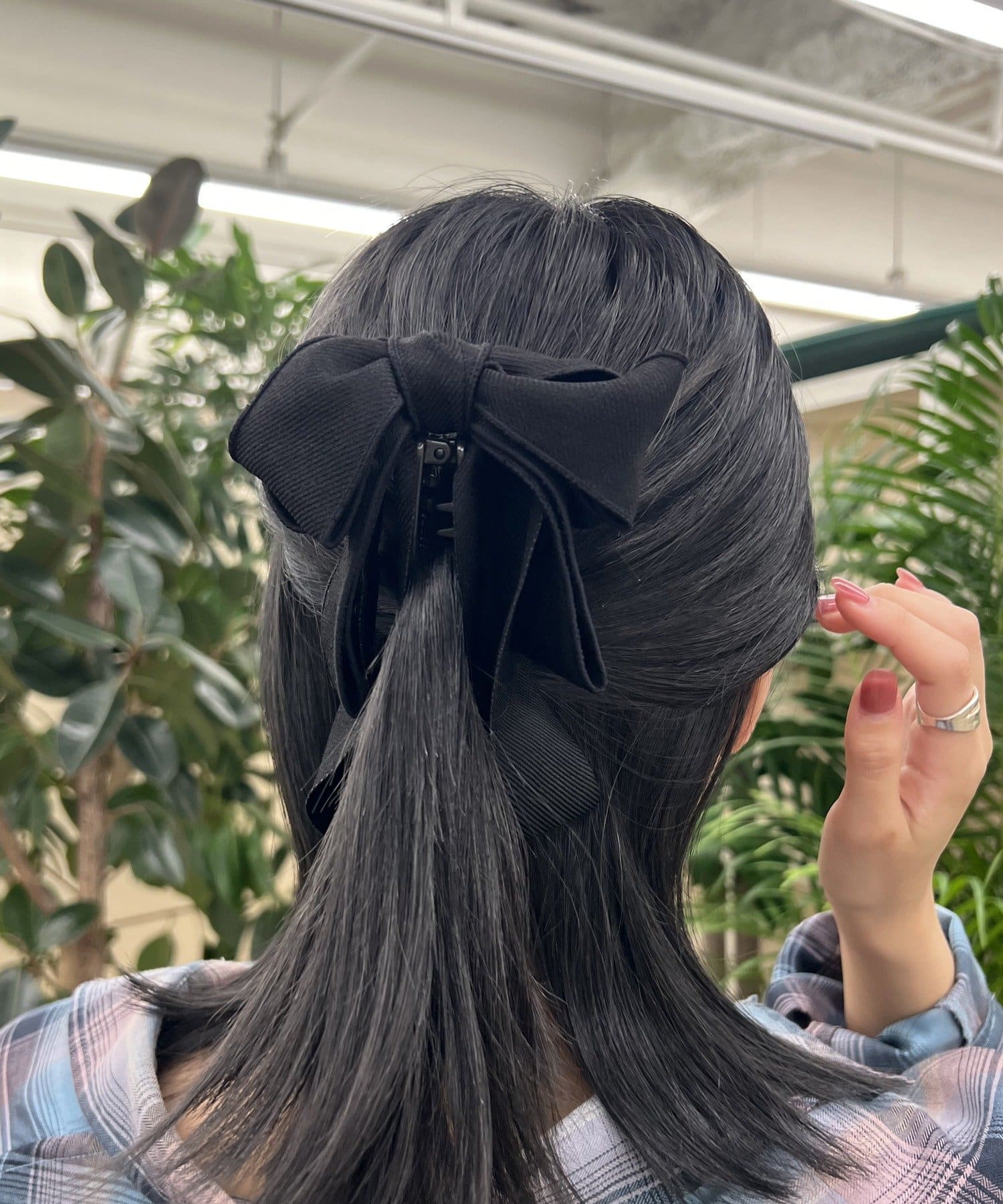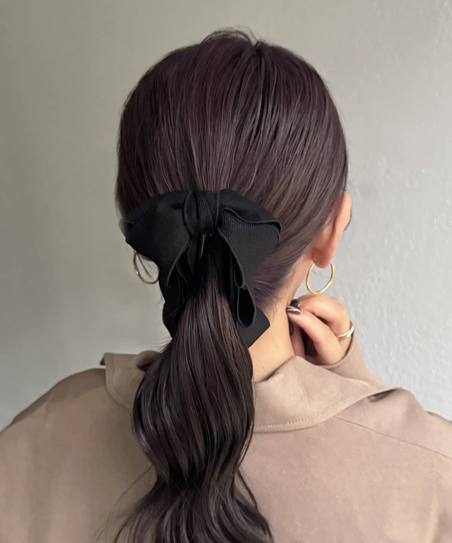 購入場所:パルクローゼット私の髪が多すぎたのか、ポニーテールでの使用初日に壊れました。大きな音と共に急に部品が割れてリボンが飛びました。怪我はなかったものの、仕事中だったので、恥ずかしかったです。色違いも購入済みなので、ハーフアップのとき使います。