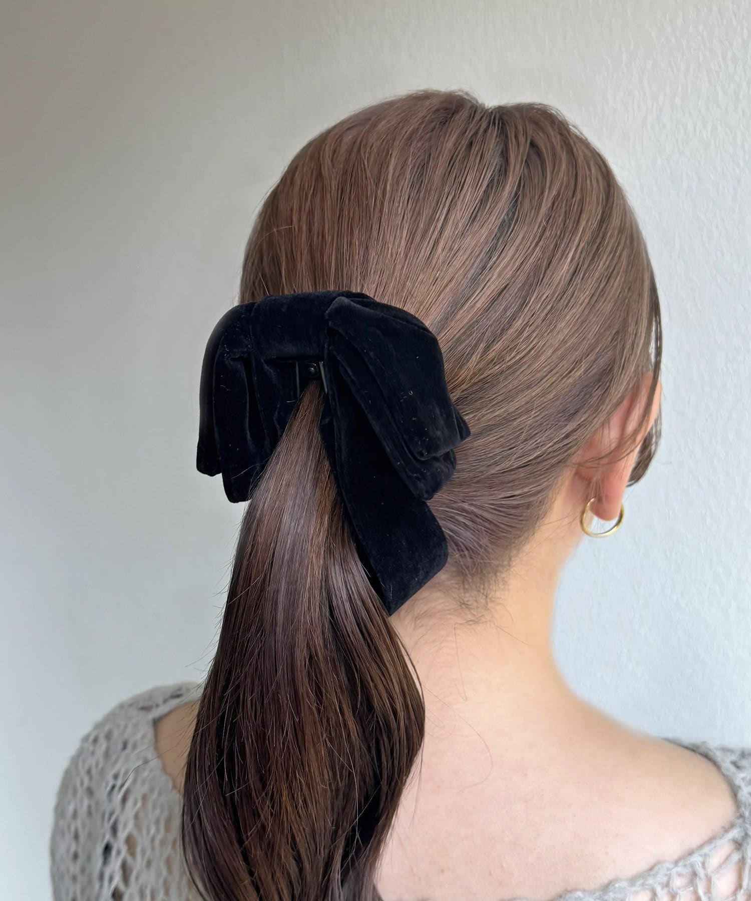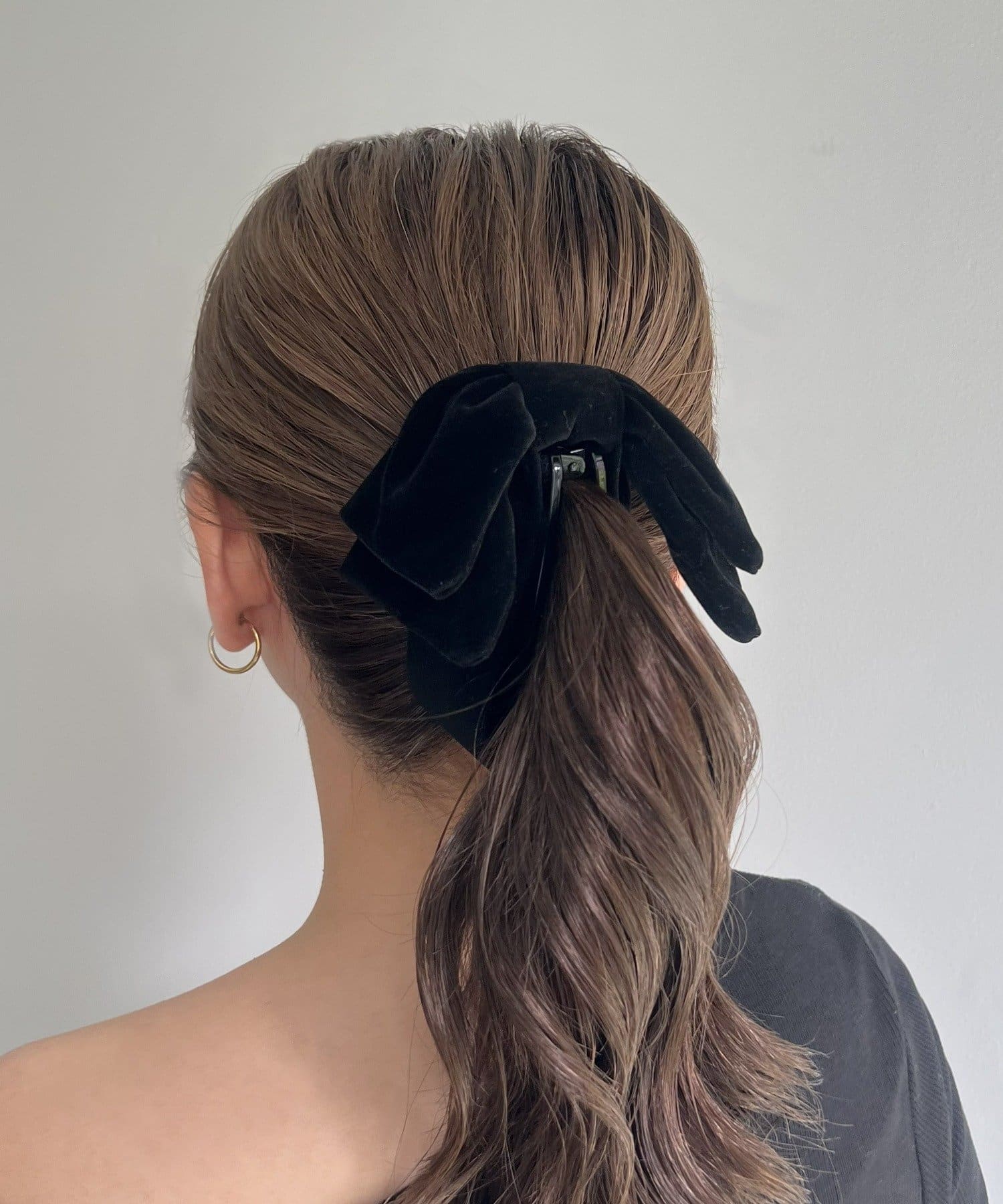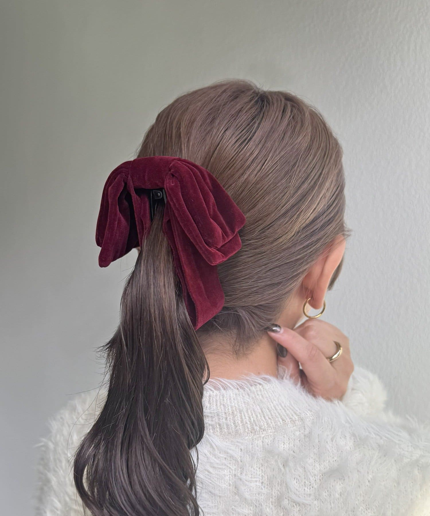 触り心地の良いベロア素材がヘアスタイルに高級感と季節感をプラスするバナナクリップ