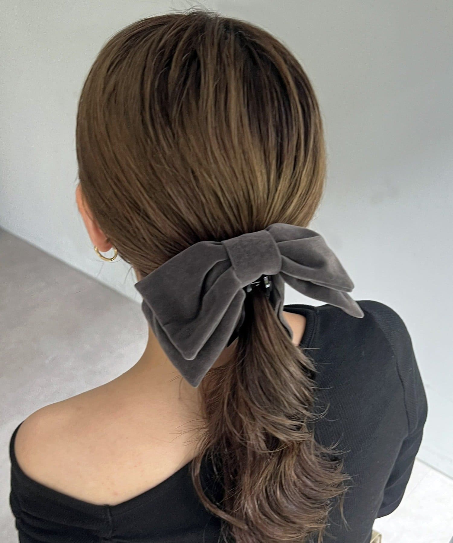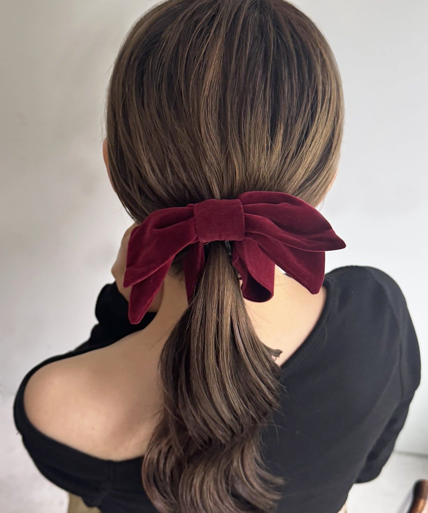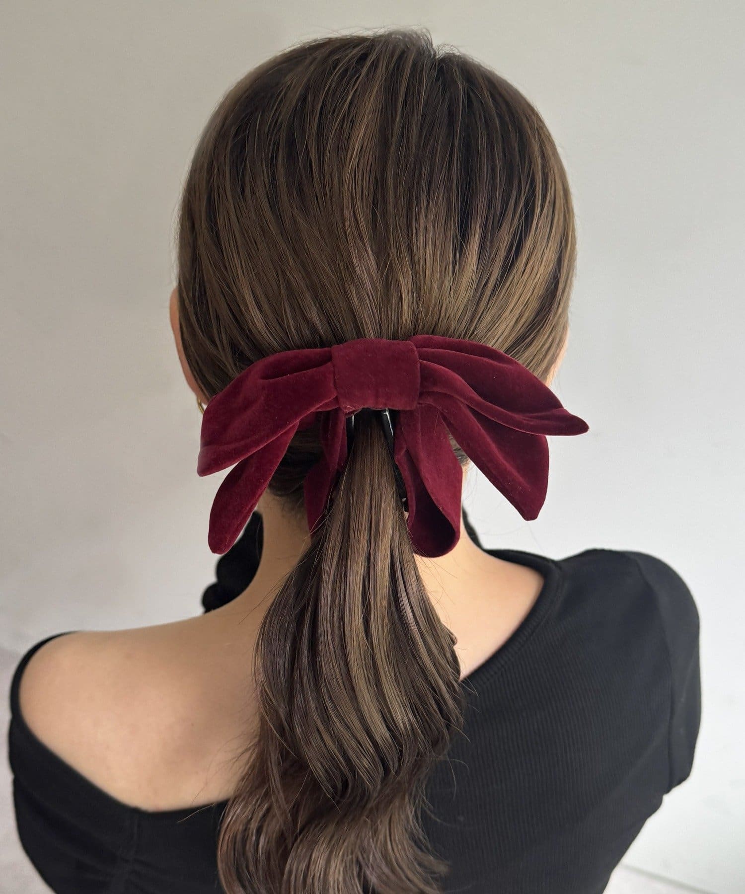 触り心地の良いベロア素材がヘアスタイルに高級感と季節感をプラスするバナナクリップ