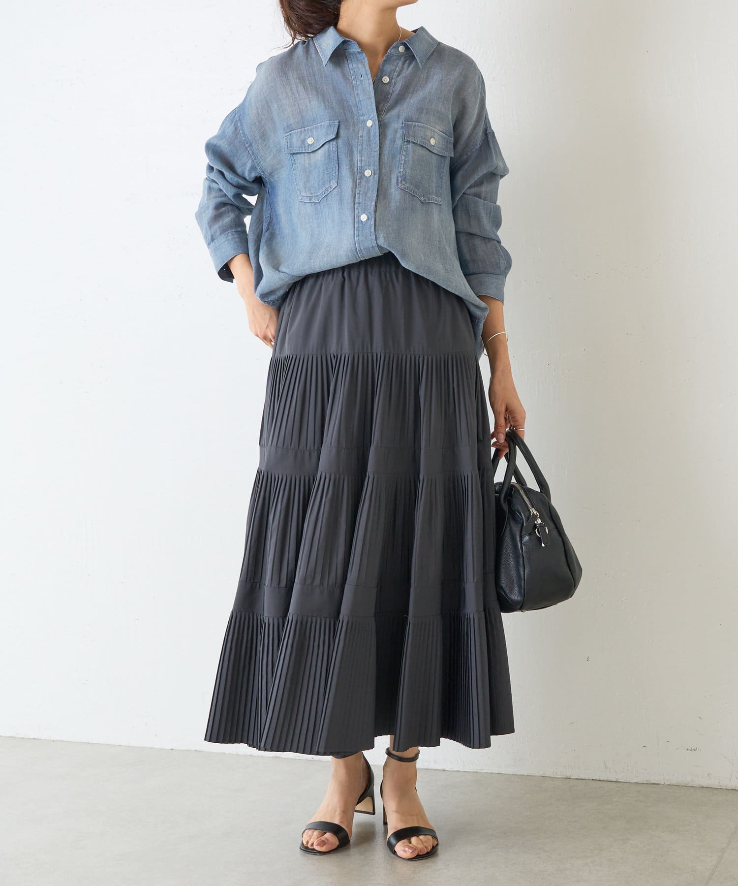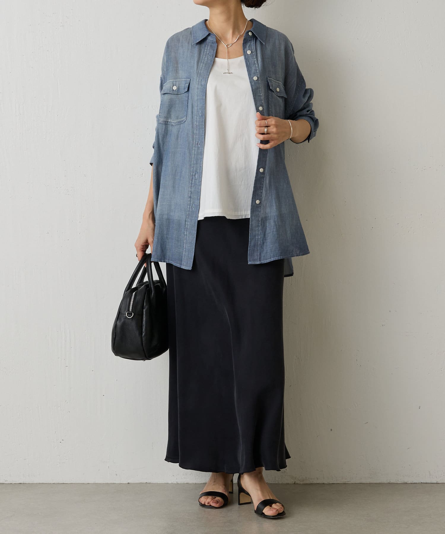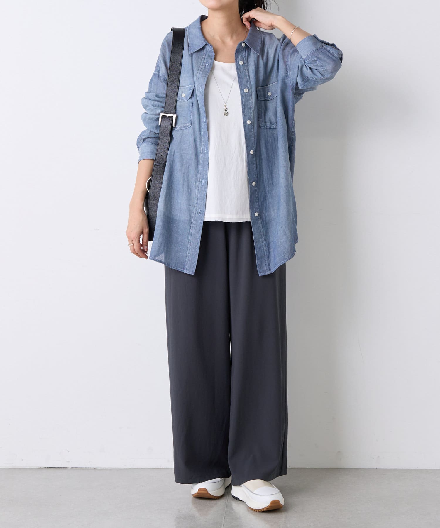 1枚でさらりと着るのはもちろん、羽織りとしても活躍。カットソーやニットとのレイヤードスタイルにもぴったりです。
