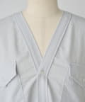 胸元の大きなポケットと前後のVネック仕様が1枚でこなれた印象を与えてくれます。