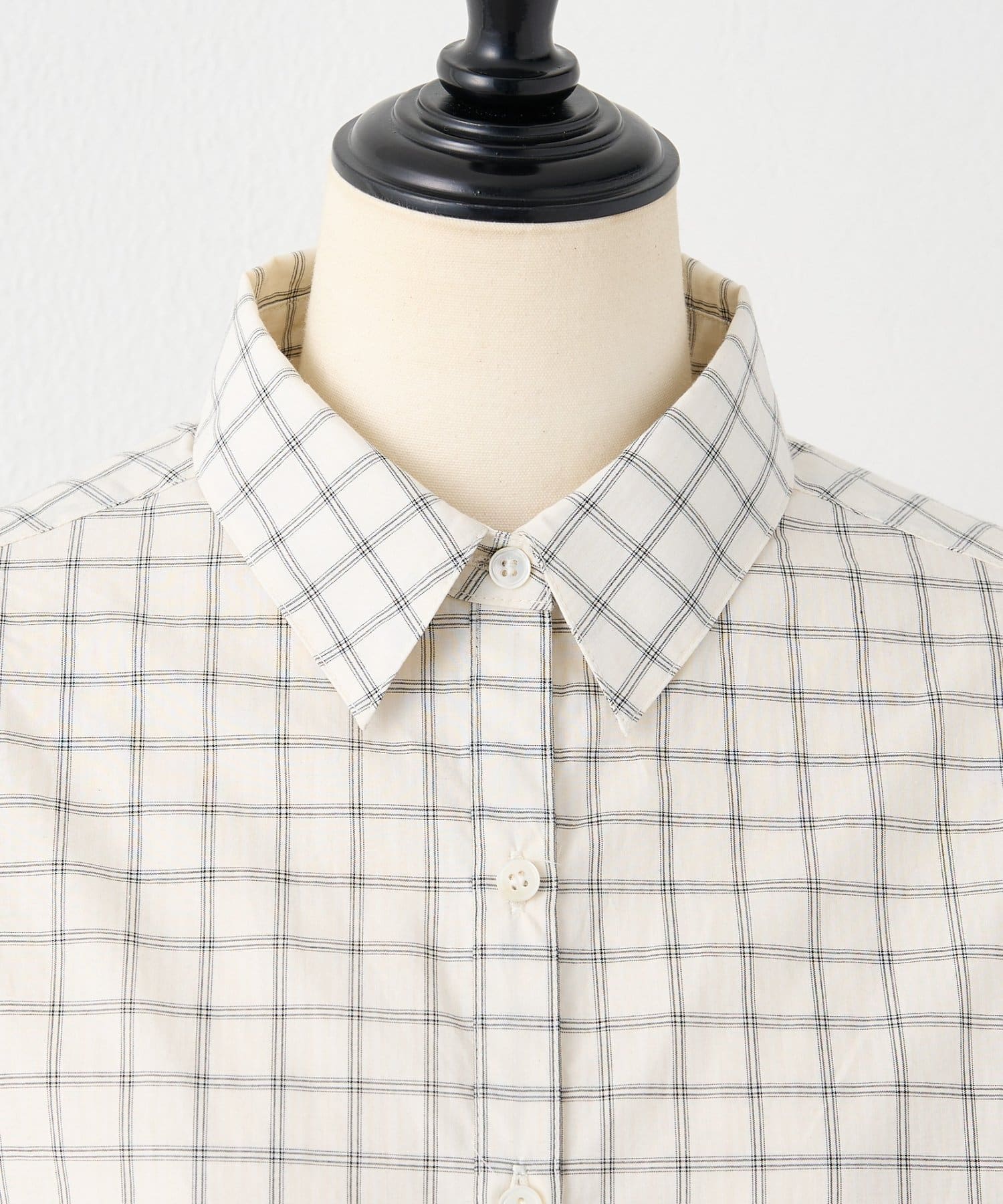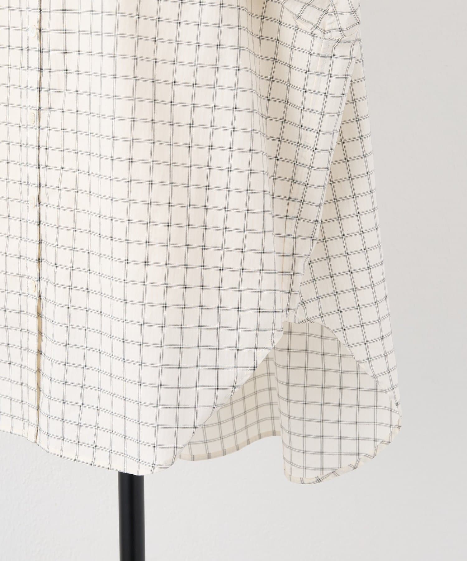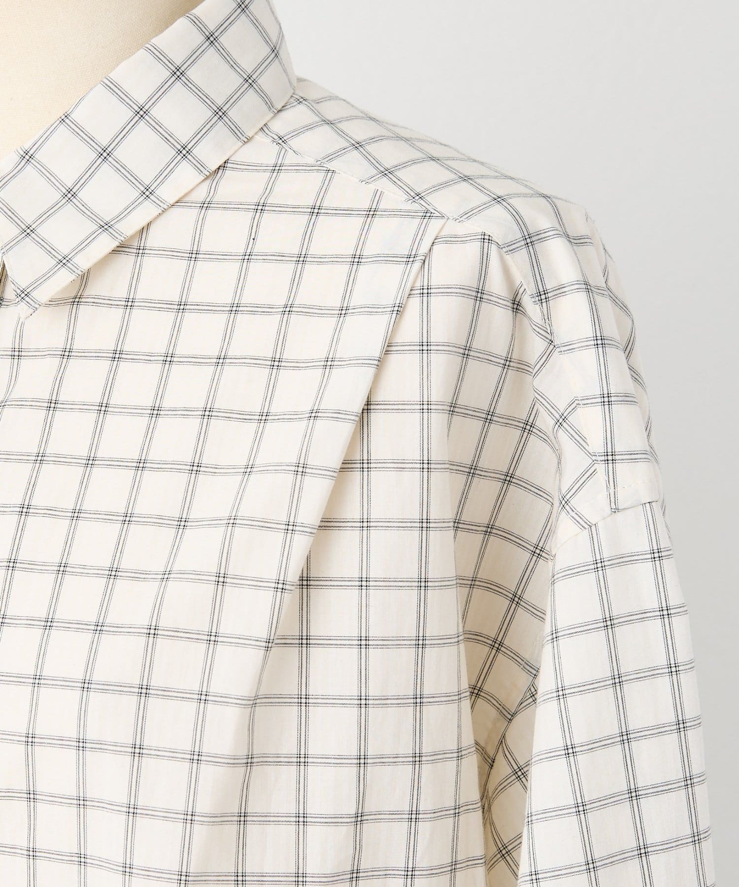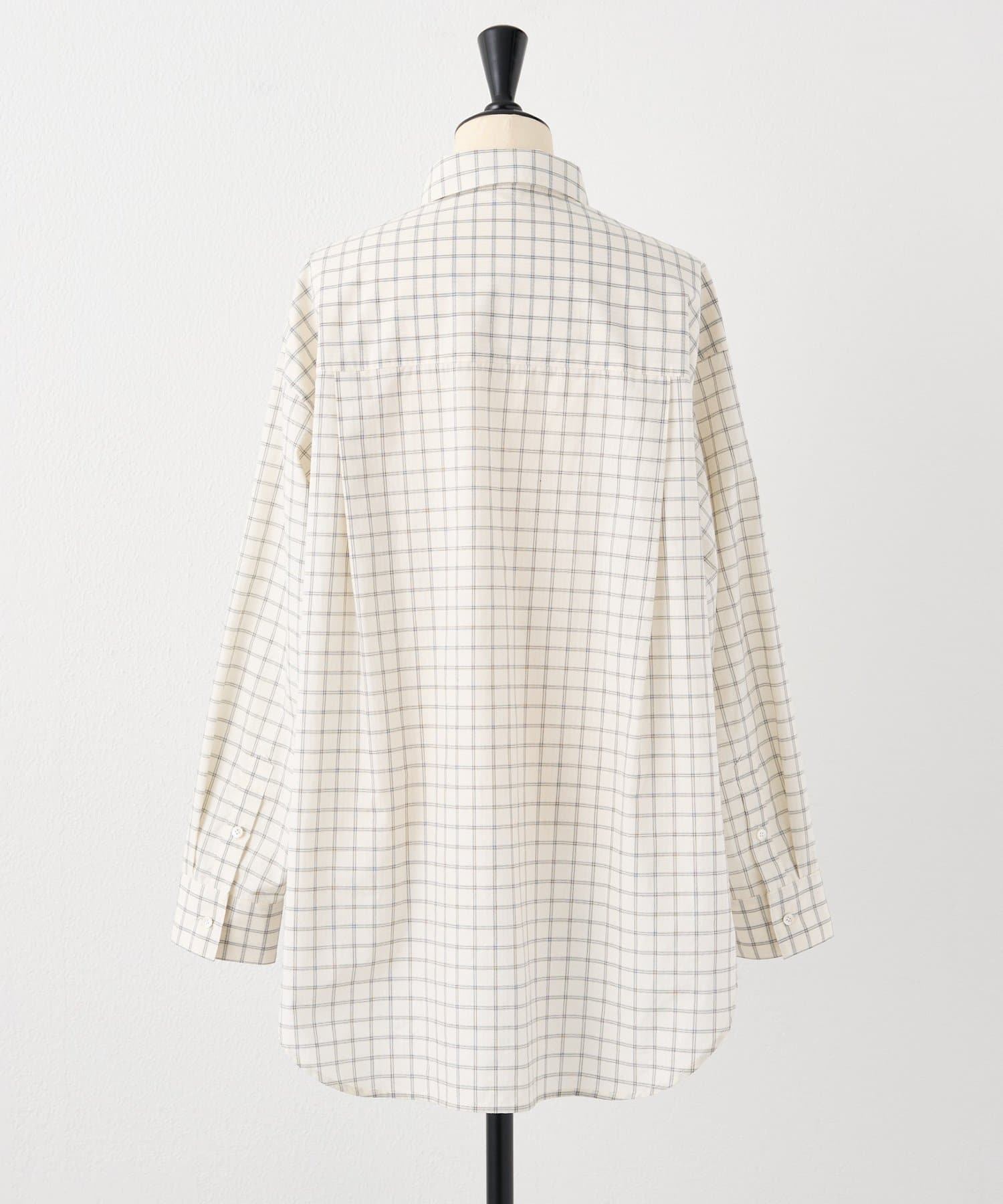 細く薄いラインのチェック柄がシンプルで合わせやすいオーバーシルエットのシャツ。