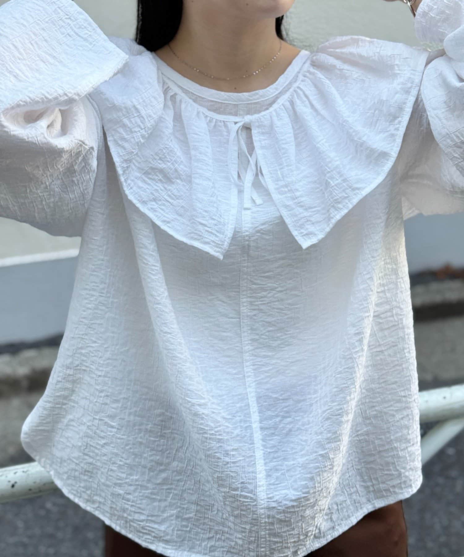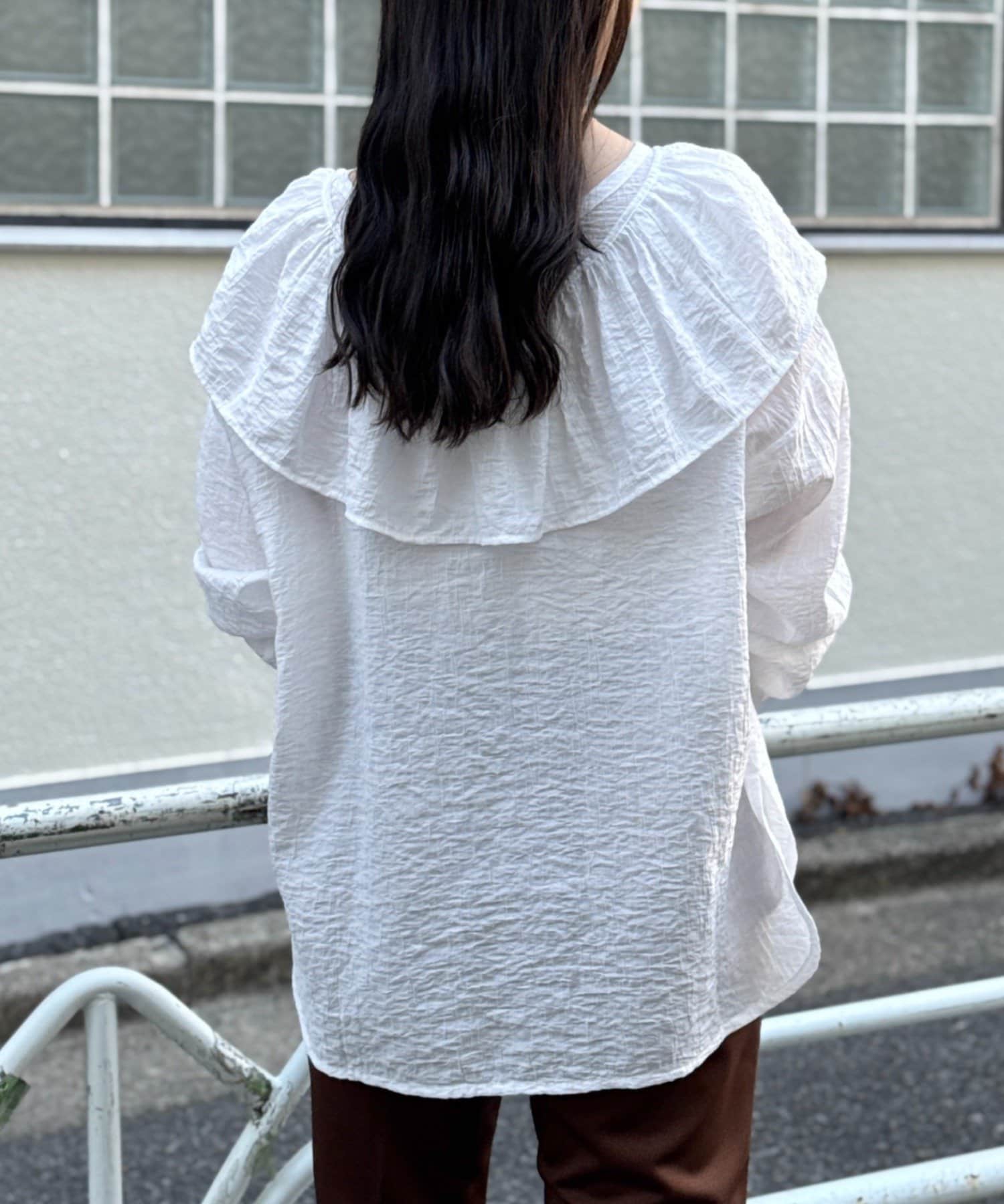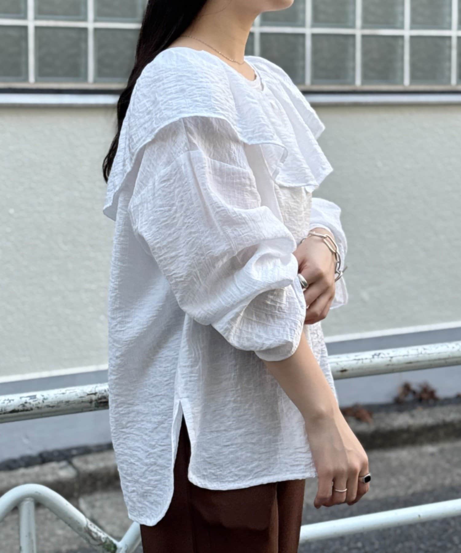 TOP > BEARDSLEY > レディース > トップス > シャツ/ブラウス(プルオーバー) > 1/24(土)11:00予約《FRIPIER》フリルエリツキシャツTee