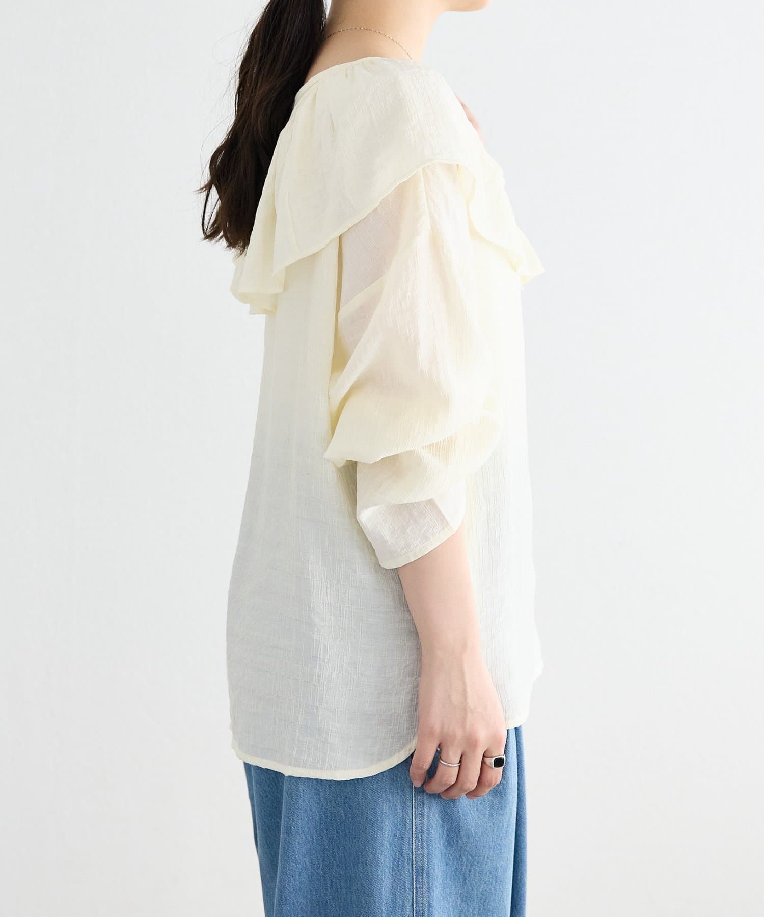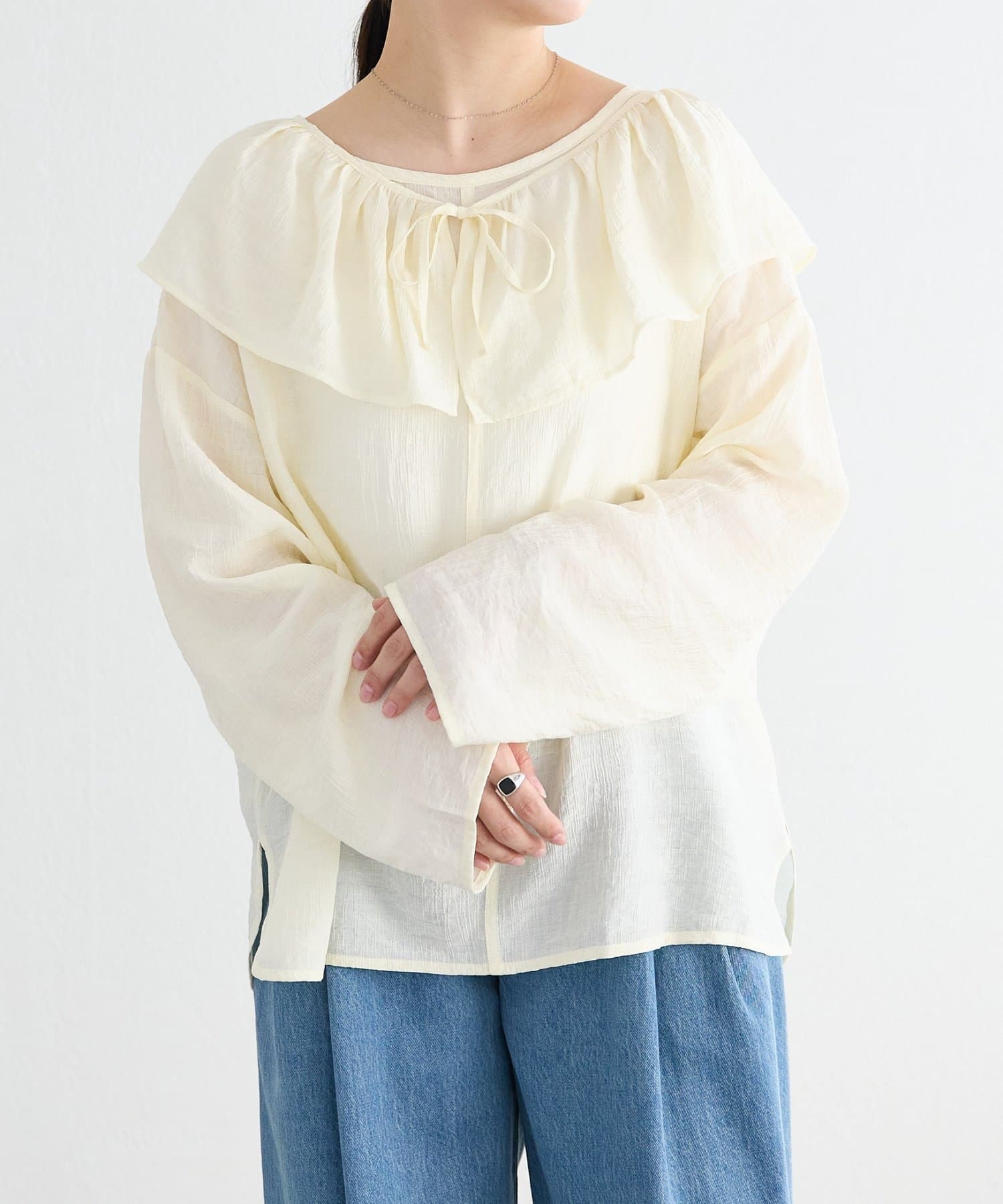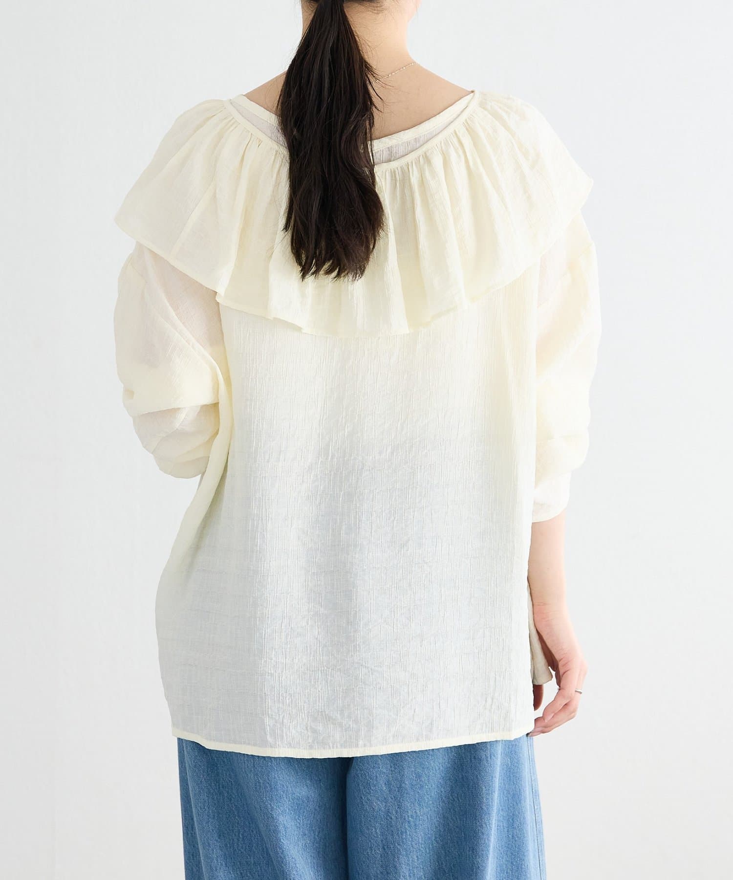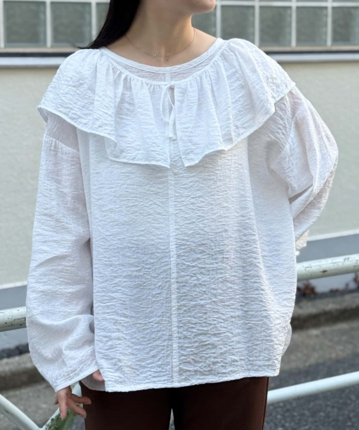 TOP > BEARDSLEY > レディース > トップス > シャツ/ブラウス(プルオーバー) > 1/24(土)11:00予約《FRIPIER》フリルエリツキシャツTee