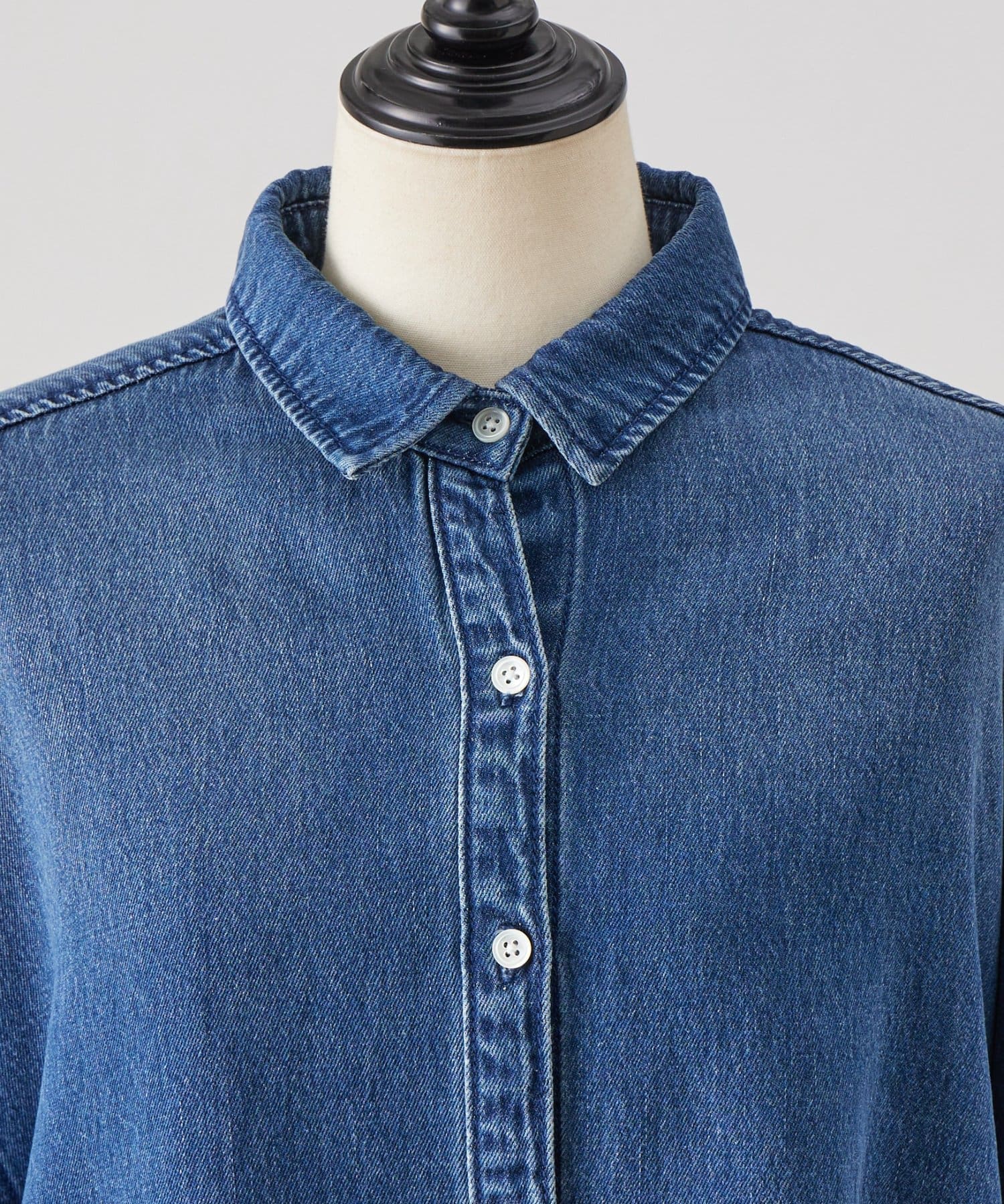 柔らかな肌触りで落ち感がきれいなデニムシャツ。