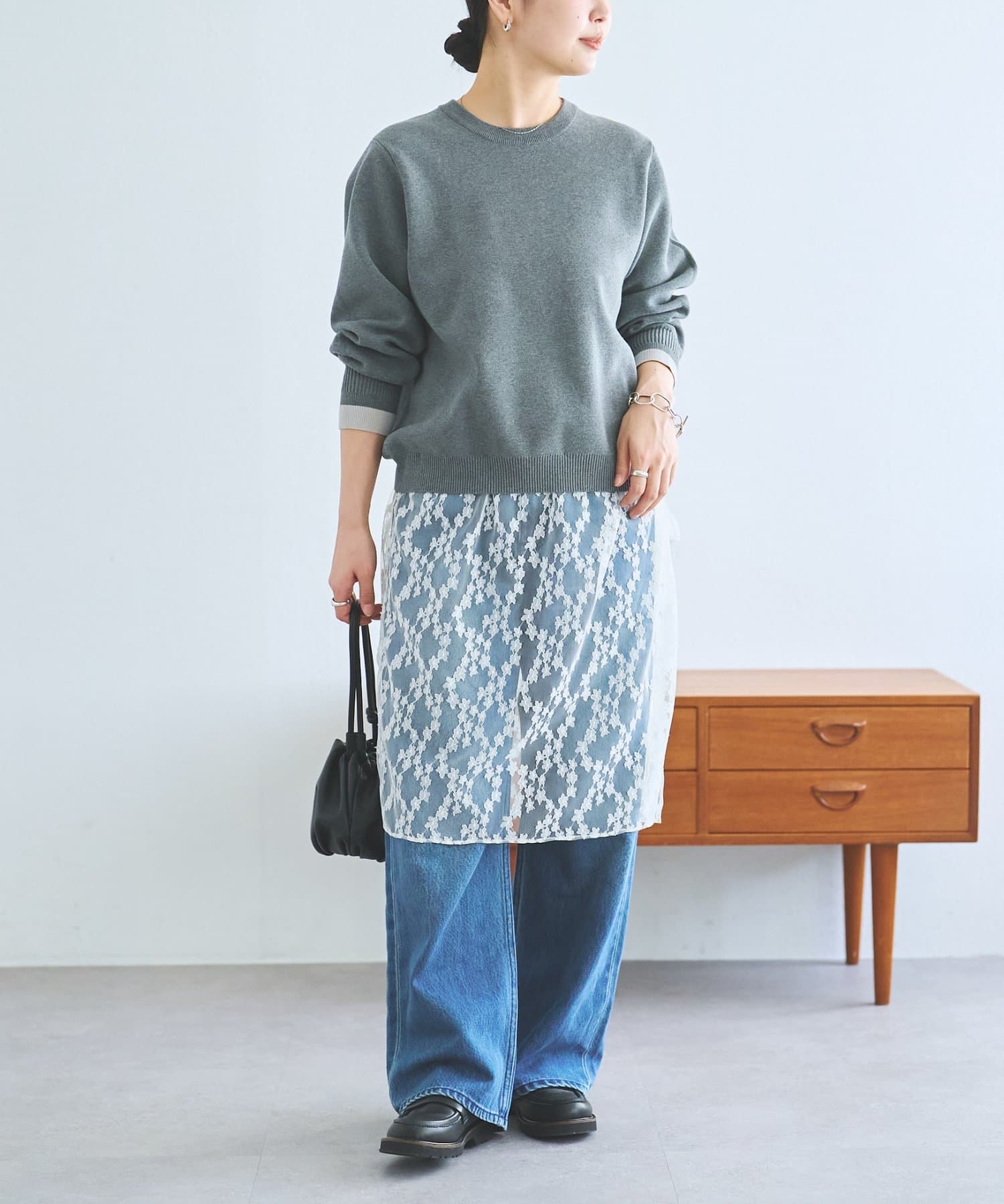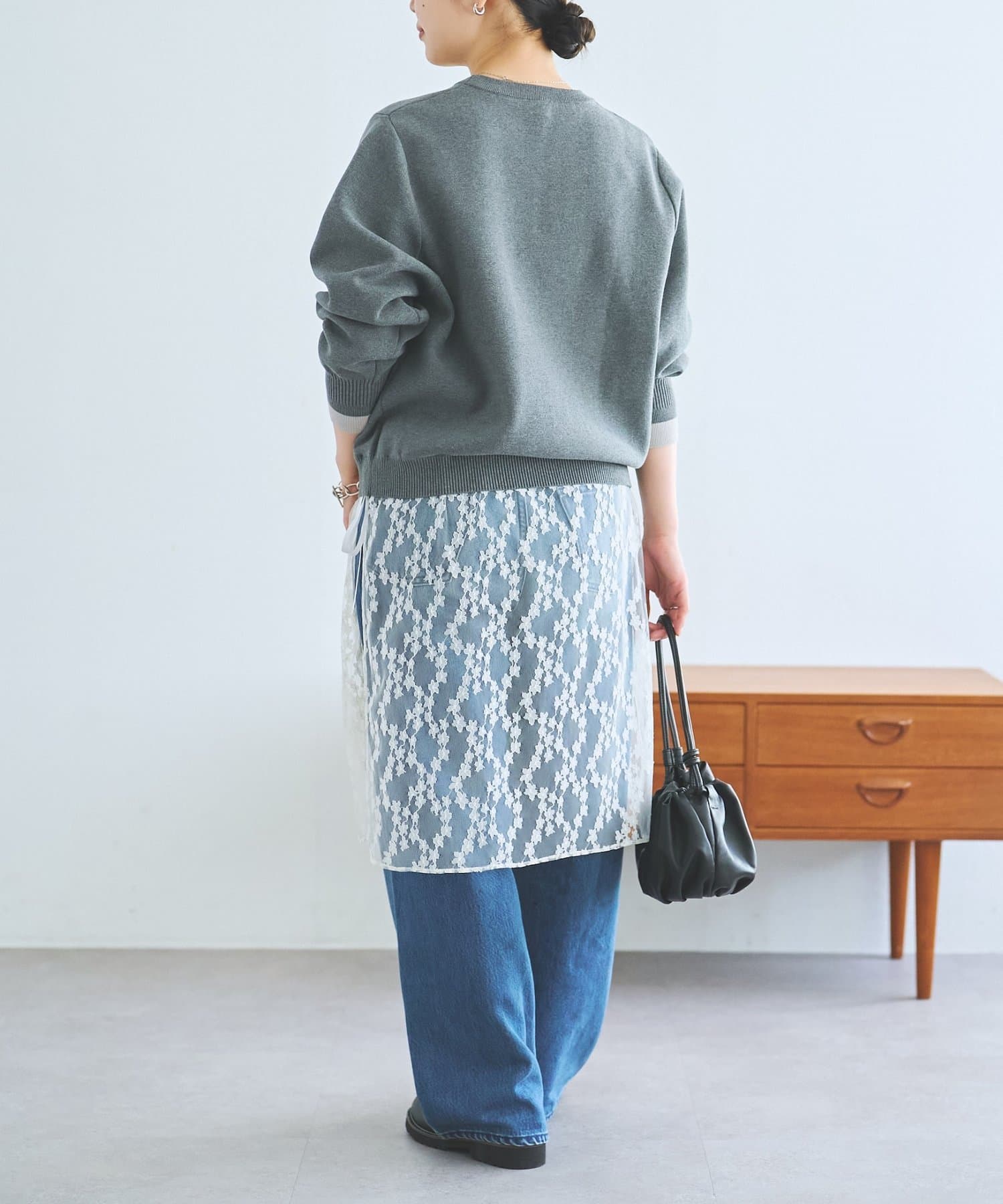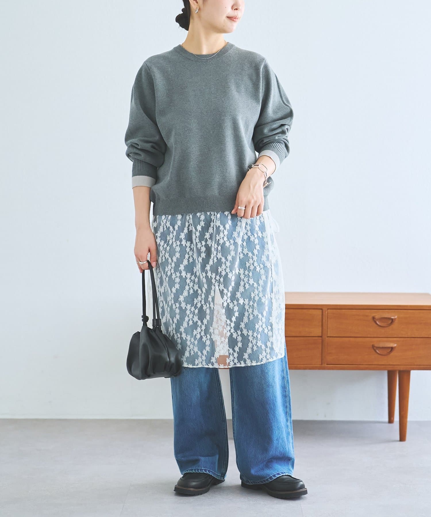 ニット単体ではもちろん、レース部分を巻きスカートのように合わせるのもトレンド感があって素敵です。