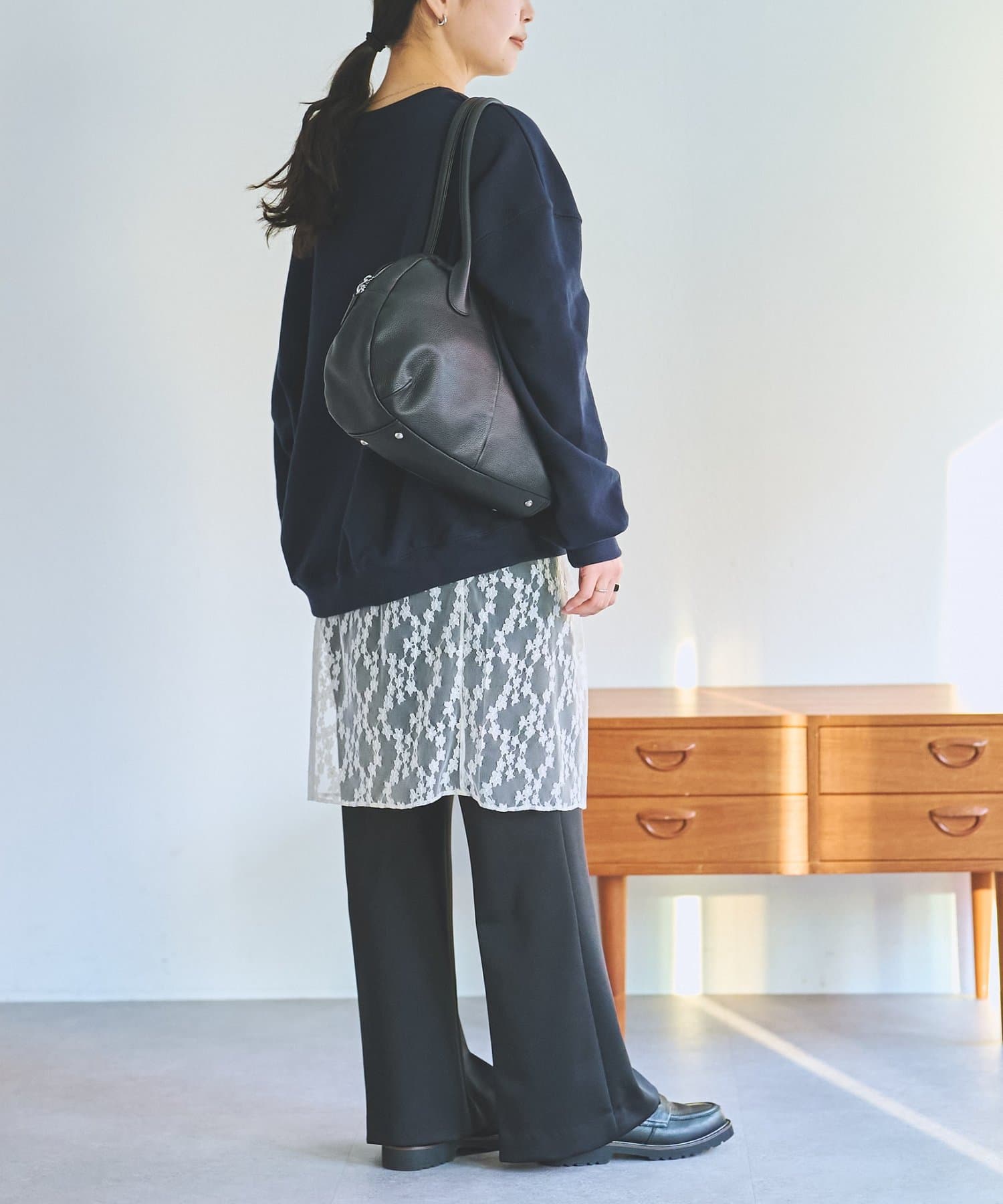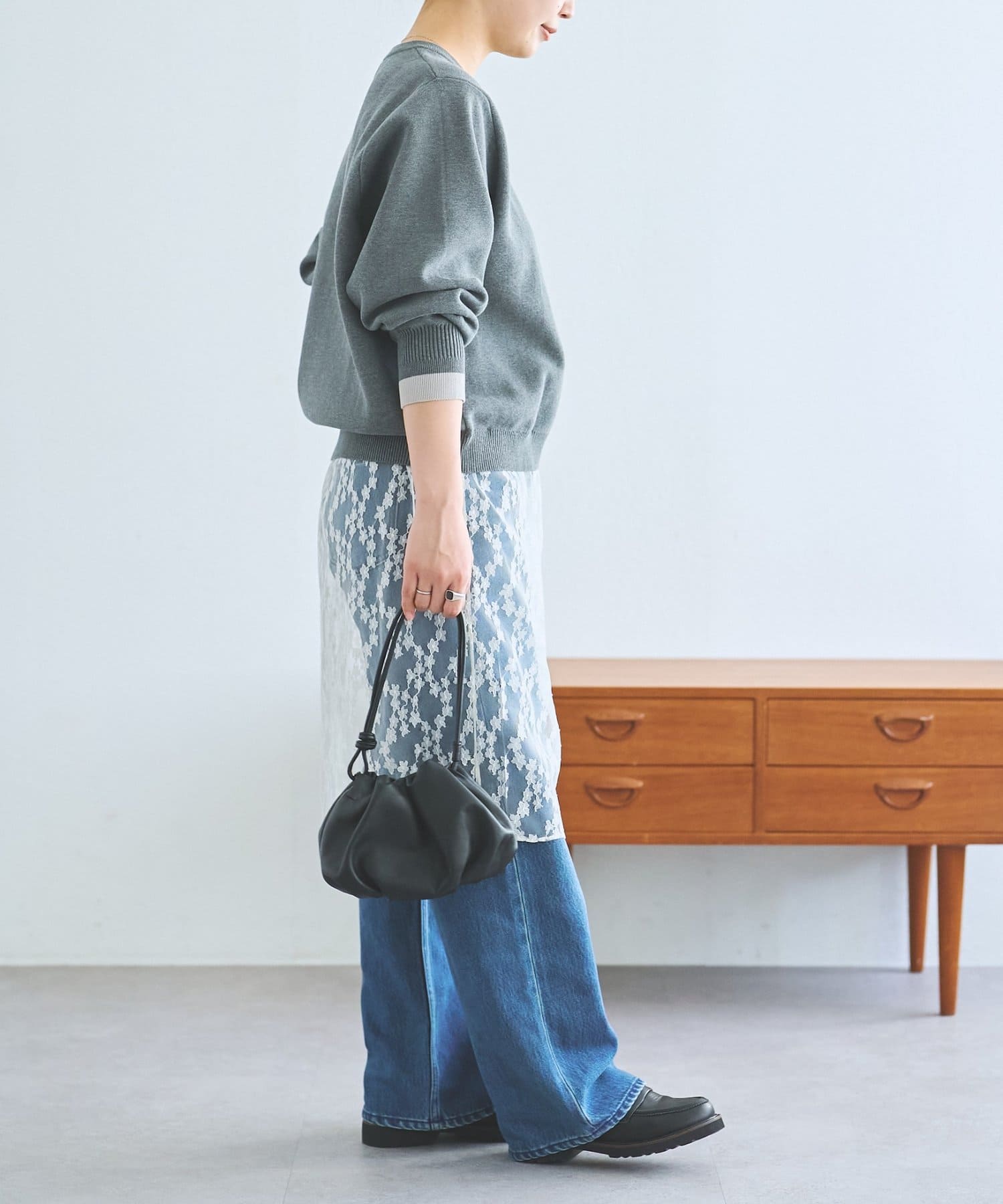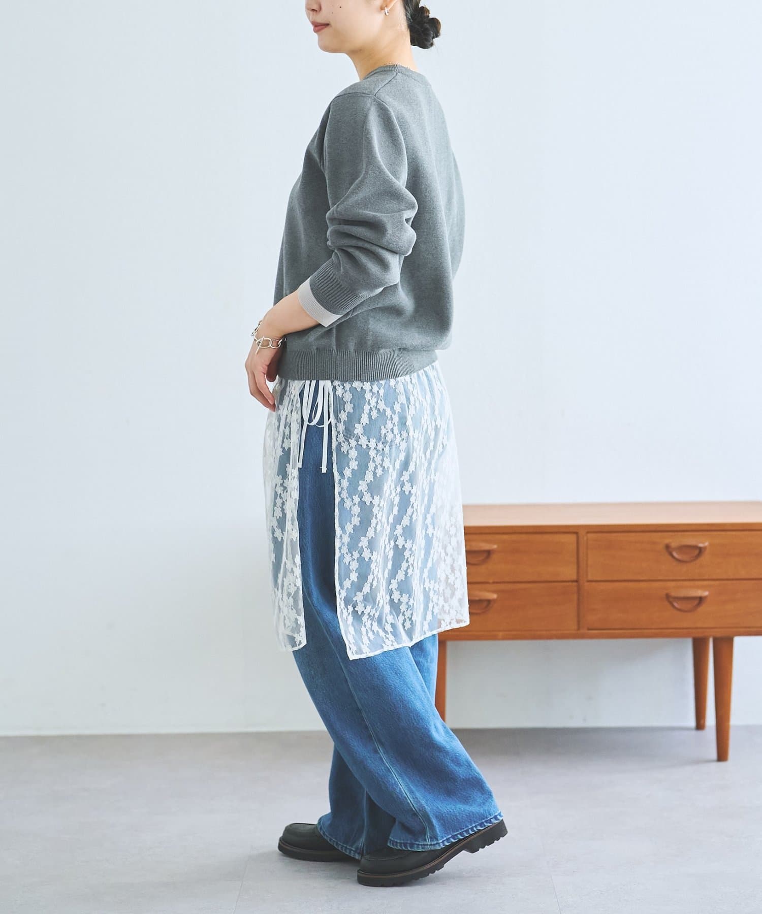 ニット単体ではもちろん、レース部分を巻きスカートのように合わせるのもトレンド感があって素敵です。