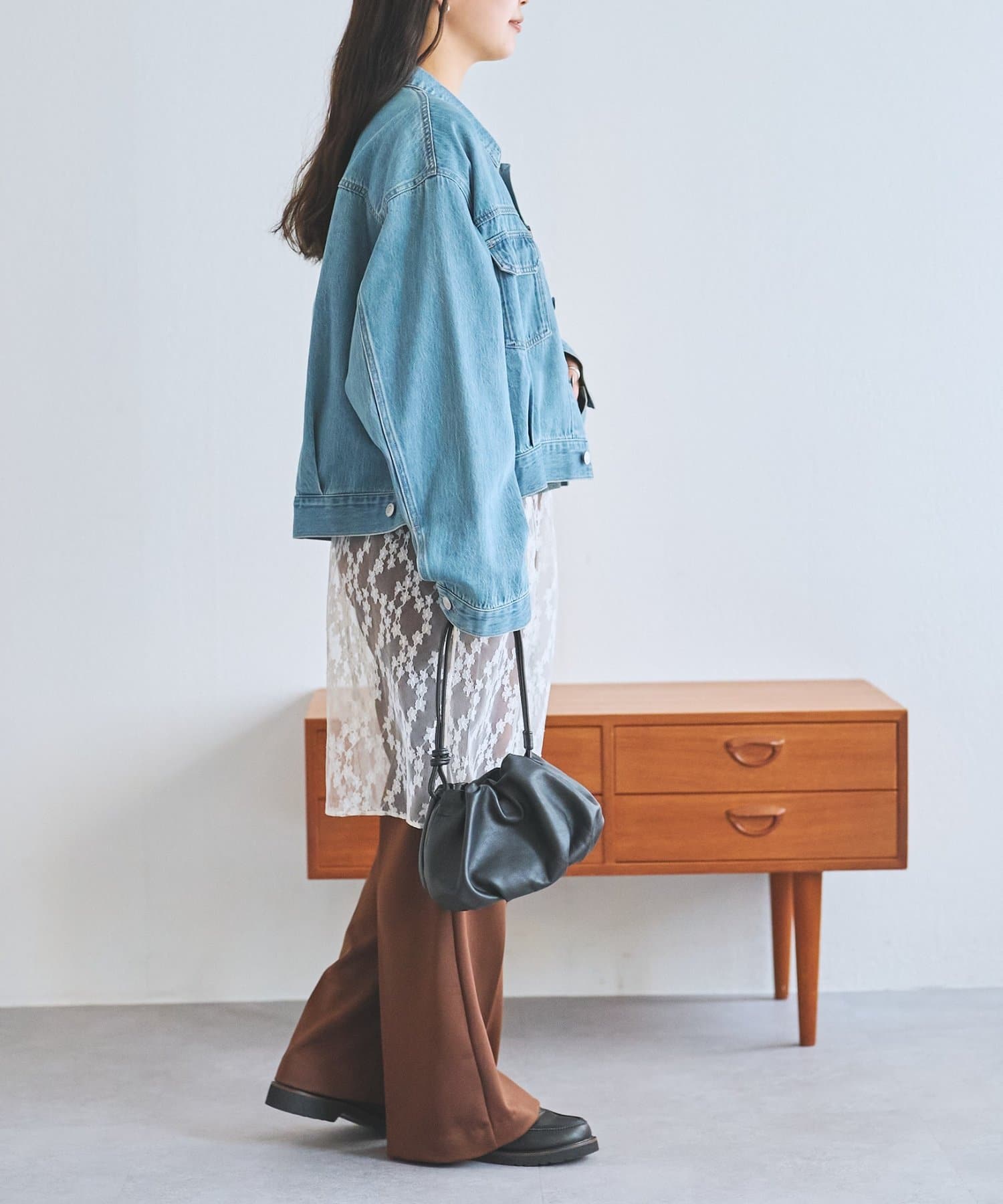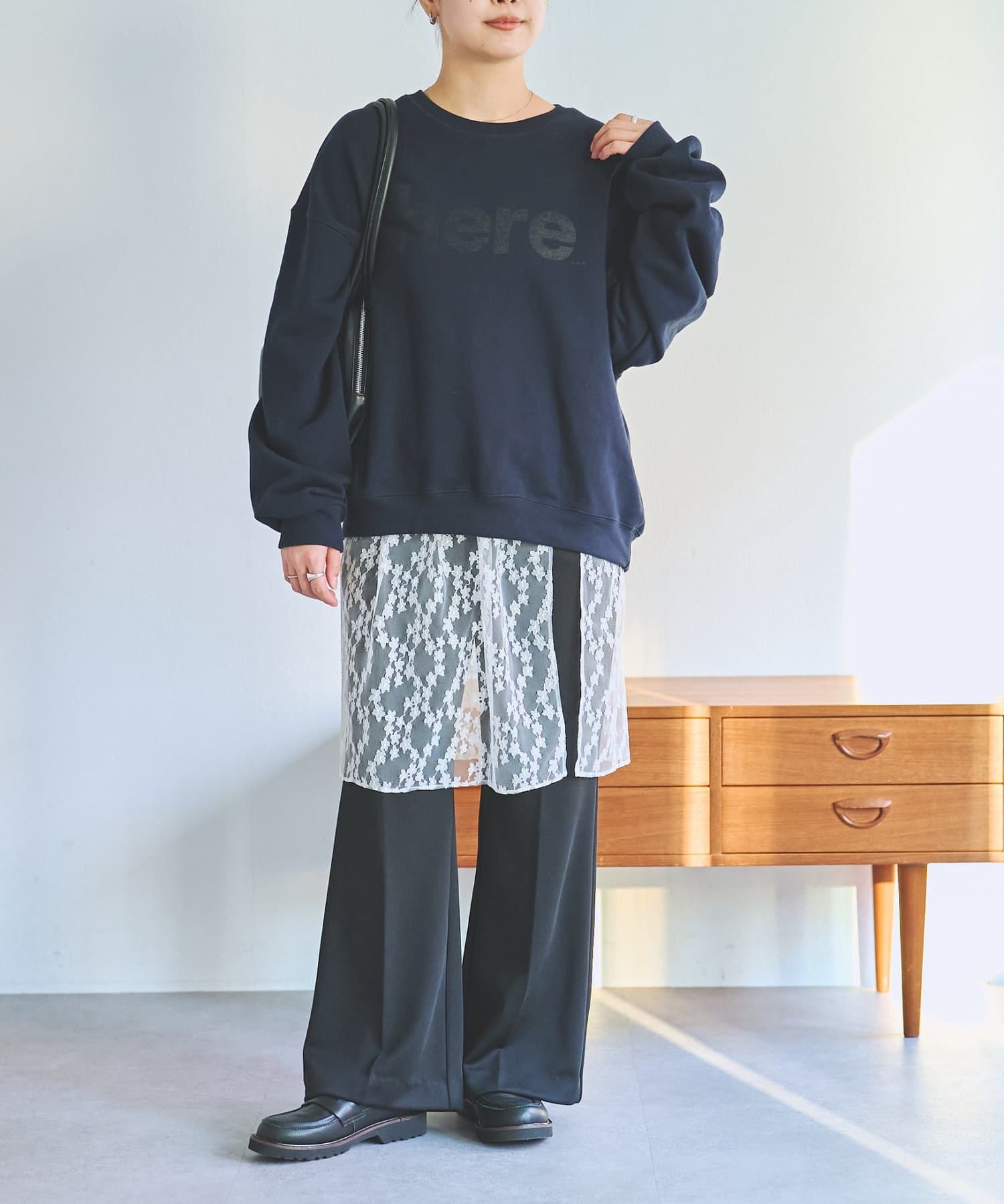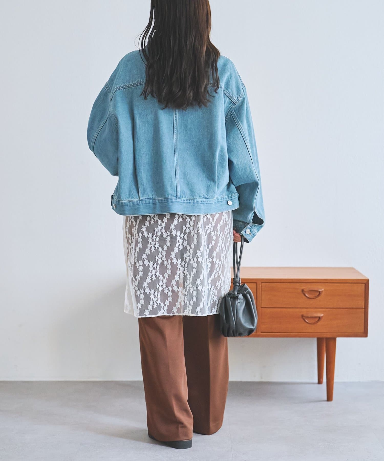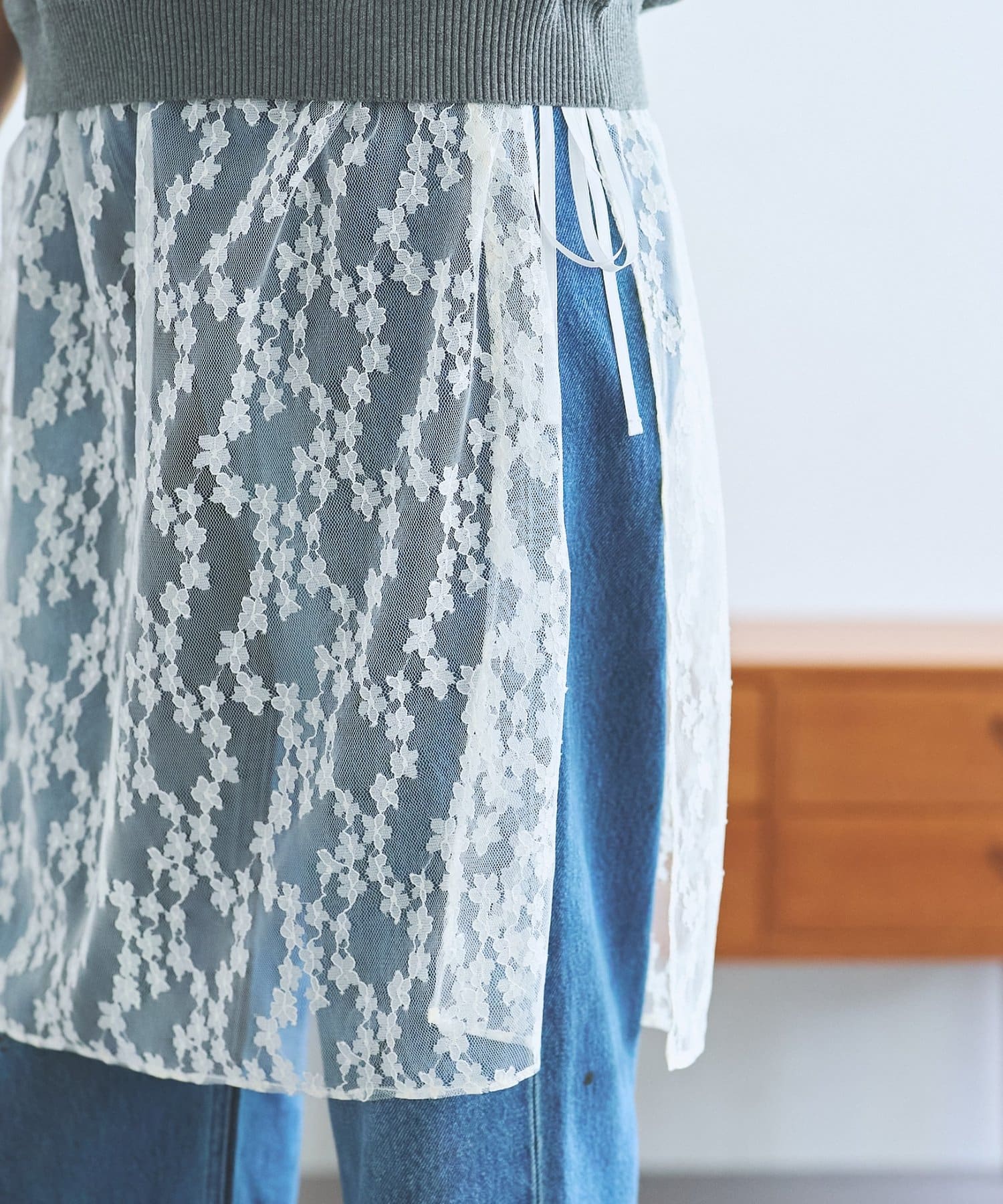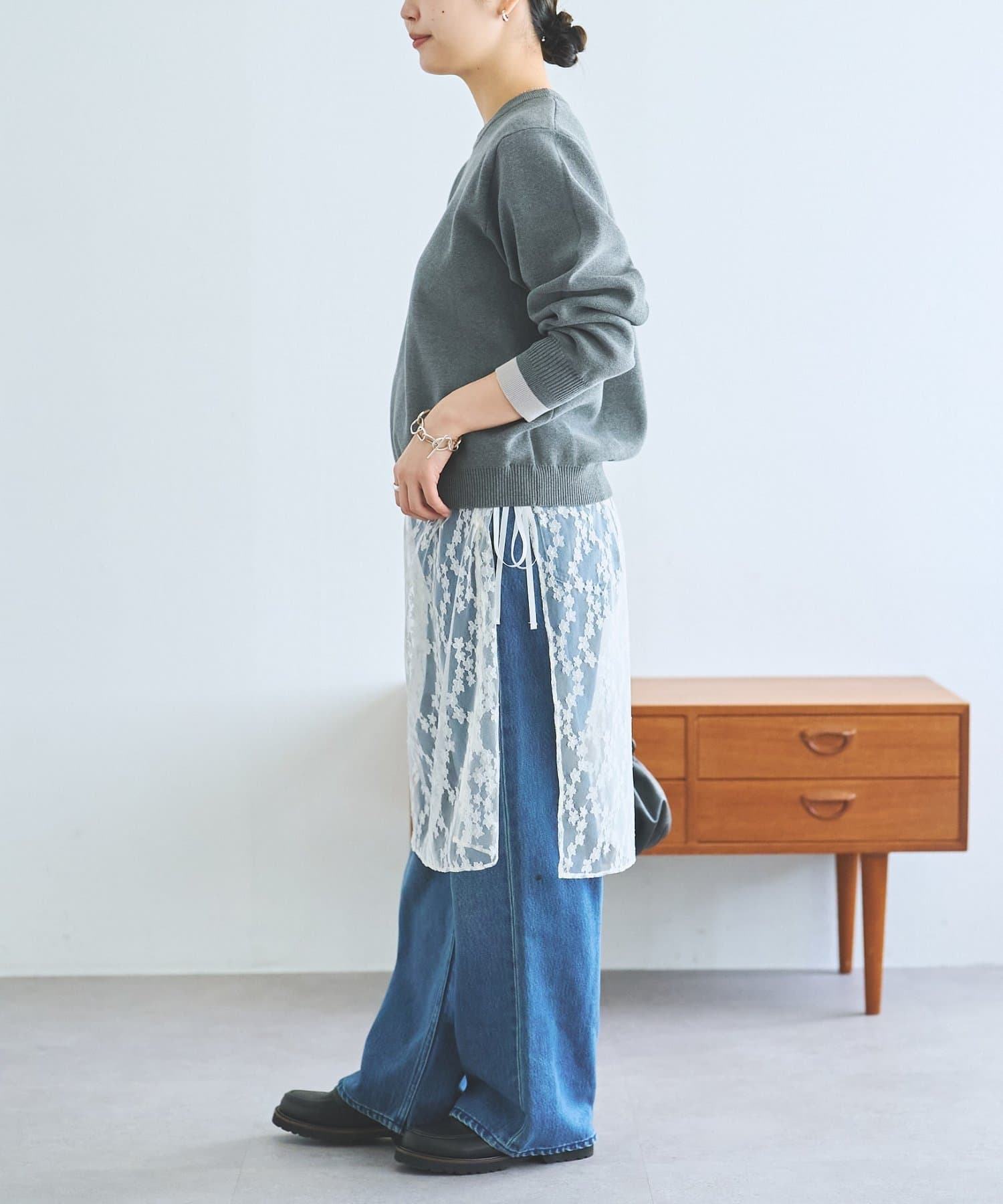 透け感のあるレースが上品かつ女性らしく、デニムやスラックスなど多系統のボトムとレイヤードを楽しめます。