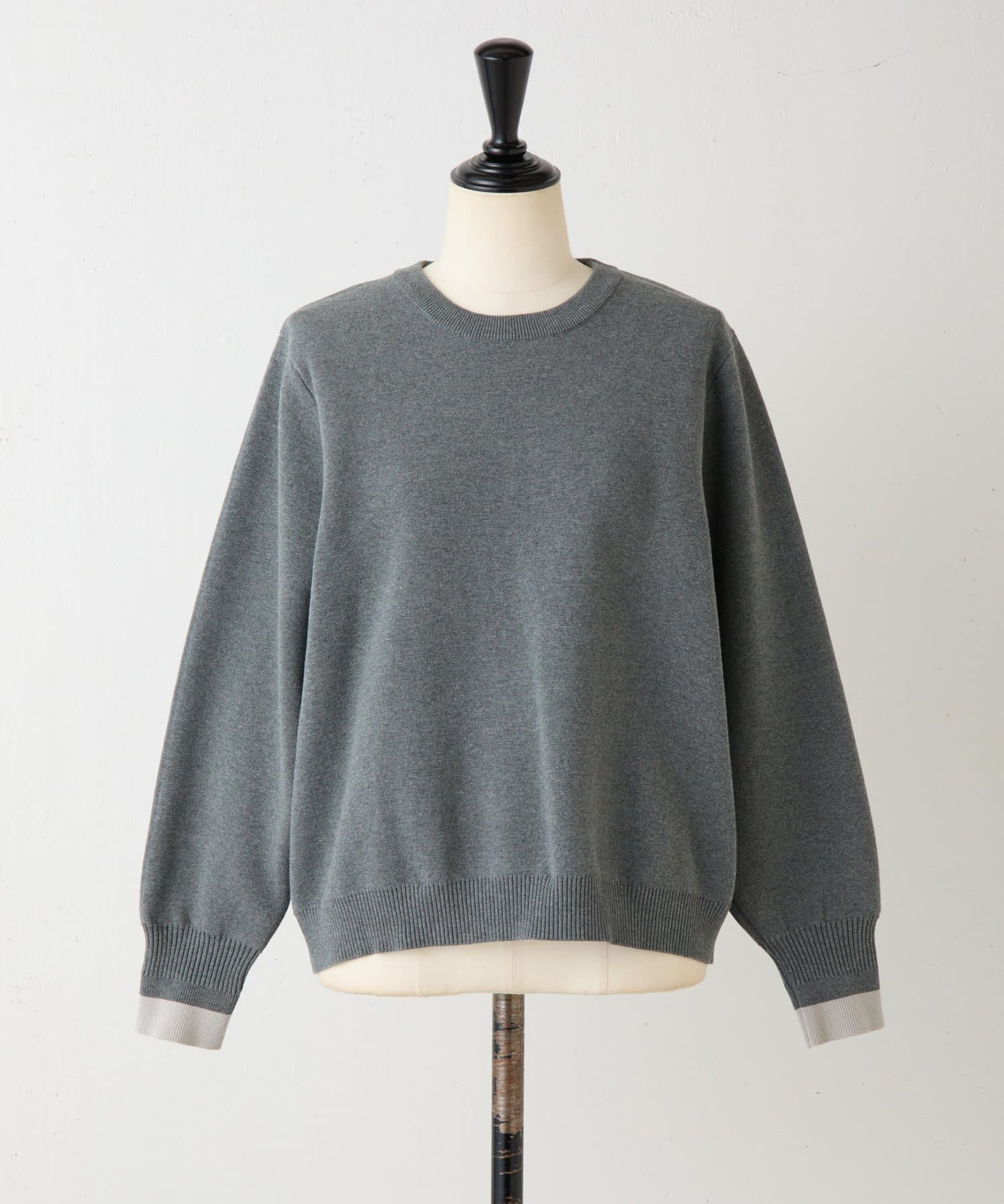 ニットの袖口はバイカラーになっていて差し色のようにさり気ないポイントになります。