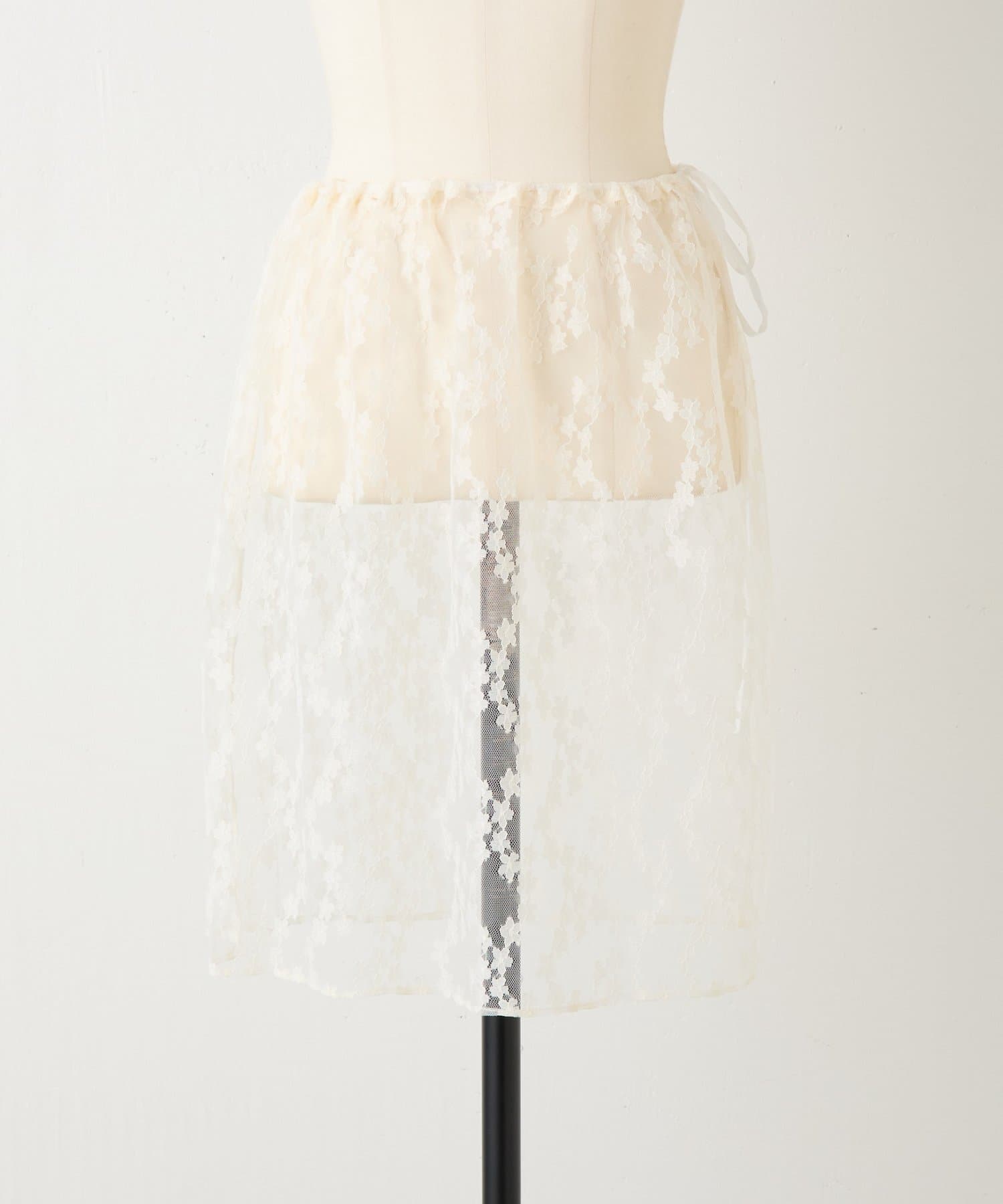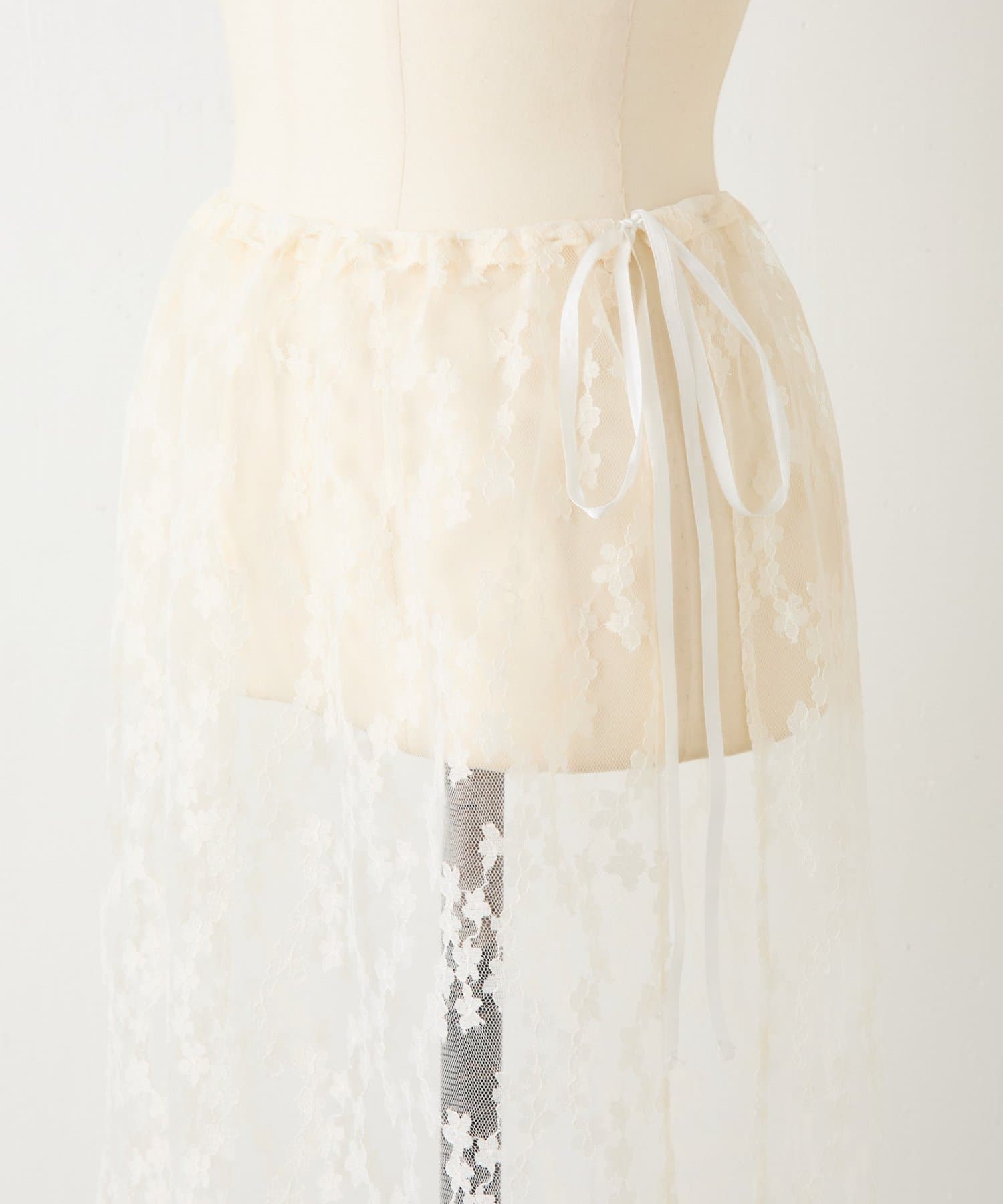 レース部分はボタンで取り外しが可能で、ウエスト部分は紐が1周ぐるりと通っています。