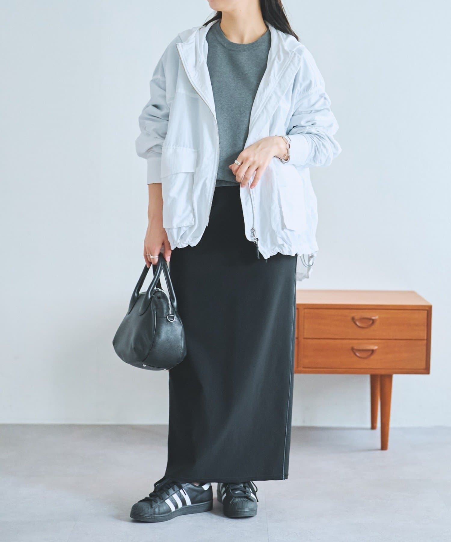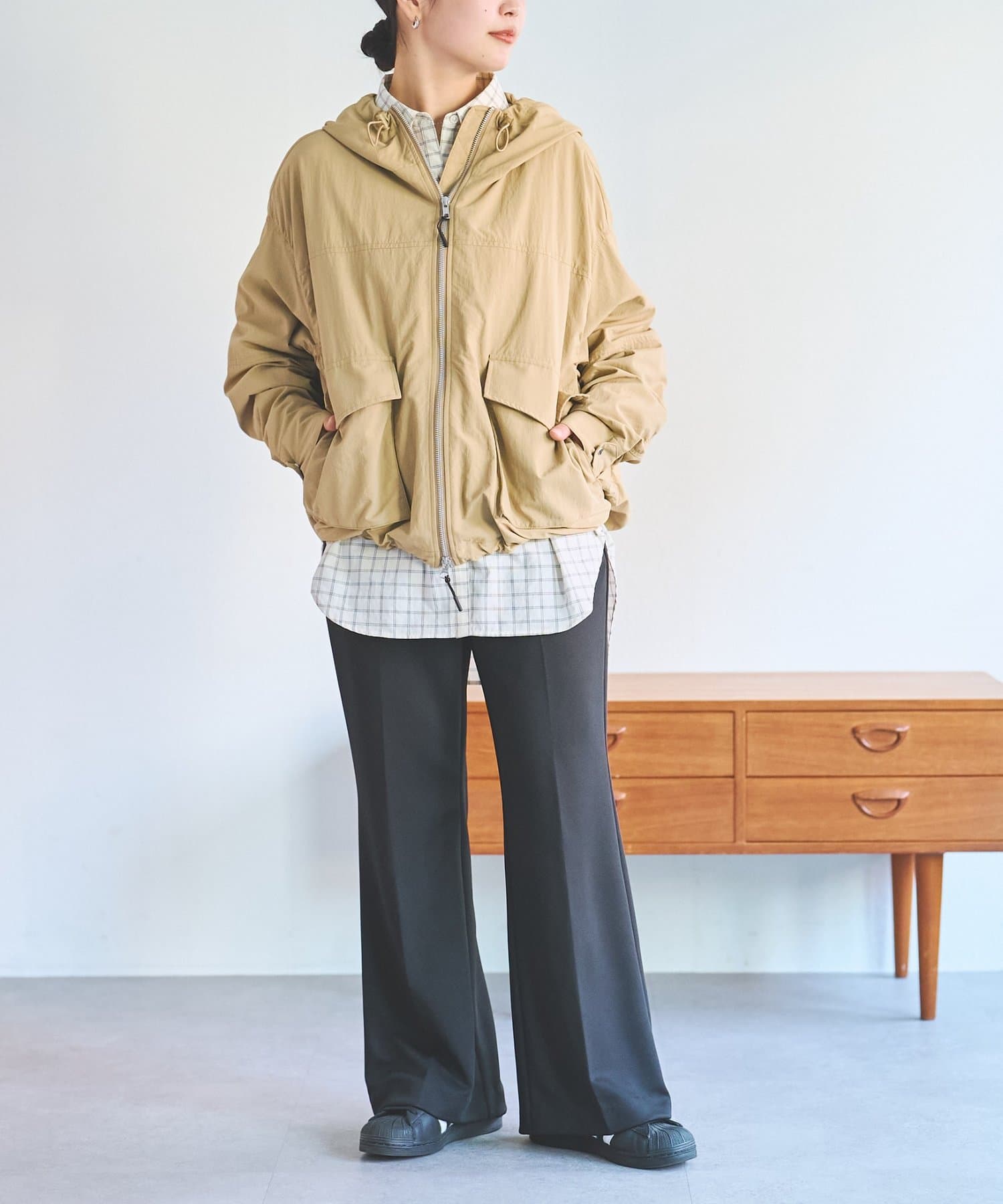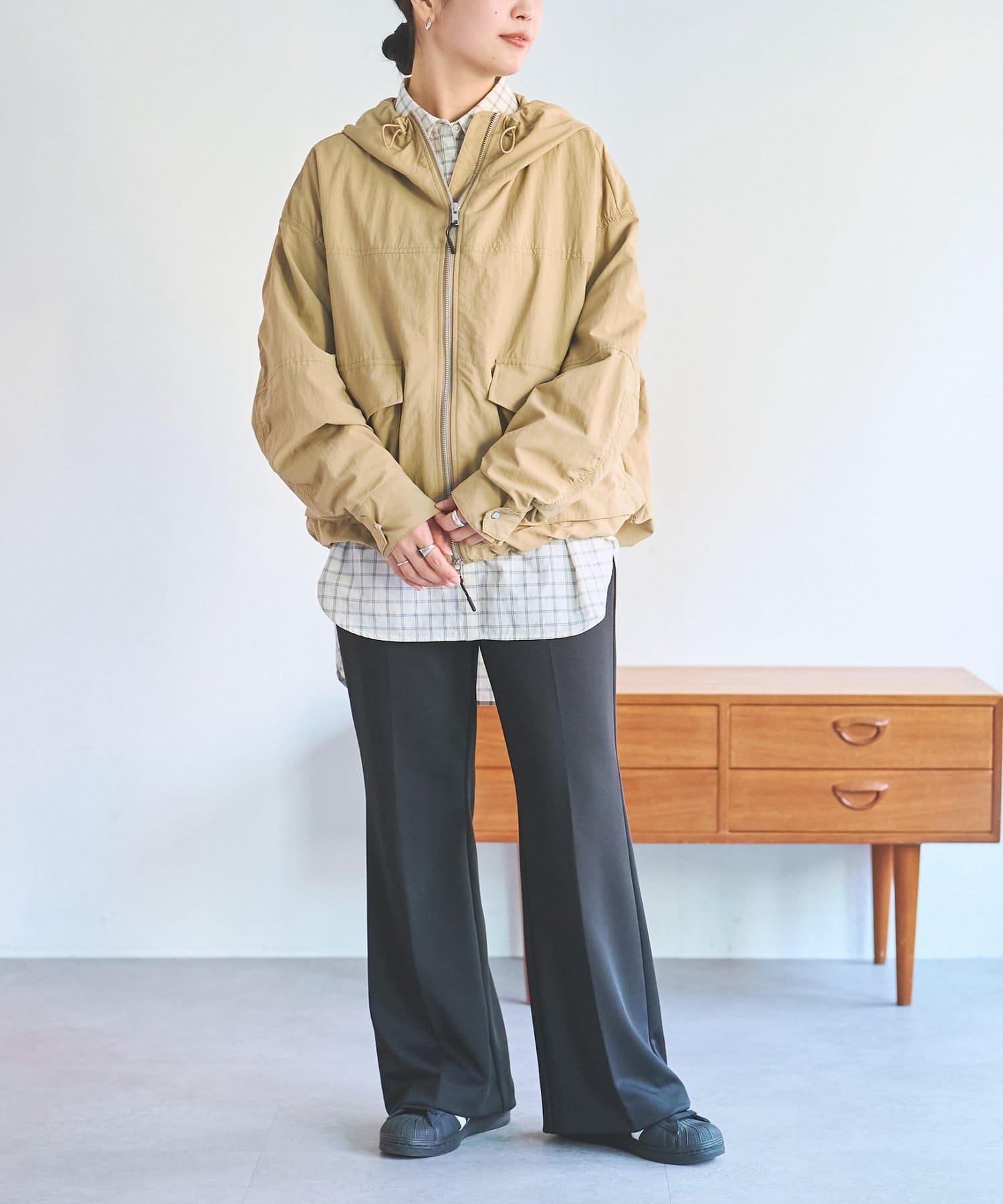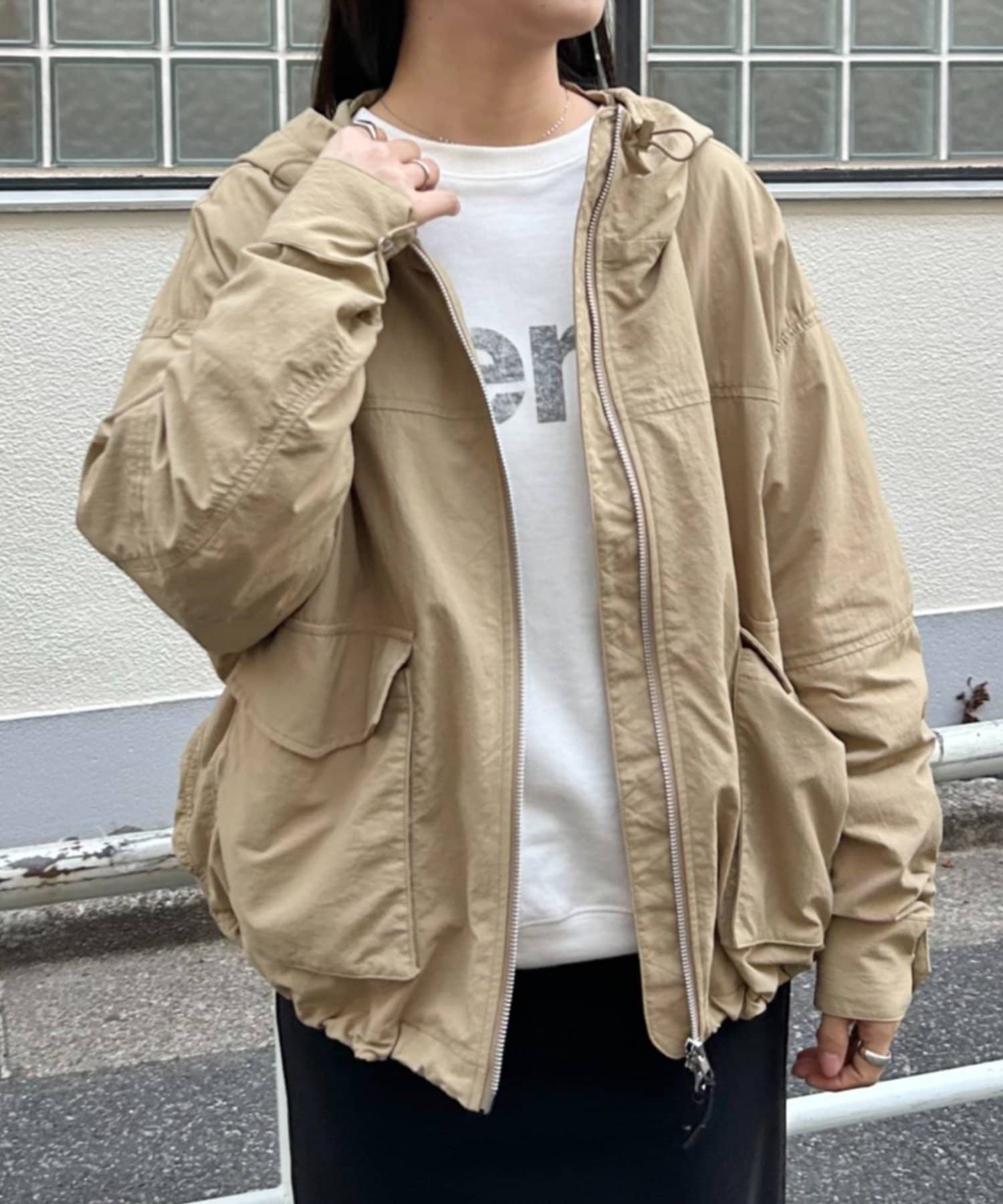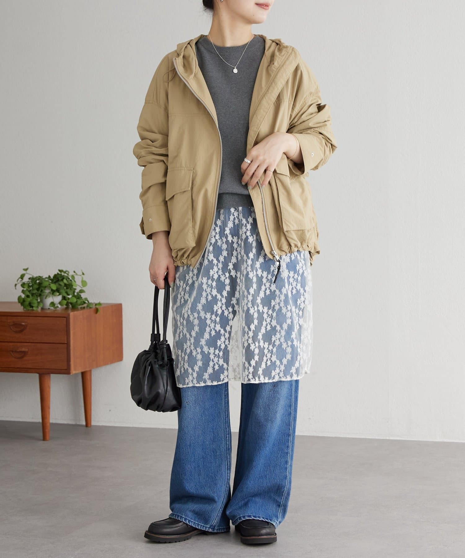 中に厚手のトップスを合わせられる大きめなシルエットで、肌寒い季節から春先まで活躍してくれます。