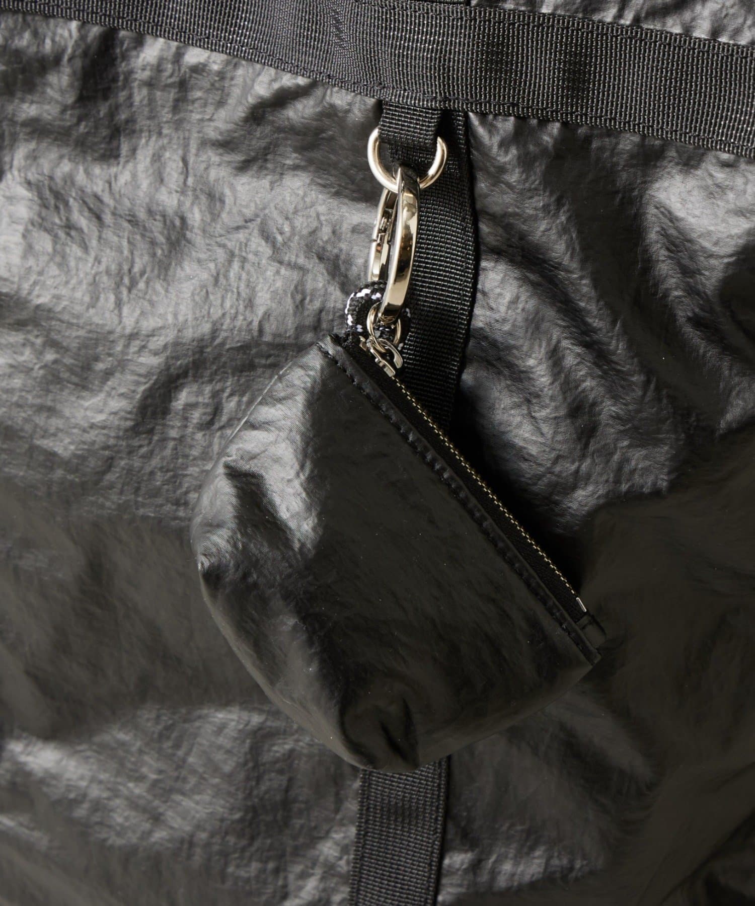 チャームのようなミニポーチとカラビナがセットなので、細々した小物も収納可能です。