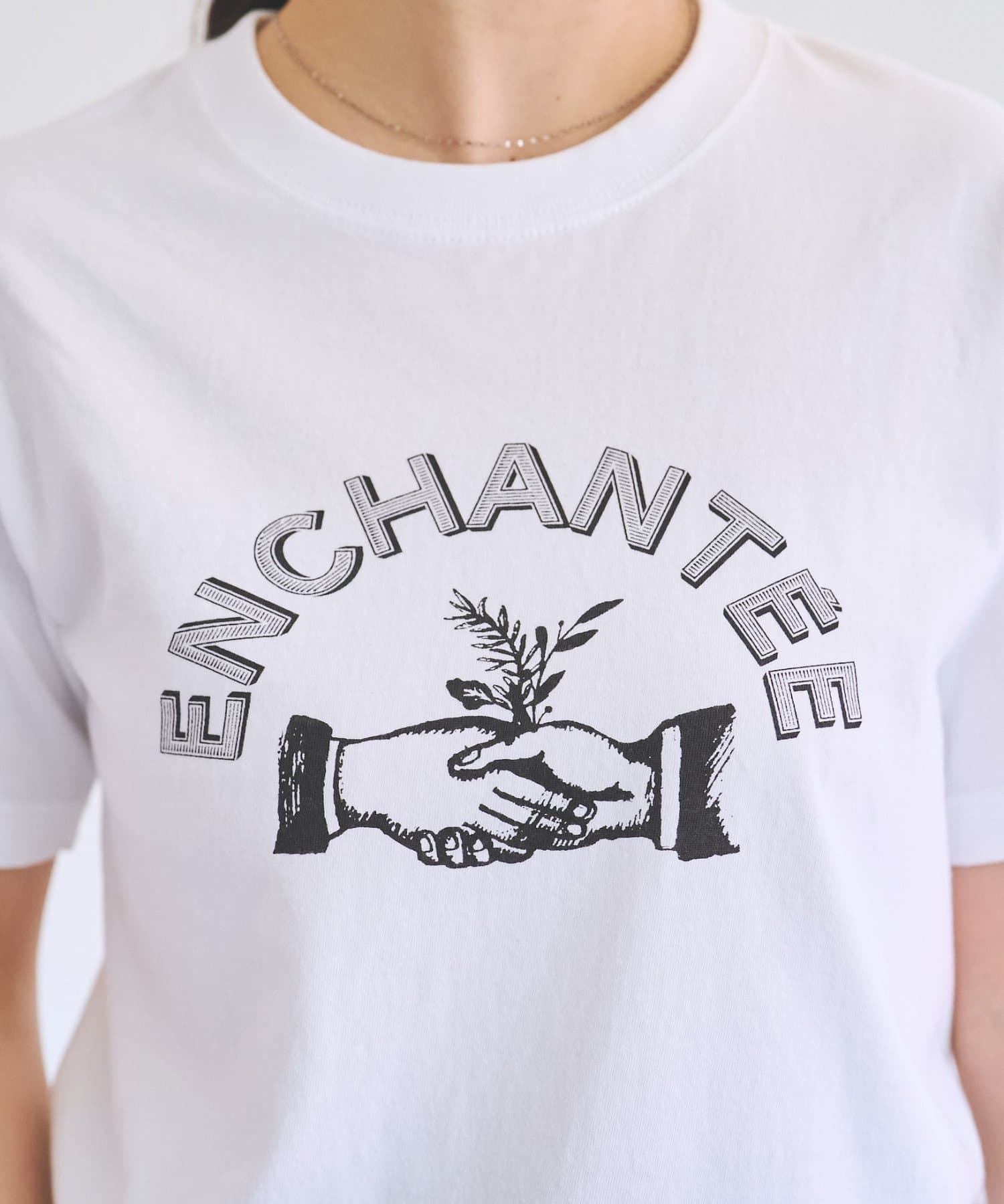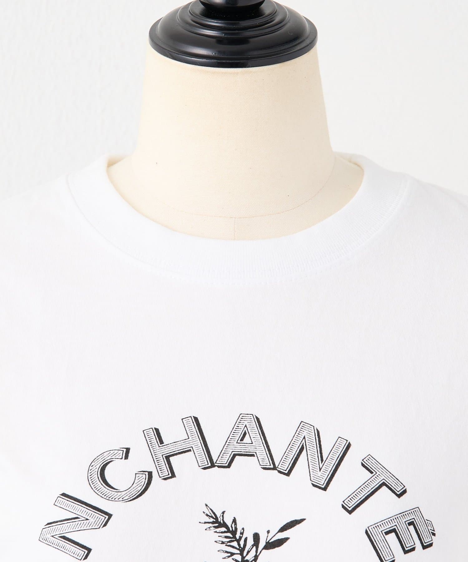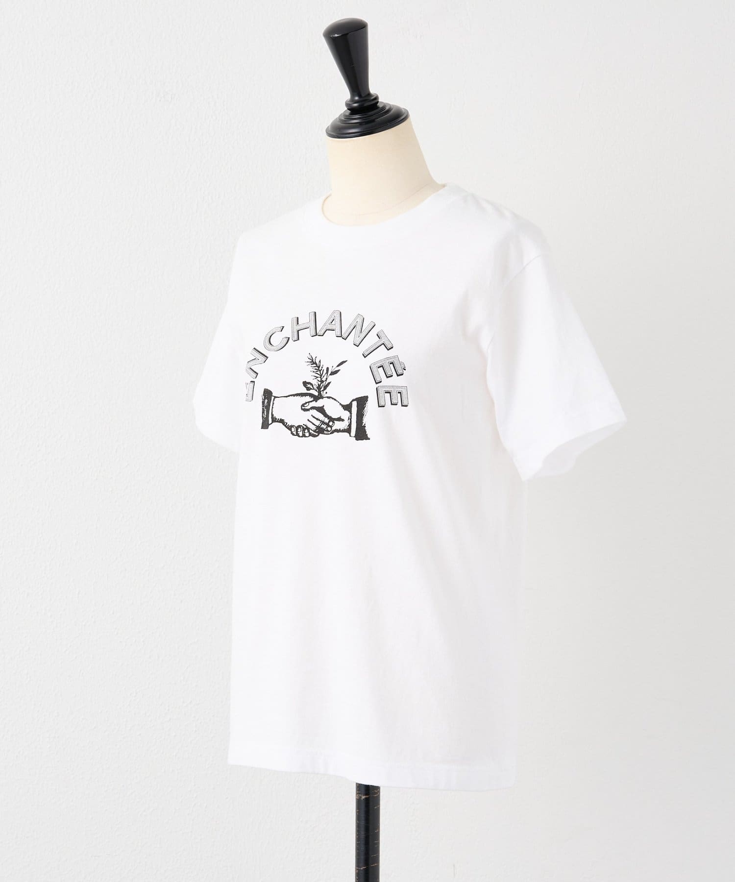 フランス語の挨拶「ENCHANTÈE」のロゴをあしらった、コットン100%のプリントTシャツ。