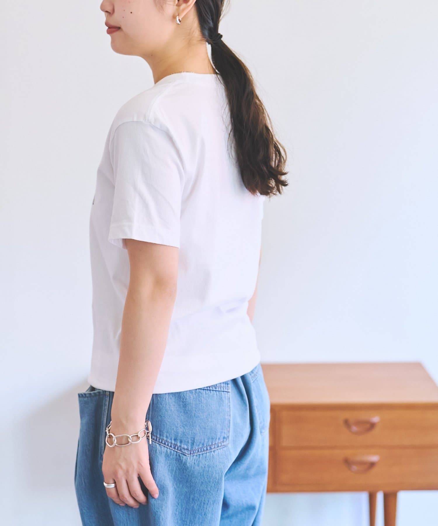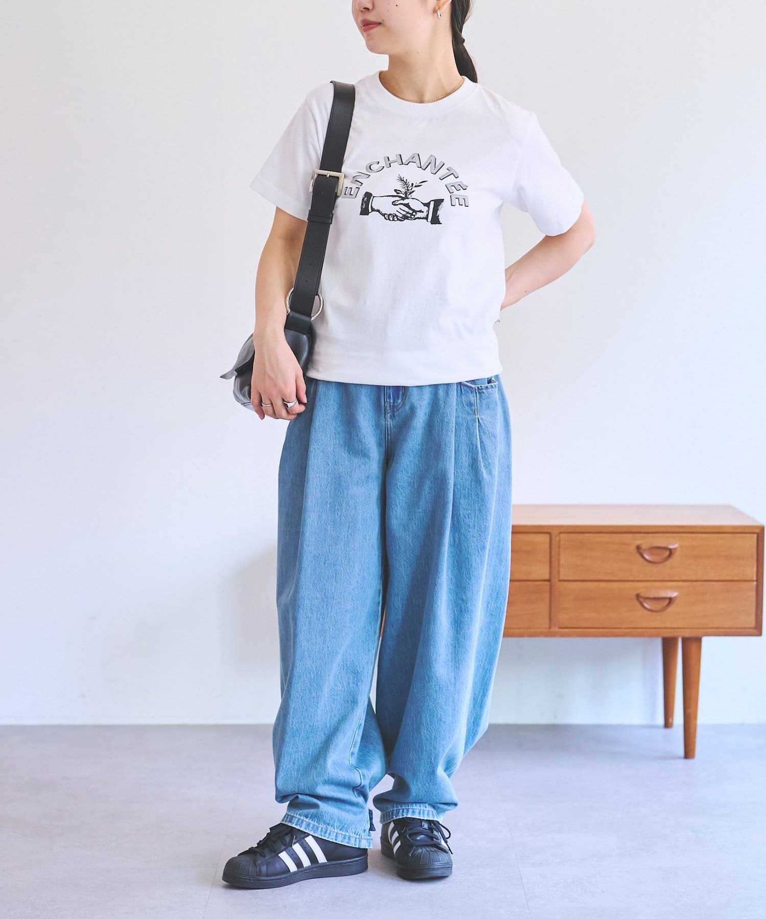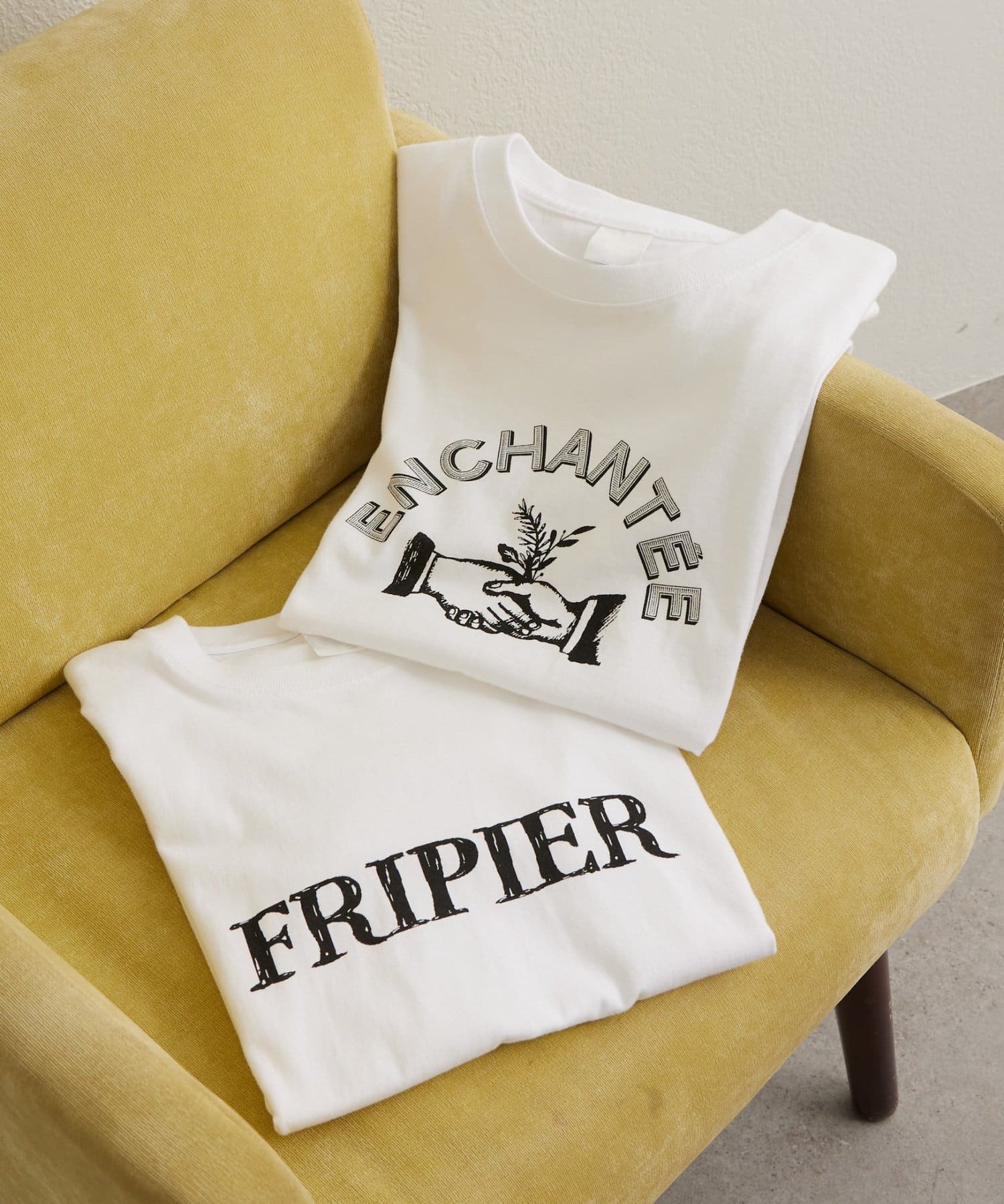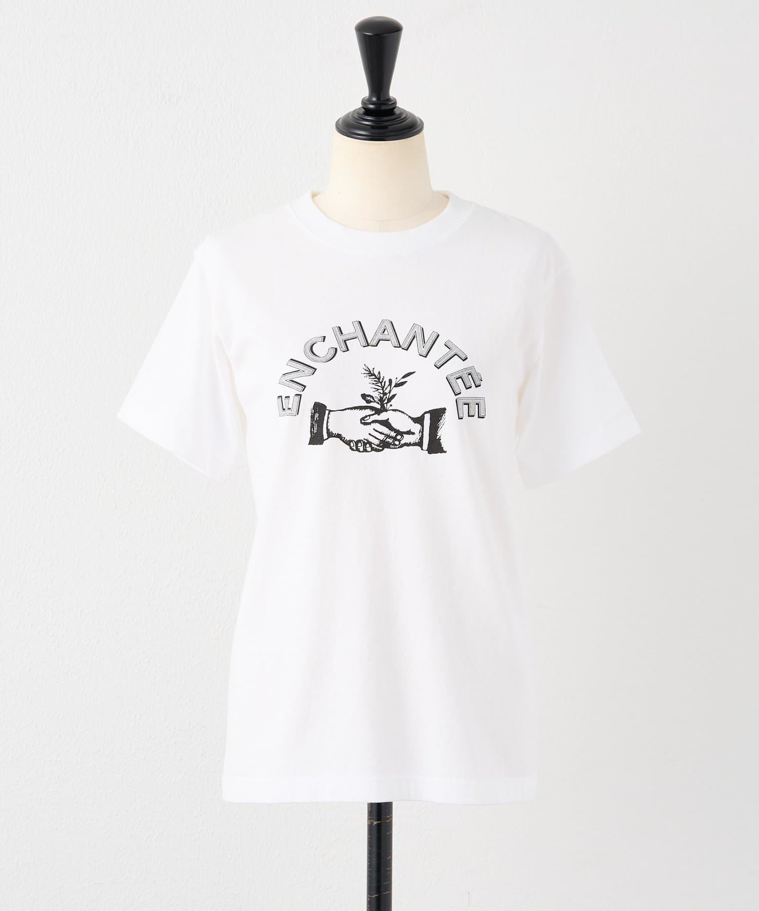 フランス語の挨拶「ENCHANTÈE」のロゴをあしらった、コットン100%のプリントTシャツ。