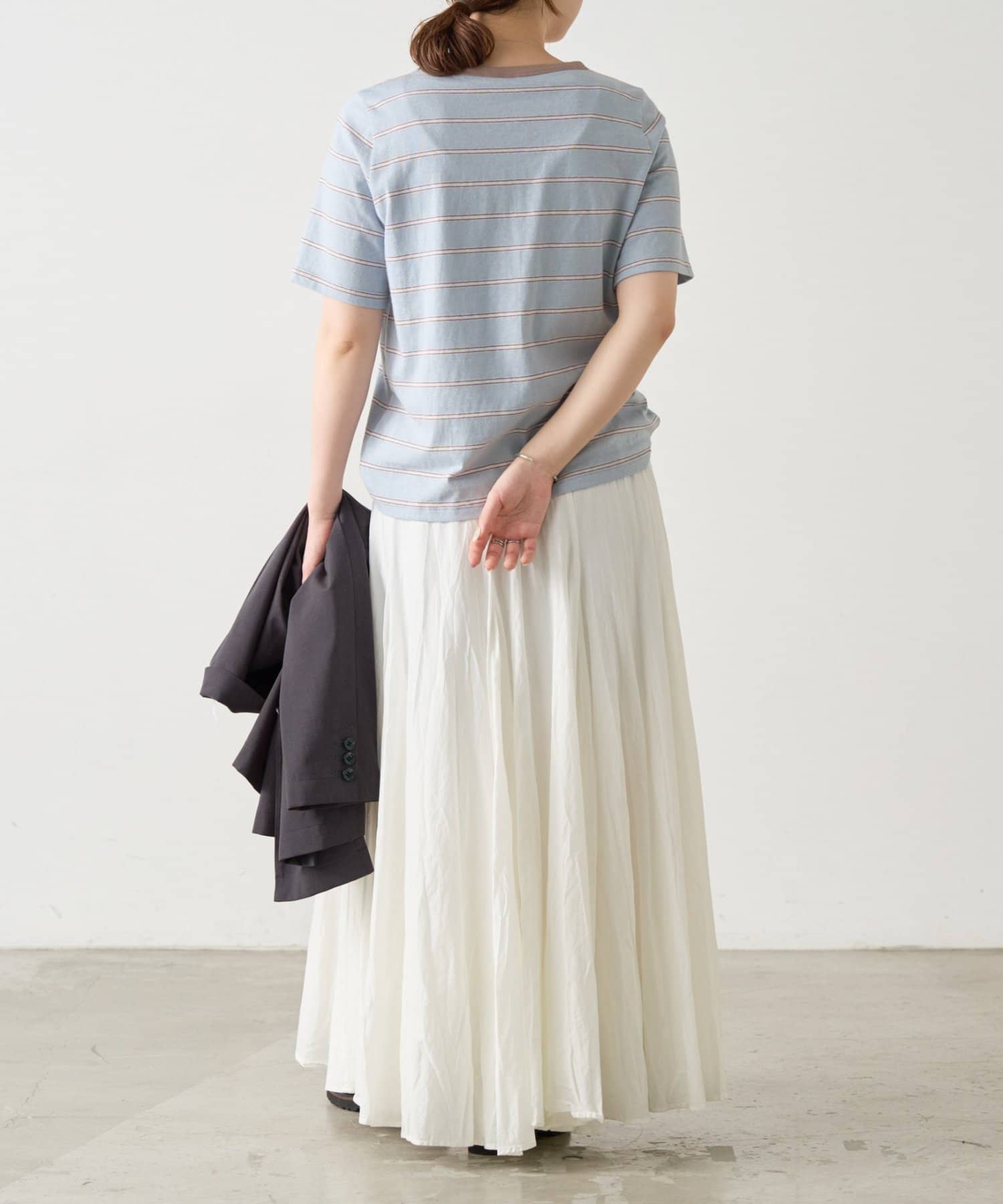ナチュラルなシワ感とやわらかな風合いで、リラックス感のある雰囲気を演出します。