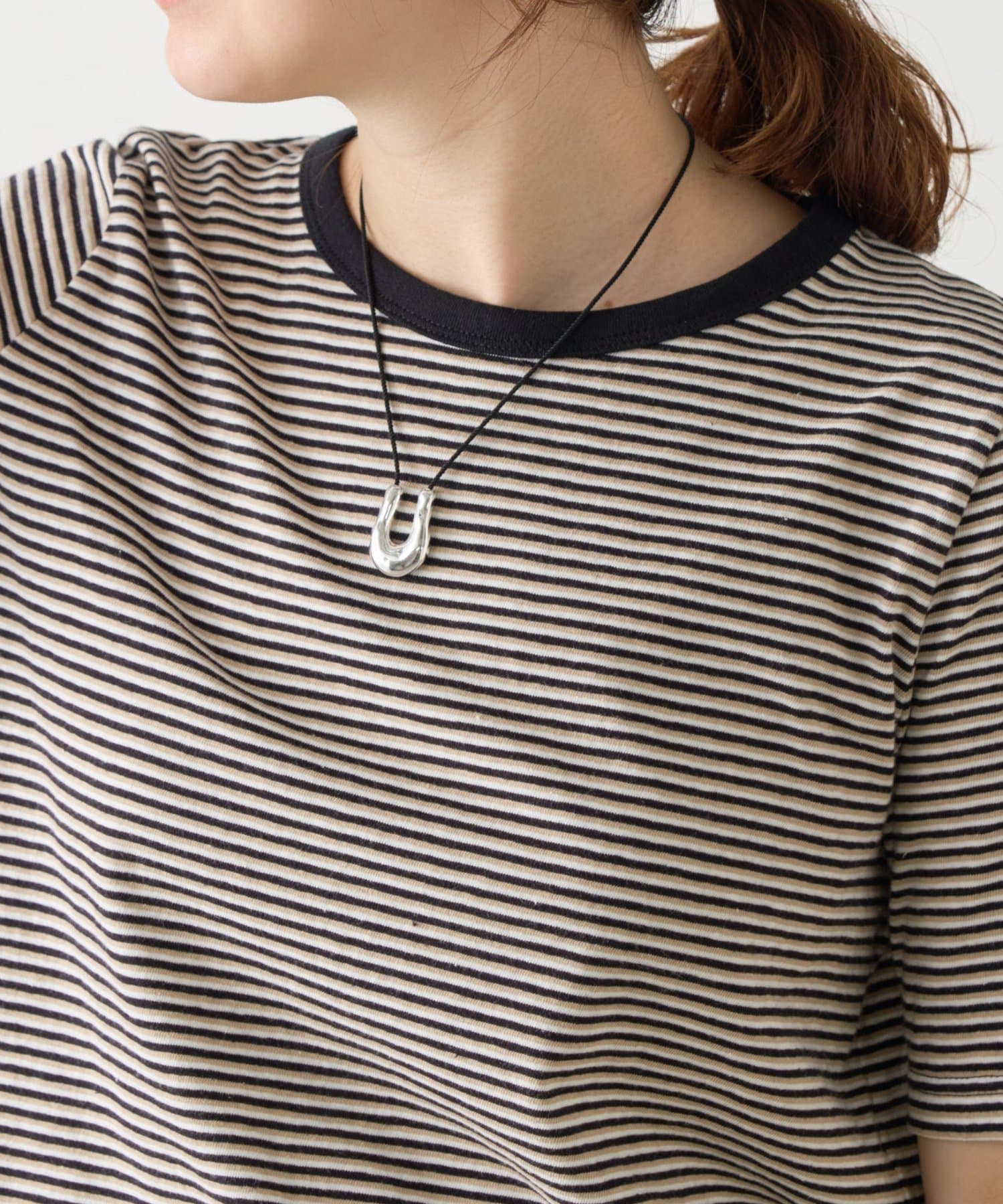 ブラックは全体に細いボーダーをあしらい、首元の黒いパイピングがさりげないアクセントに。
