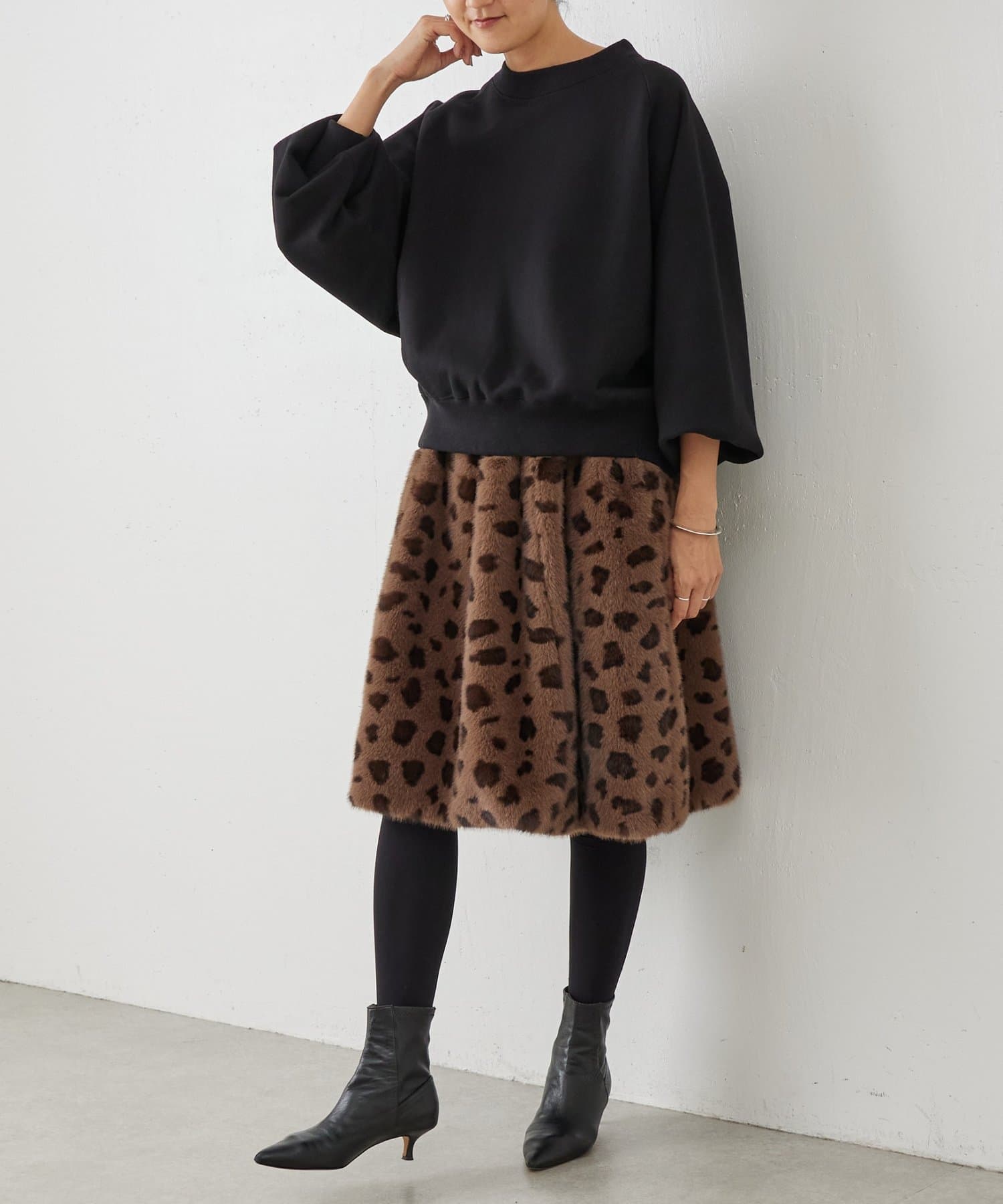 レオパード柄でも落ち着いた雰囲気で、大人の装いに自然になじむデザイン。