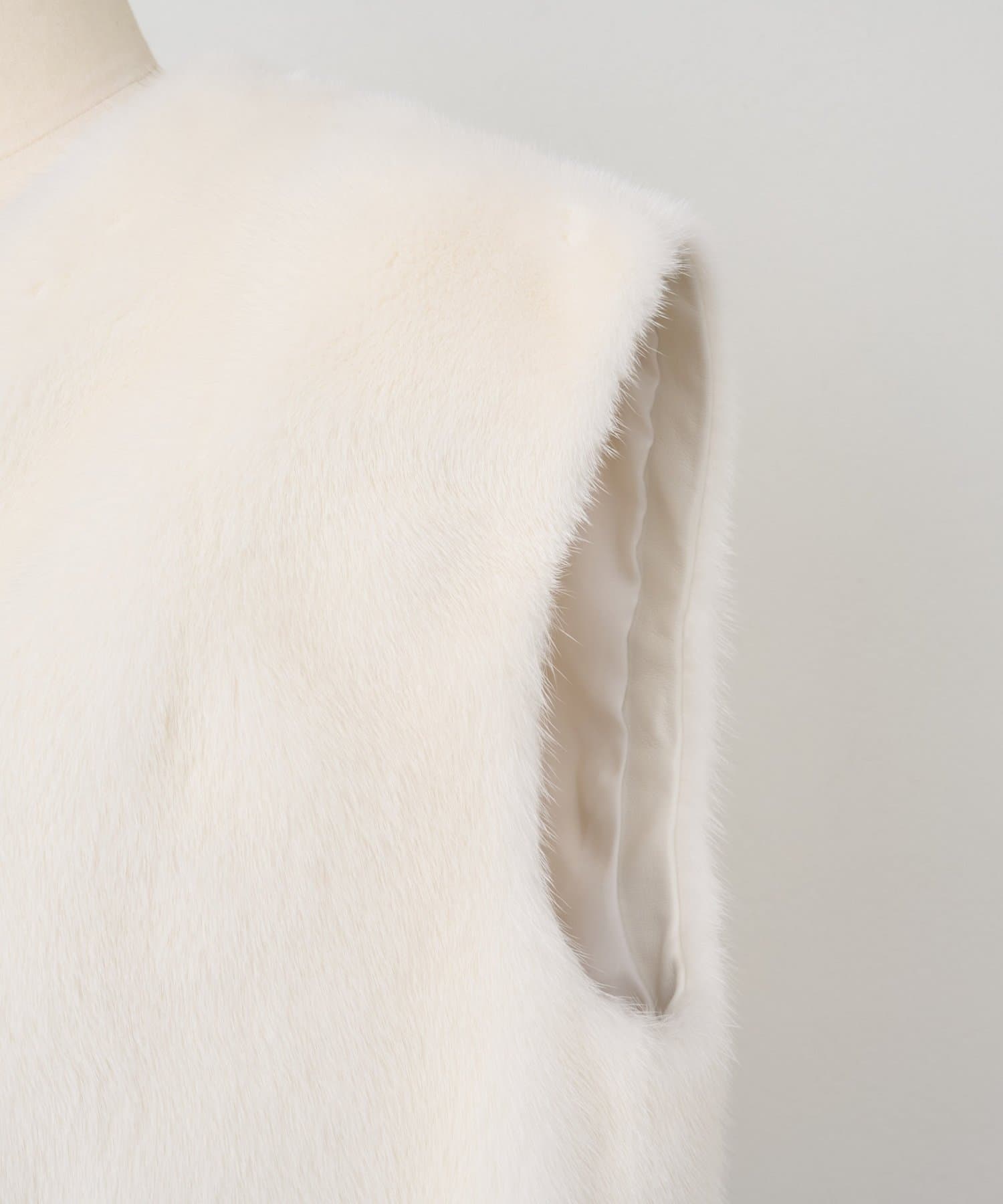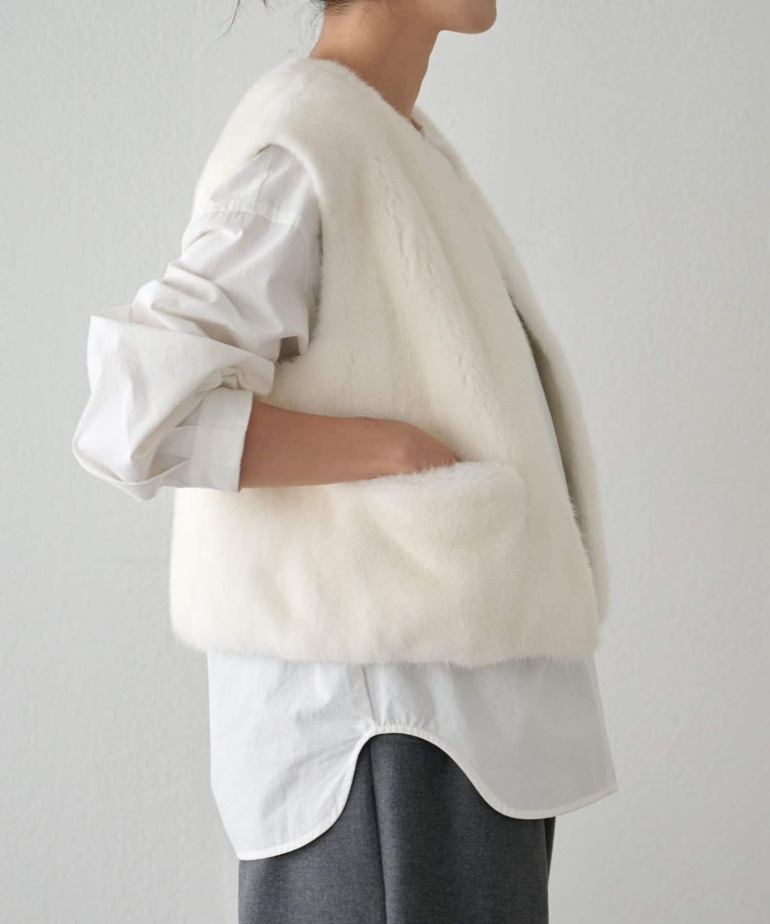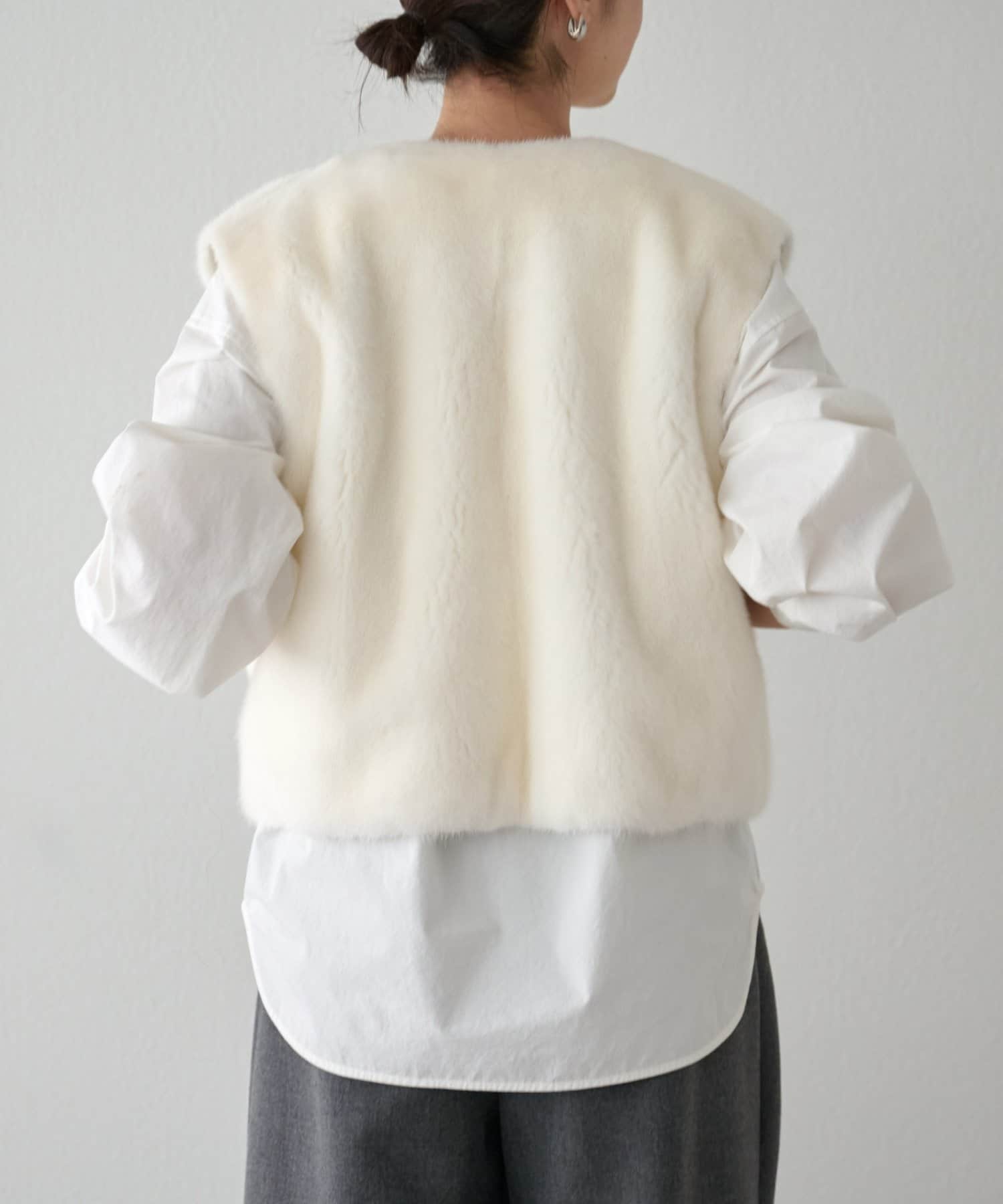 ふんわりとした光沢と、手に吸い付くような柔らかさが魅力のミンクファーを上品なベストに仕立てました。